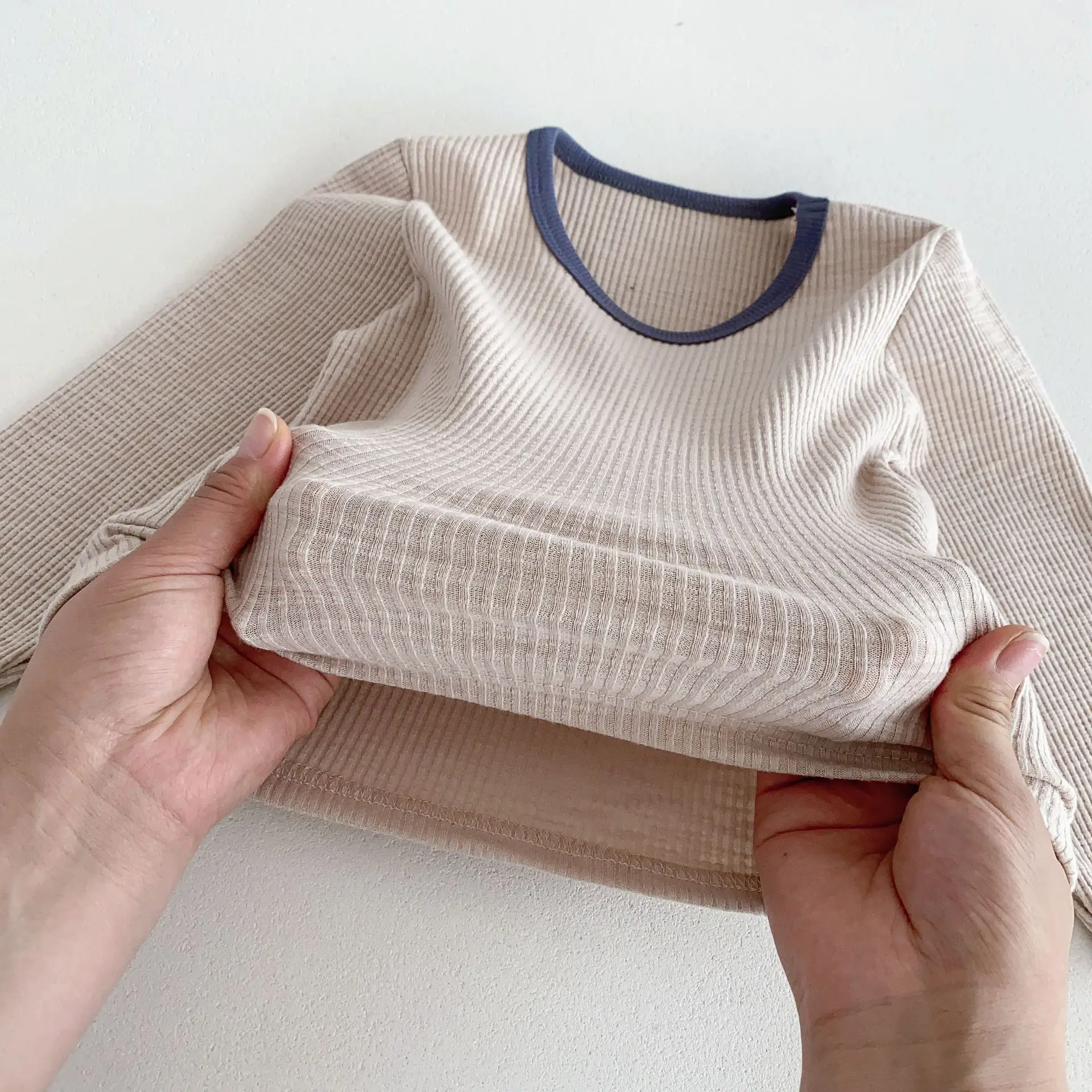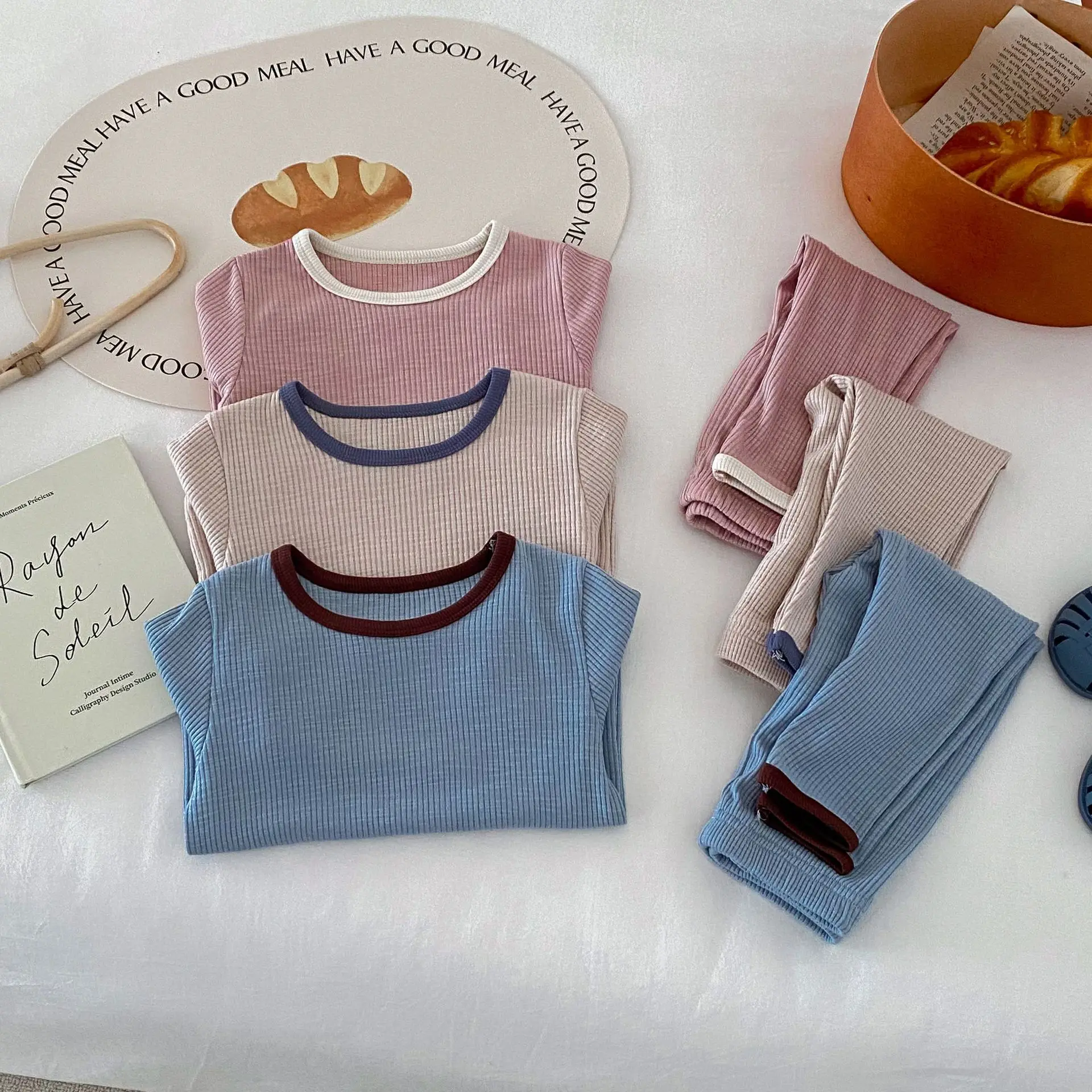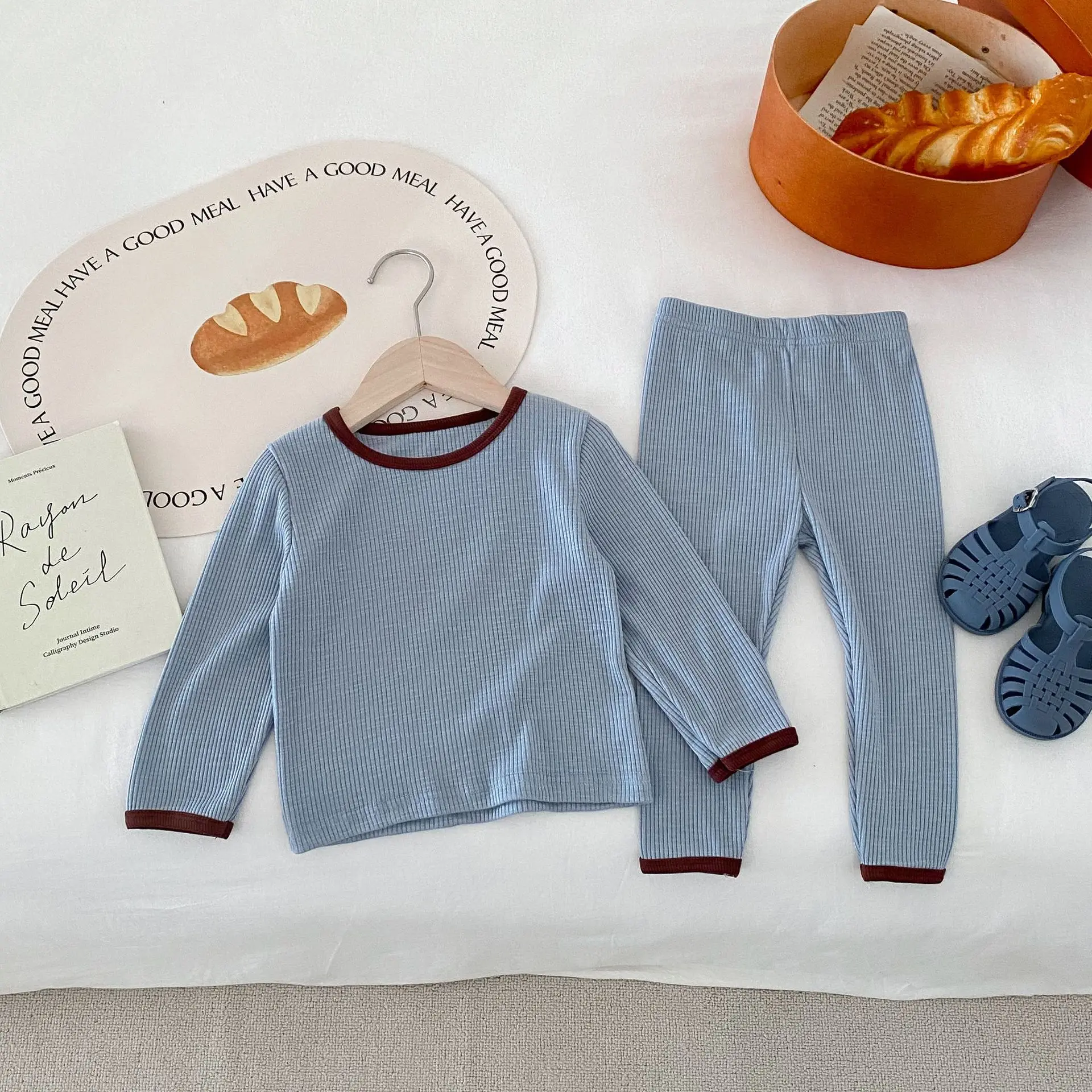 キッズパジャマセットは、シンプルでベーシックな長袖Tシャツとパンツから成るルームウェアです。リブコットン素材を使用しており、肌に優しく、快適な着心地を提供します。長袖Tシャツとパンツのセットは、カジュアルでありながらおしゃれなデザインが特徴です。3カラー展開で、お好みに合わせて選べるのも魅力。お子様のリラックスタイムを快適にするための最適なアイテムで、家でのくつろぎをもっと楽しくします。