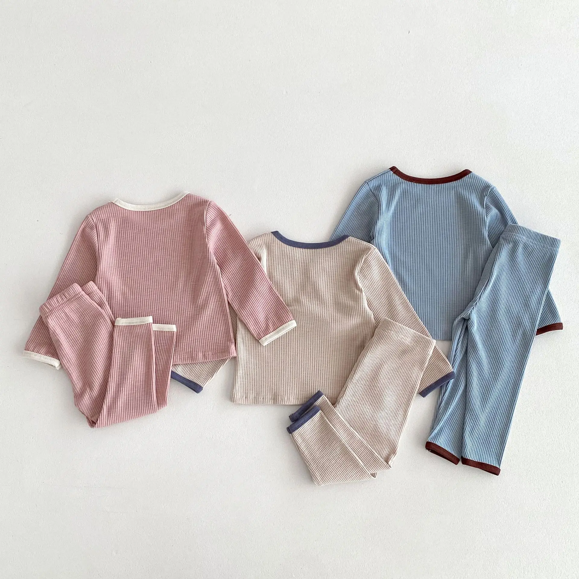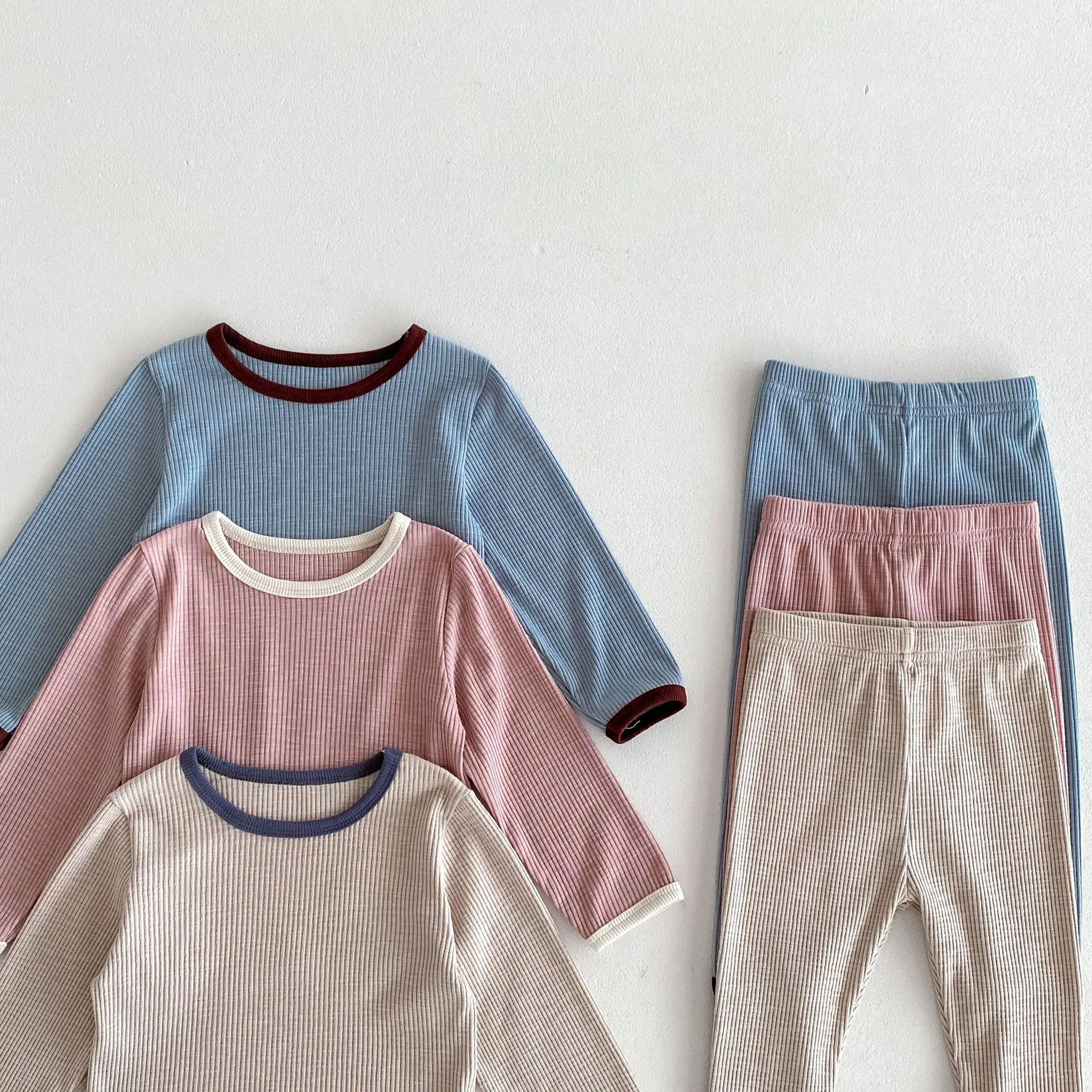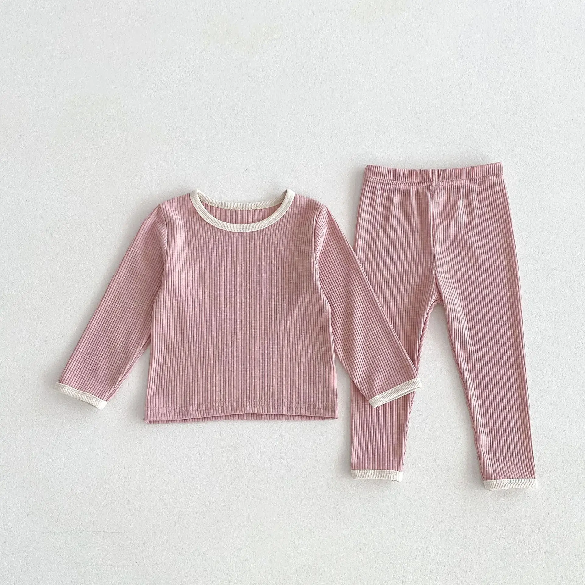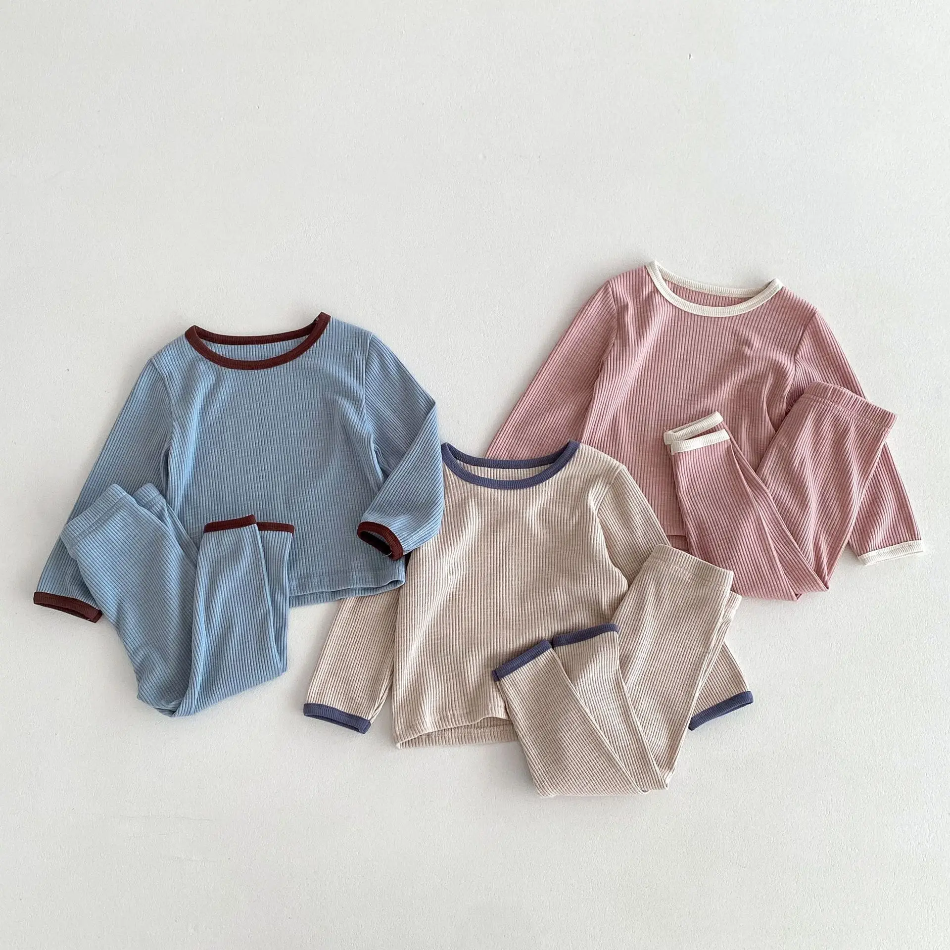 キッズパジャマセット シンプルベーシック長袖Tシャツ+パンツ ルームウェア 3カラー【mh0006825】
