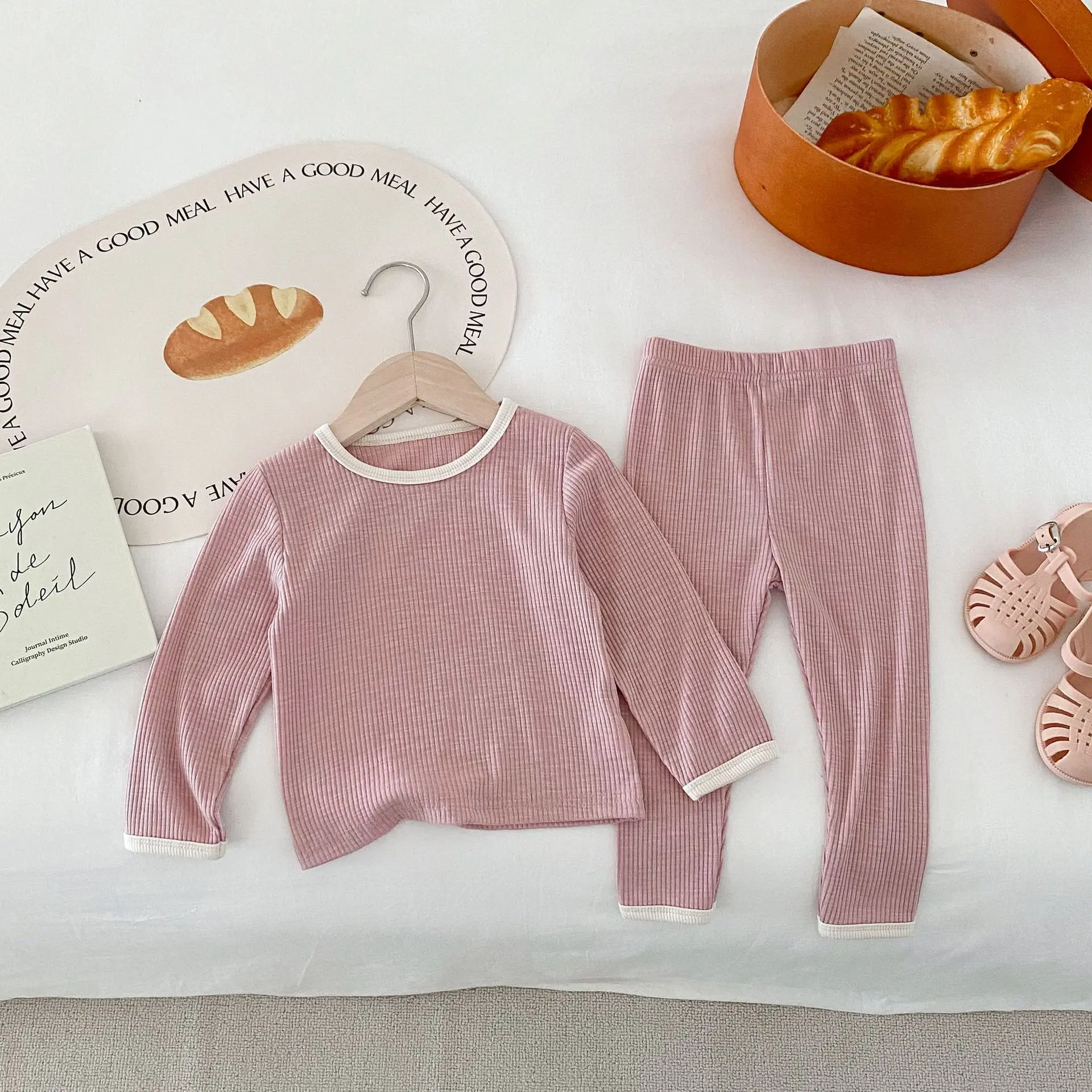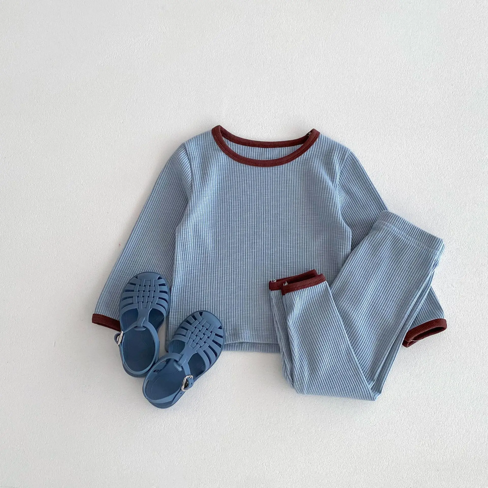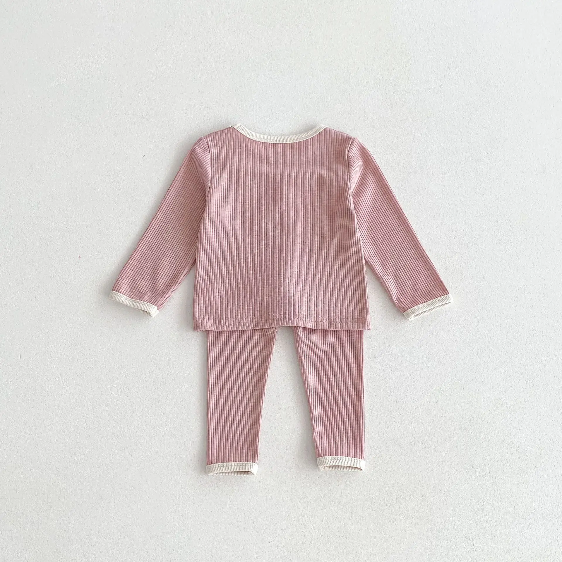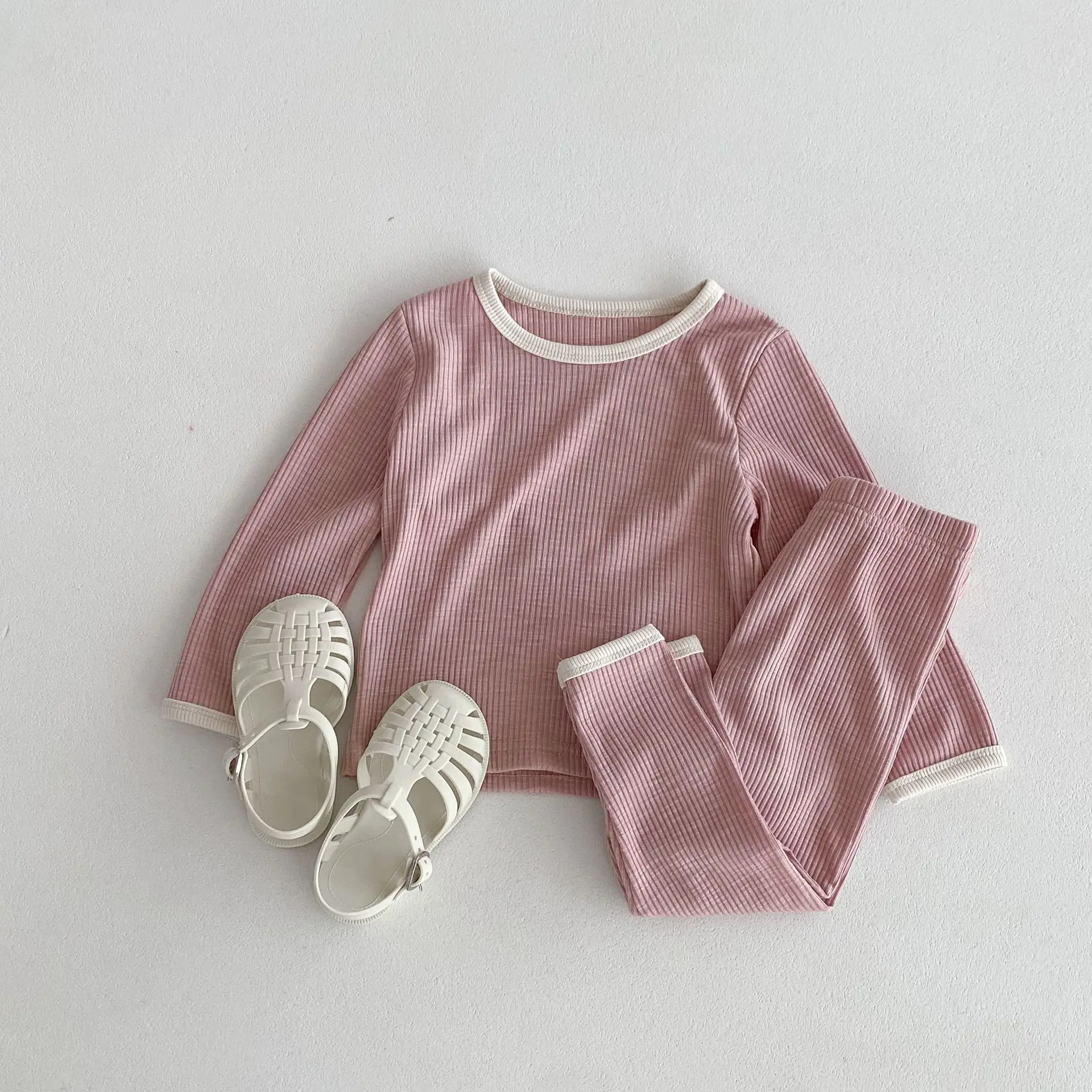 キッズパジャマセット シンプルベーシック長袖Tシャツ+パンツ ルームウェア 3カラー【mh0006825】