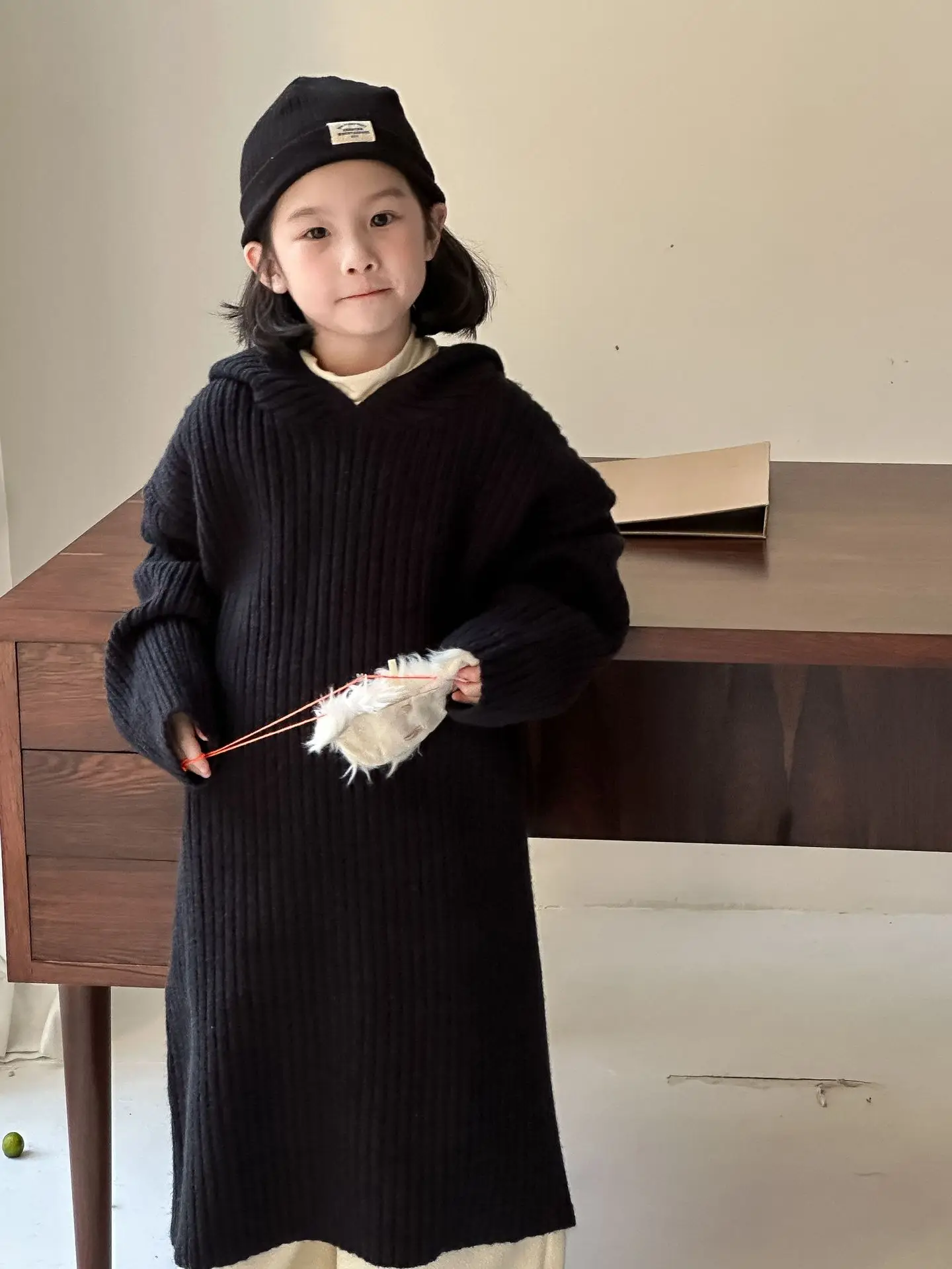 #キッズファッション #ベビーファッション #ニットワンピース #長袖ドレス #韓国子供服 #フーディワンピース #秋冬コーデ