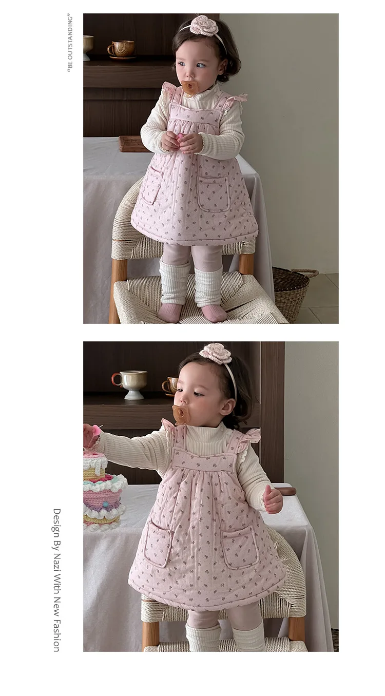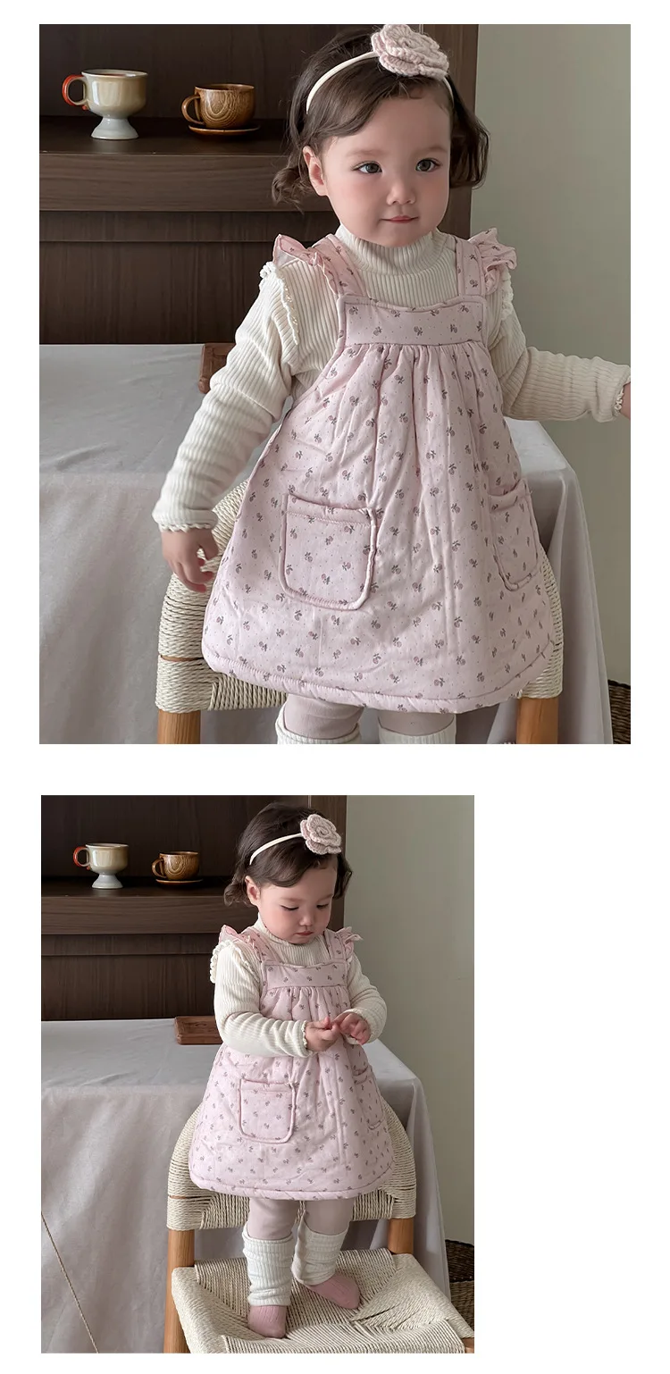 ベビーワンピース フラワー小花柄プリントショルダーフリルキルティングノースリーブワンピース【mh0007814】