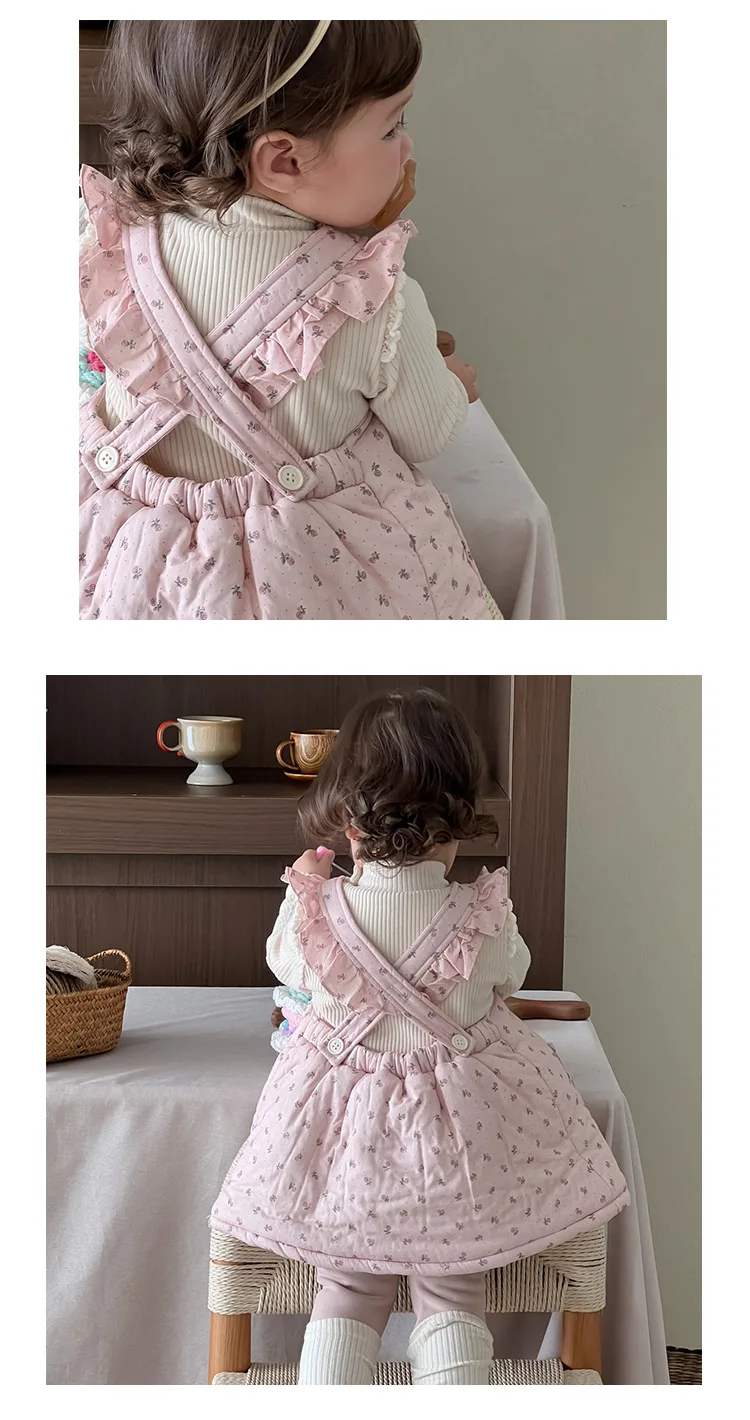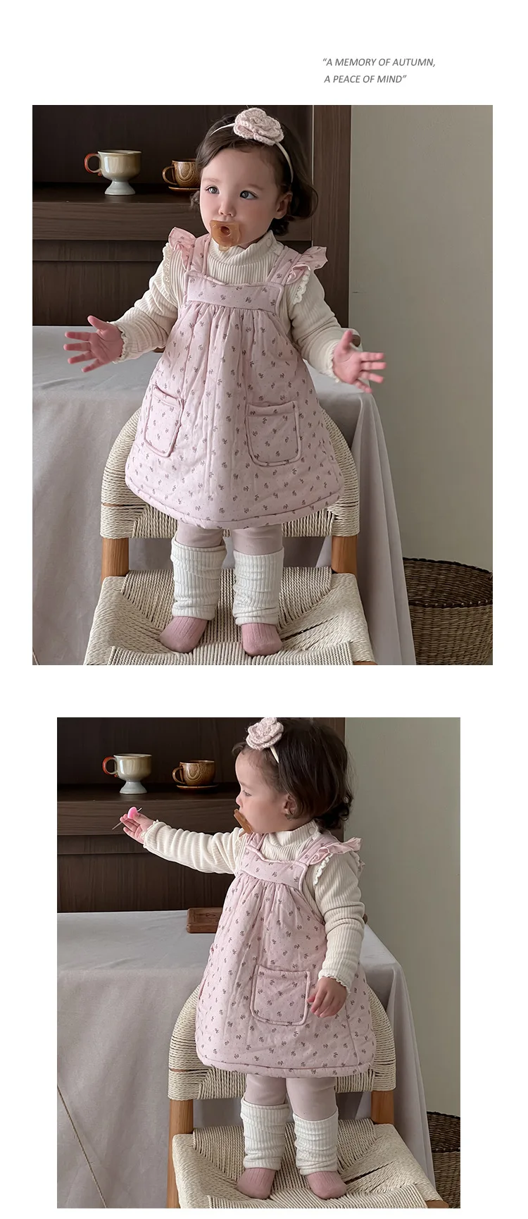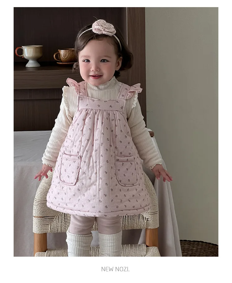 #ベビー服 #ワンピース #フラワープリント #ショルダーフリル #キルティングワンピース #冬の子供服 #ガーリーコーデ