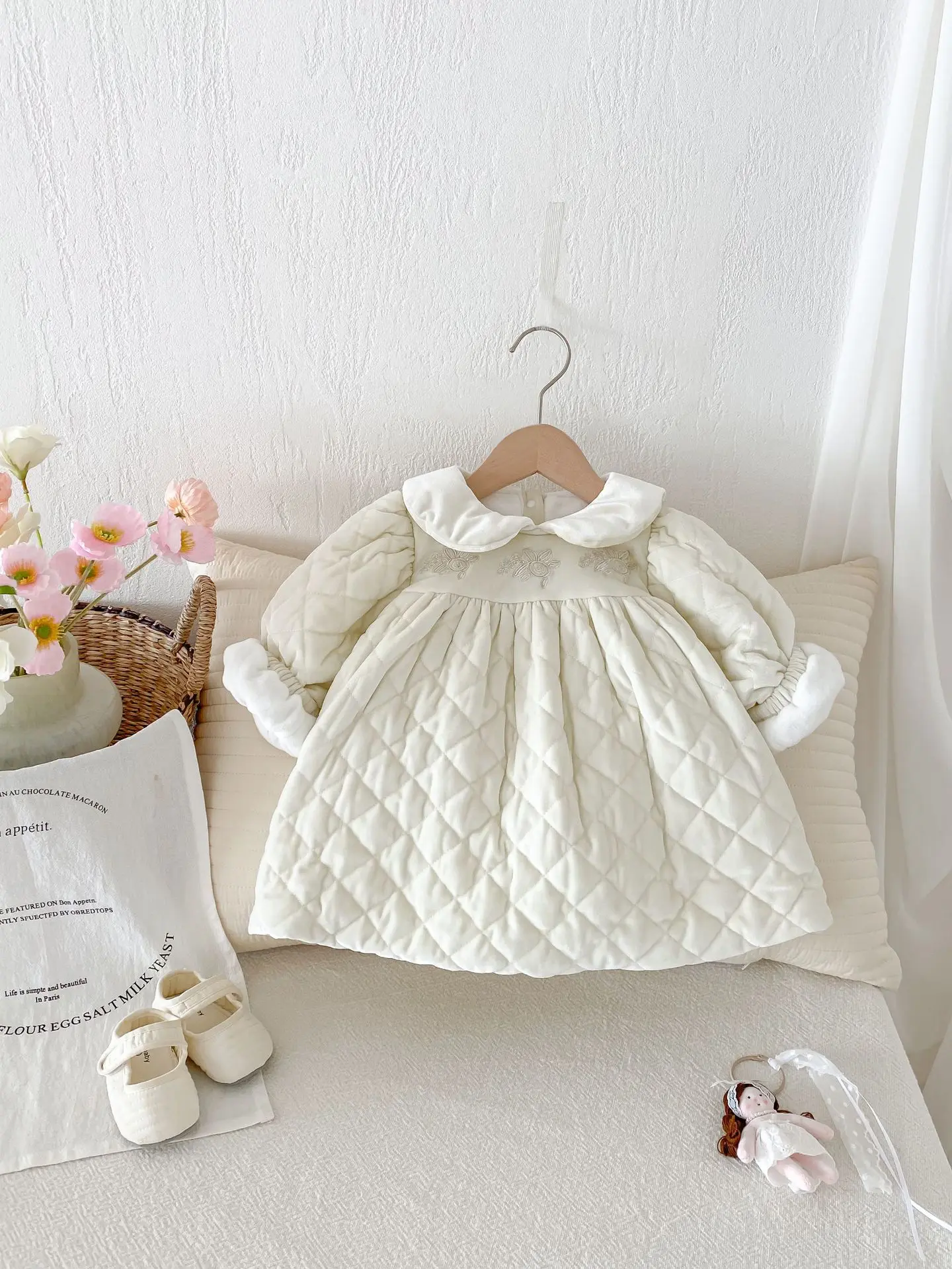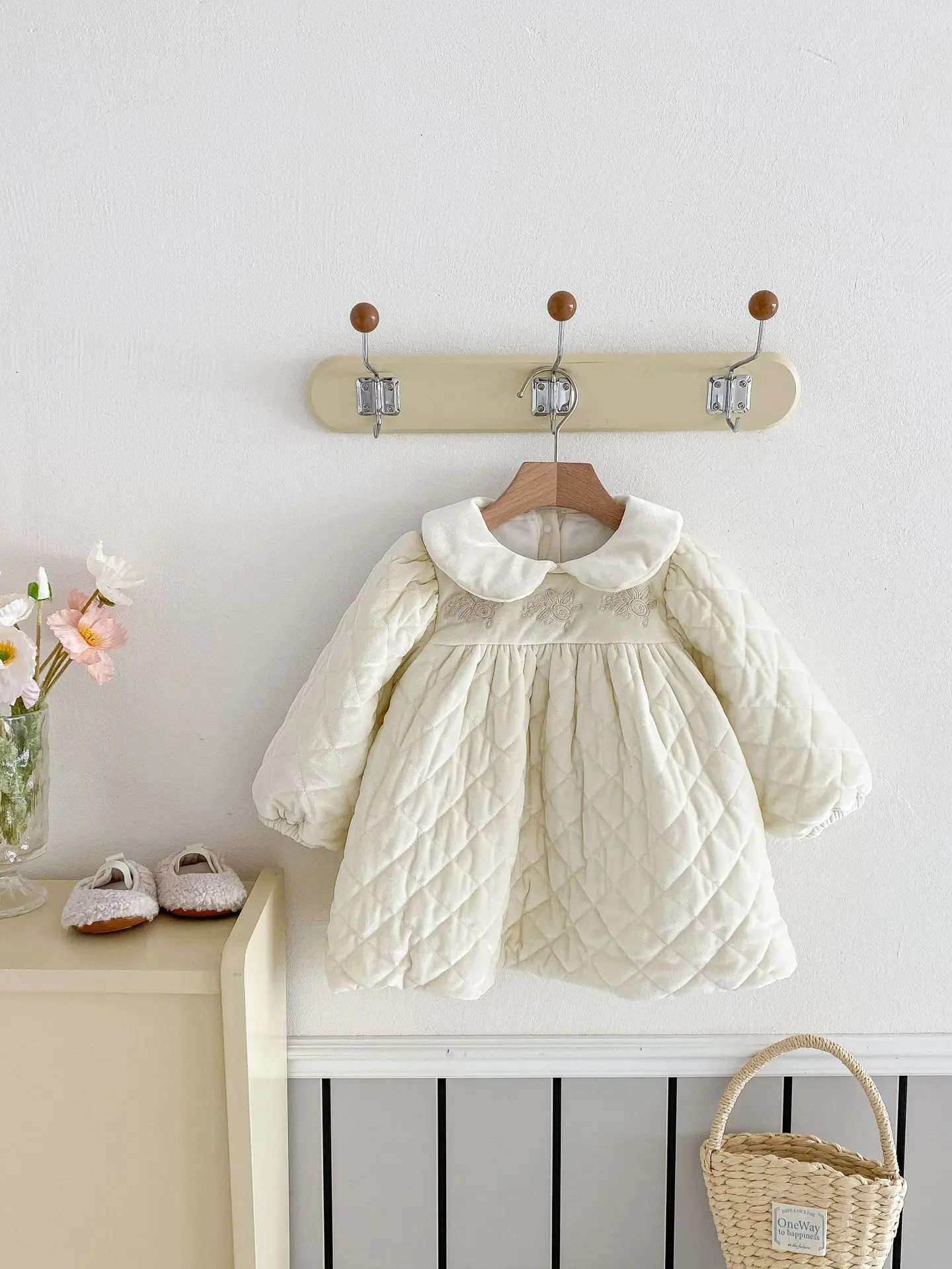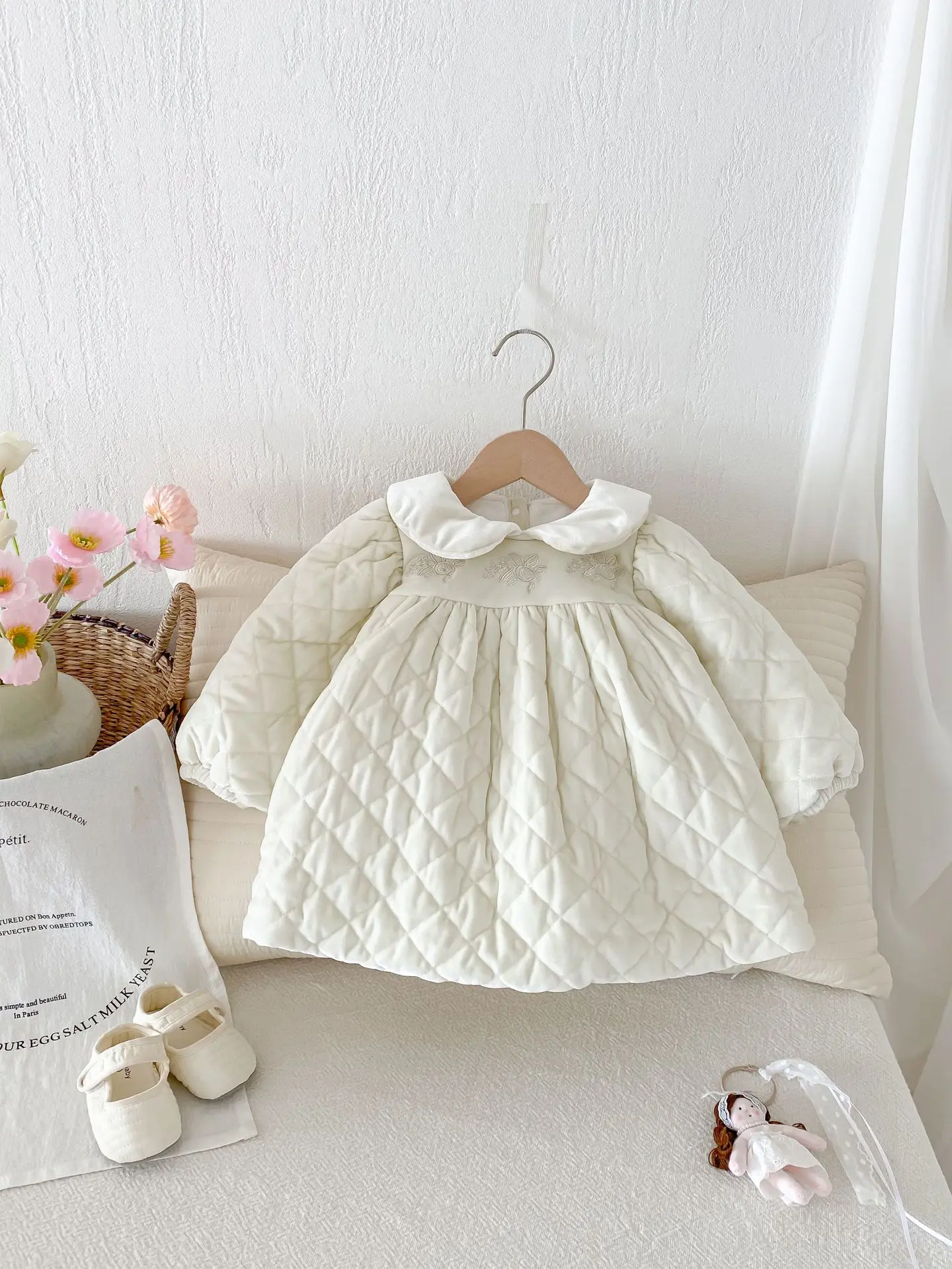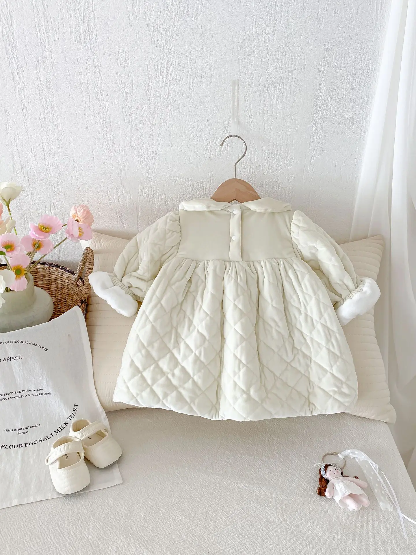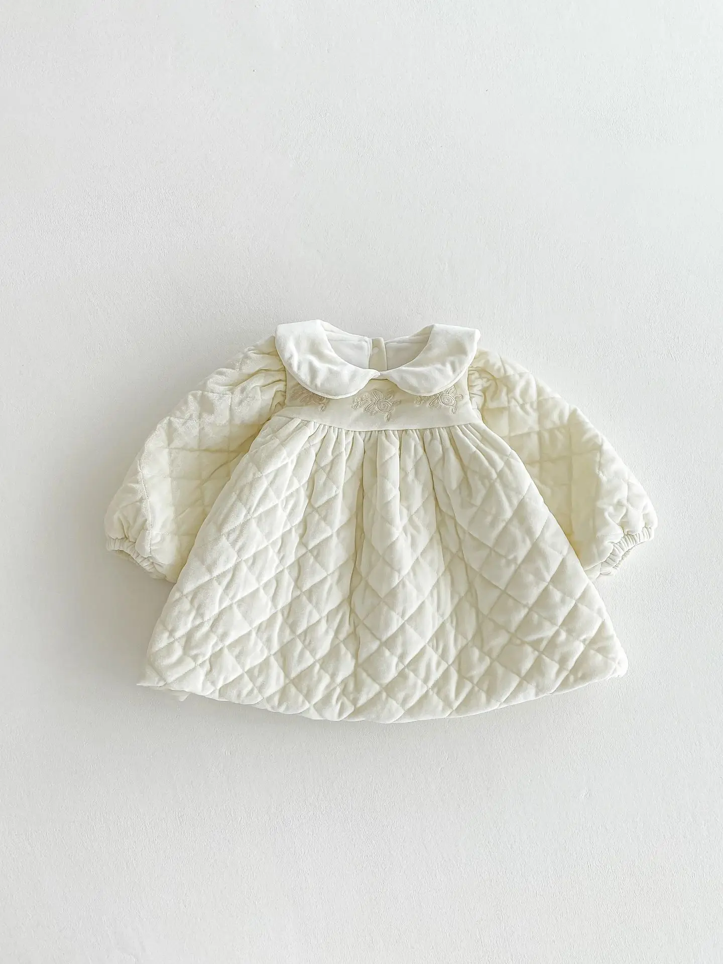 #ベビー服 #キッズファッション #キルティングワンピース #ピーターパンカラー #裏フリース #韓国子供服 #冬用ワンピース