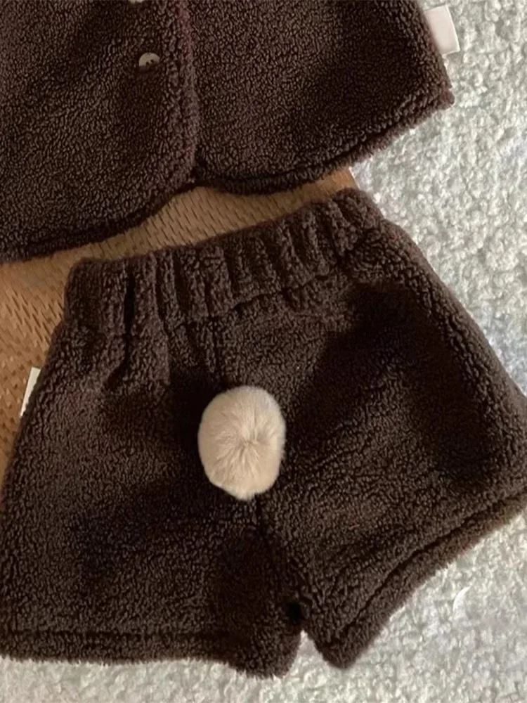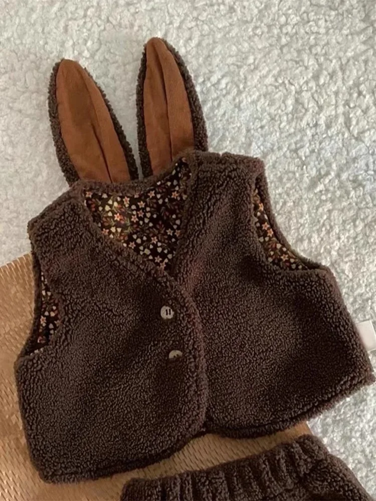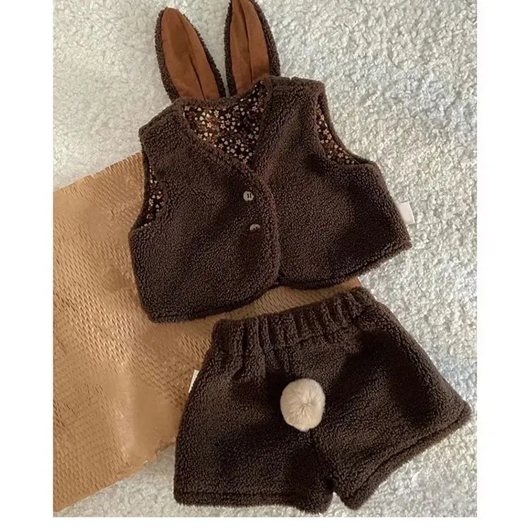 #ベビー服 #セットアップ #うさ耳ベスト #しっぽ付きショートパンツ #ボアフリース #韓国子供服 #冬用ベビーウェア