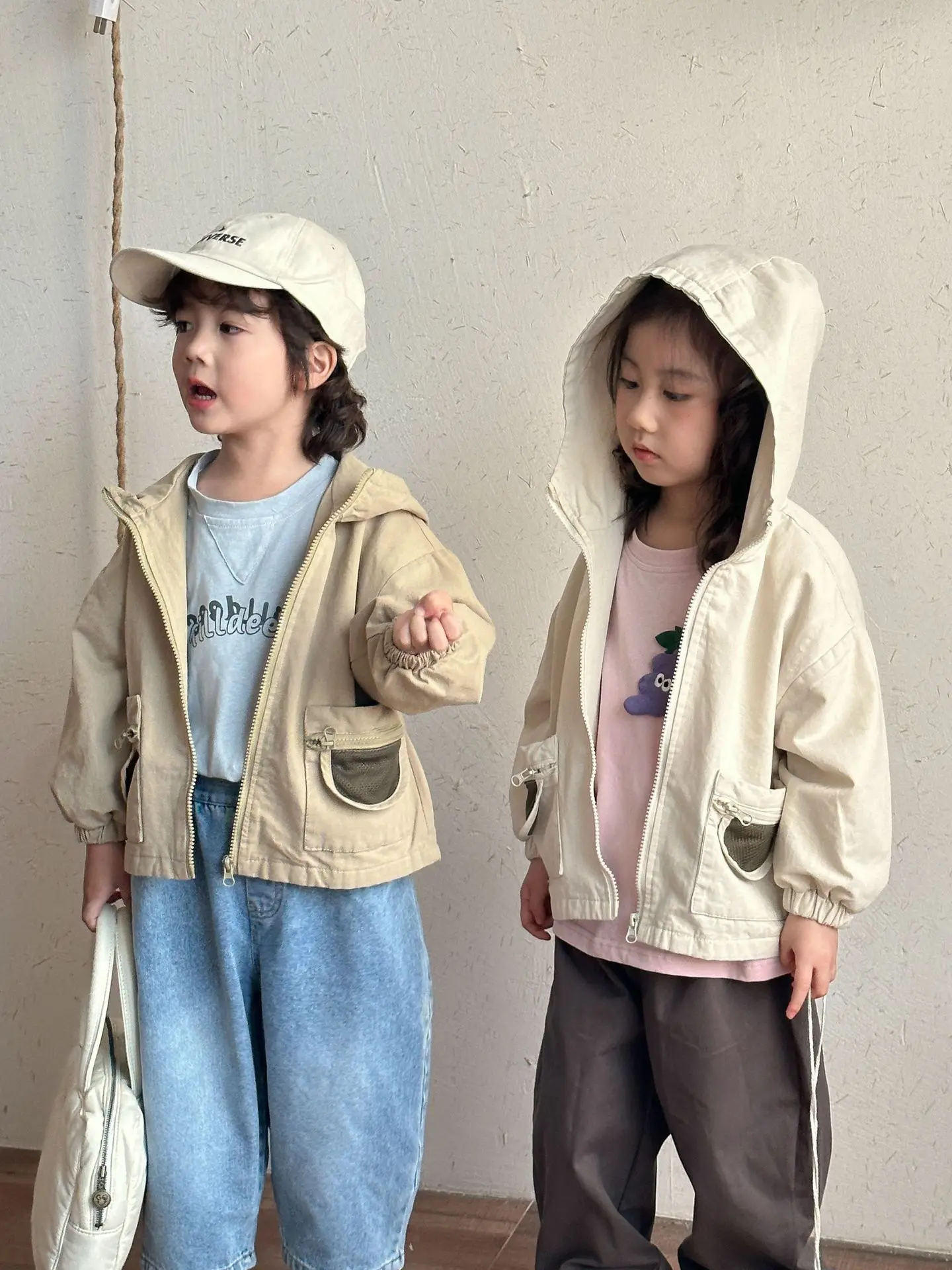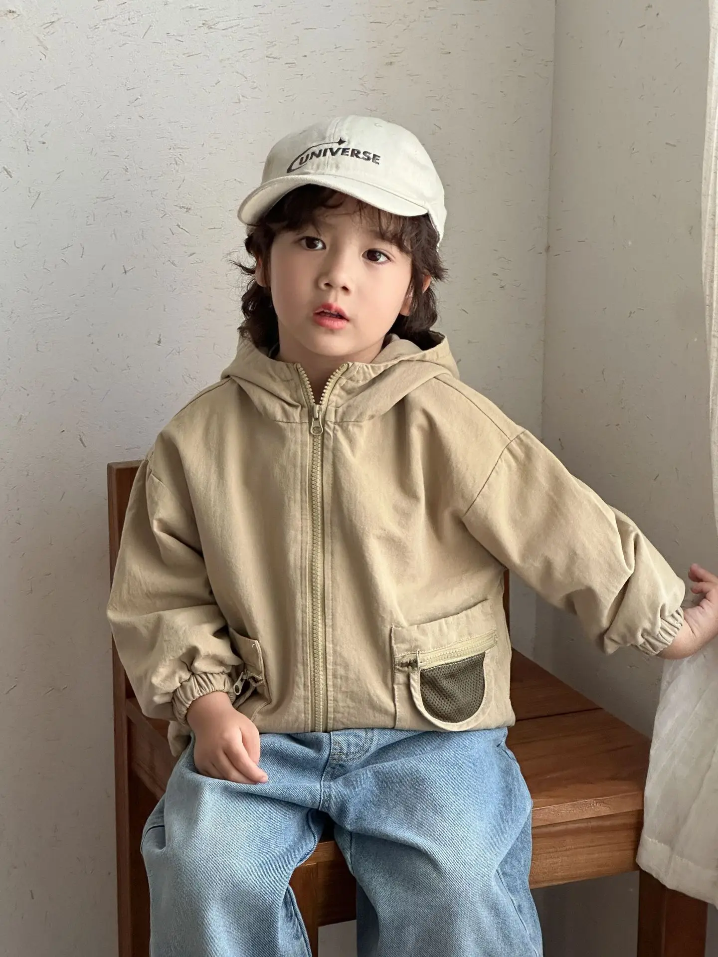 #キッズアウター #ジップアップブルゾン #フーディジャケット #ポケットデザイン #カジュアルコーデ #子供服