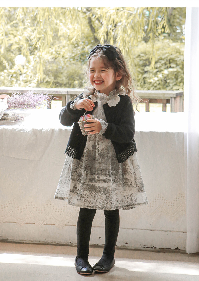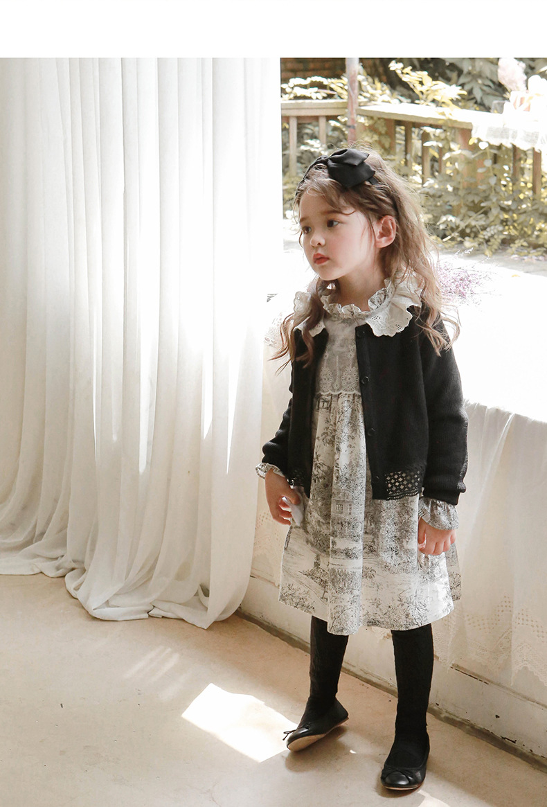 #キッズワンピース #風景画プリント #チュールレース #長袖ワンピース #ガーリーコーデ #おしゃれキッズ