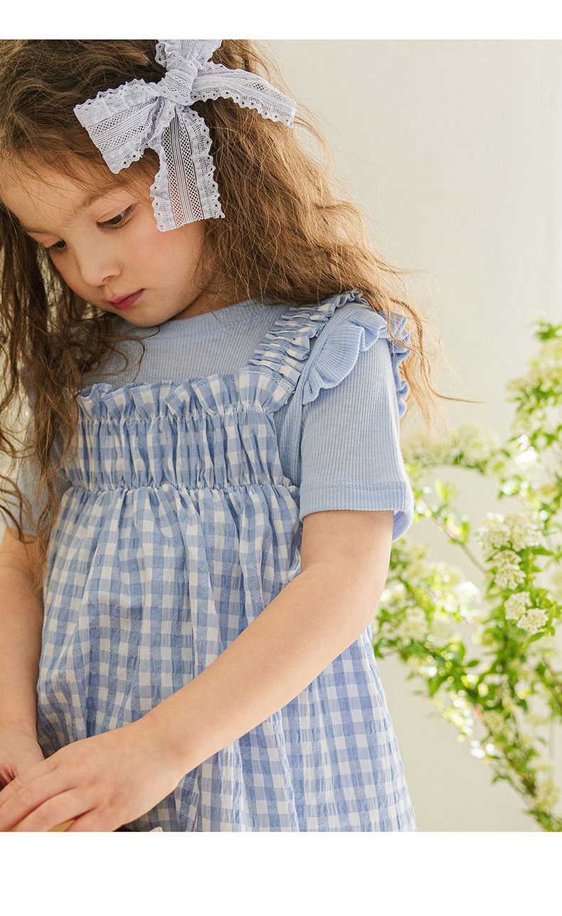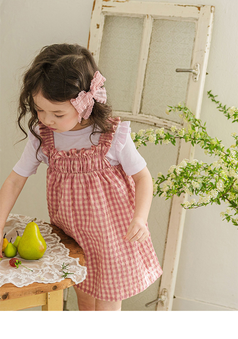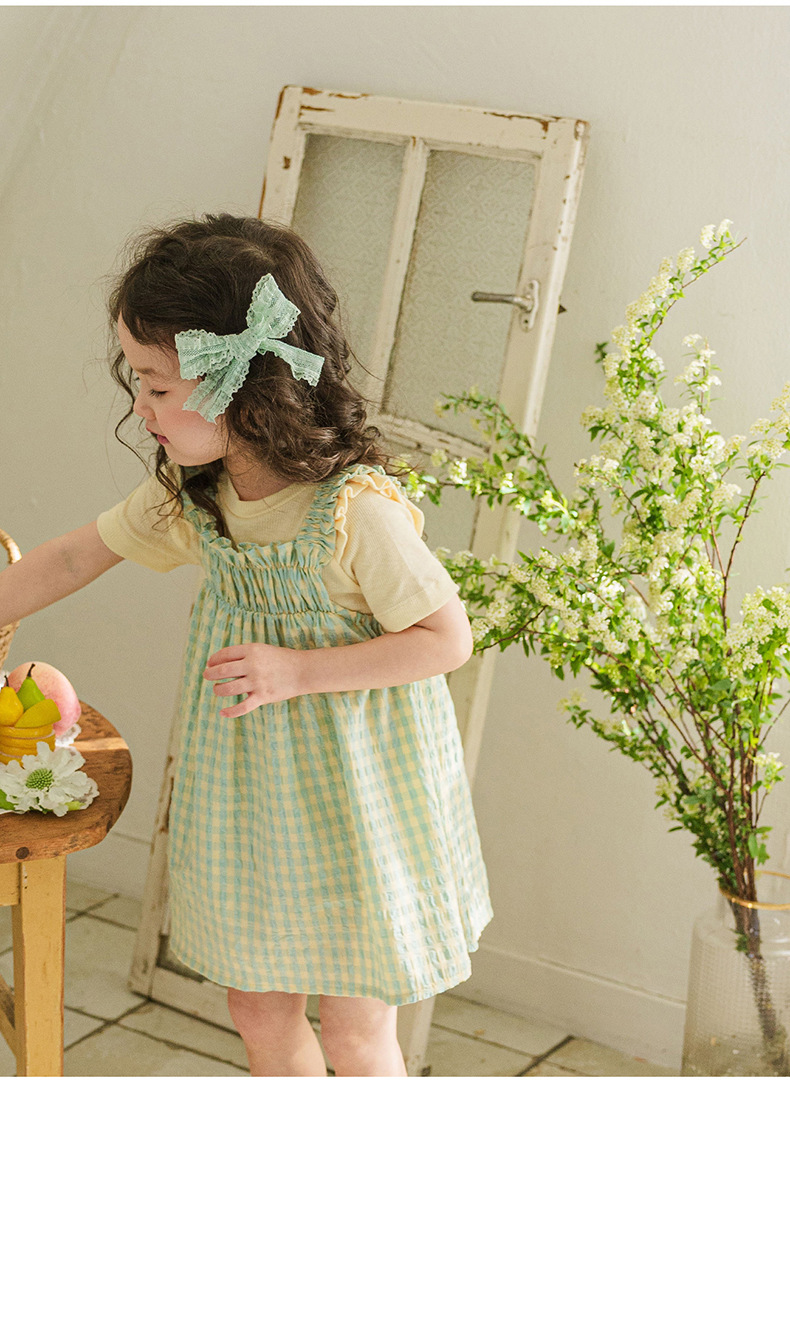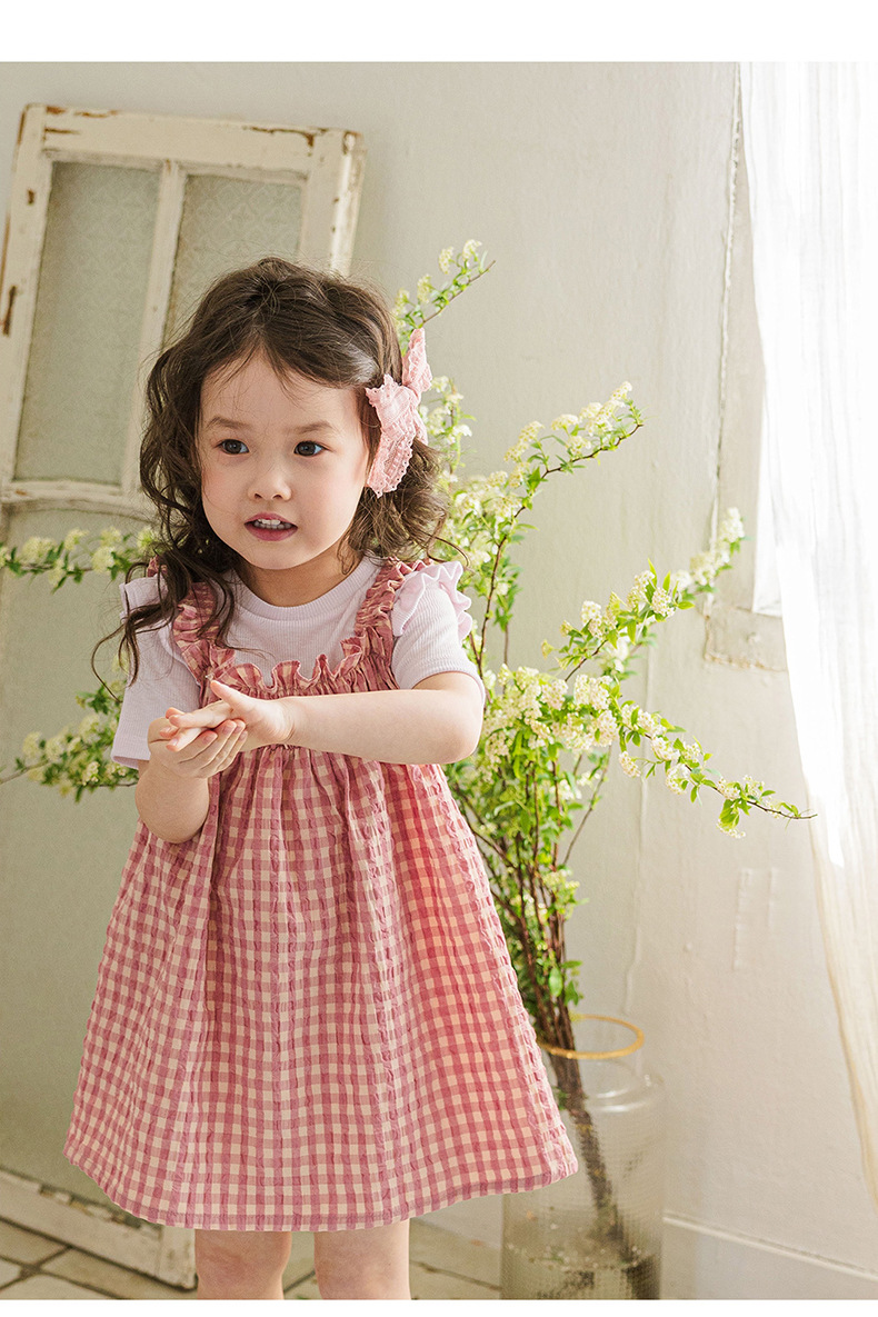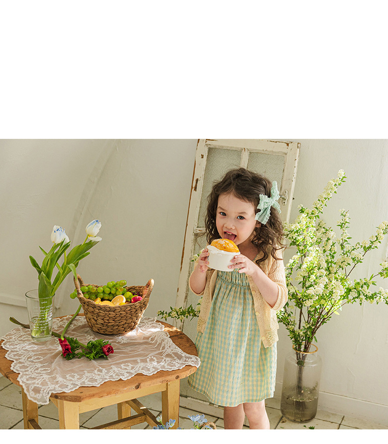 爽やかなギンガムチェックが夏にぴったりの、キッズ用ノースリーブワンピースです。薄手のコットン素材で、涼しく快適な着心地。小さめのギンガムチェック柄が、上品で可愛らしい印象を与えます。シンプルなデザインなので、普段使いはもちろん、ちょっとしたお出かけにもぴったり。お手持ちのカーディガンやボレロを羽織れば、長い期間着用できます。夏のおしゃれを軽やかに彩る一枚です。