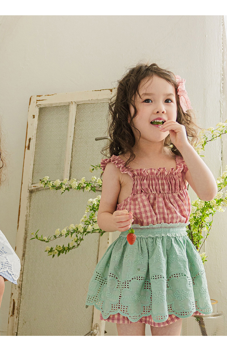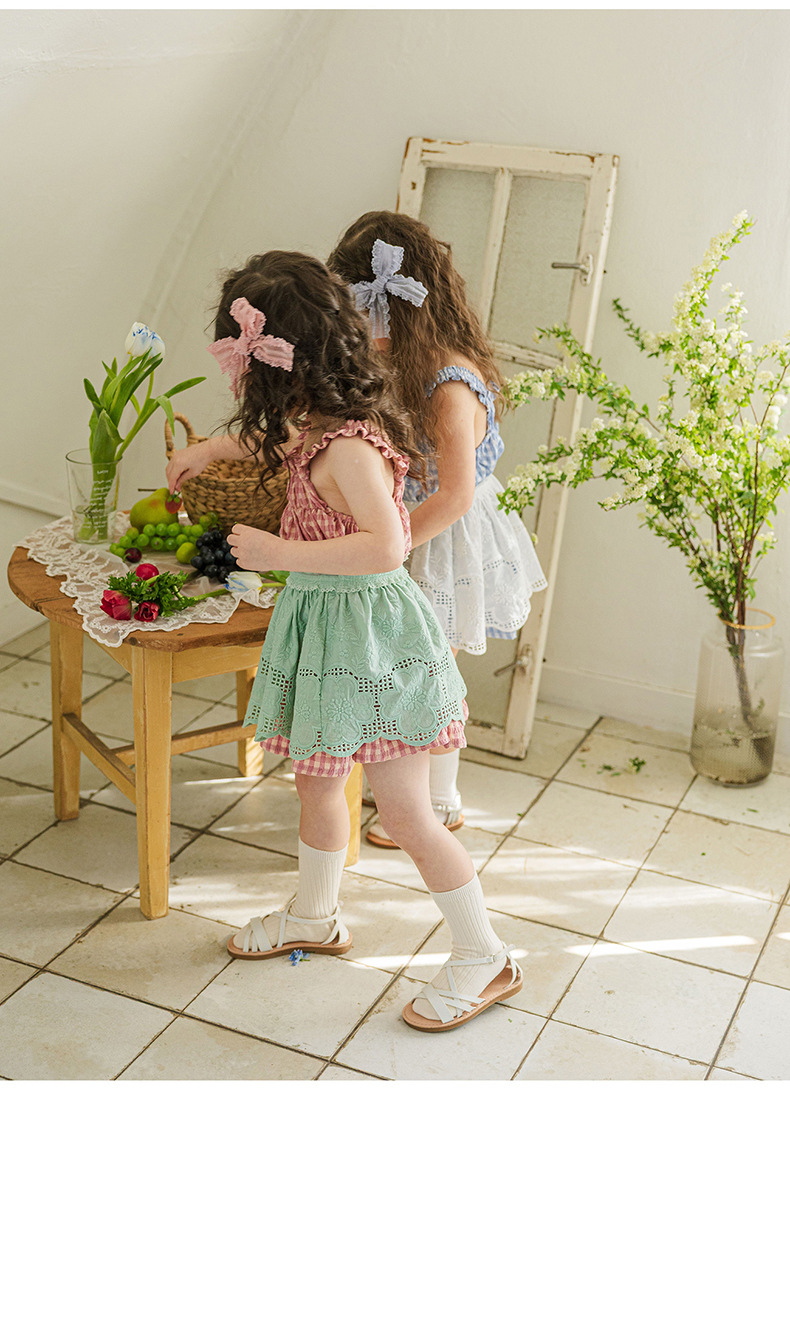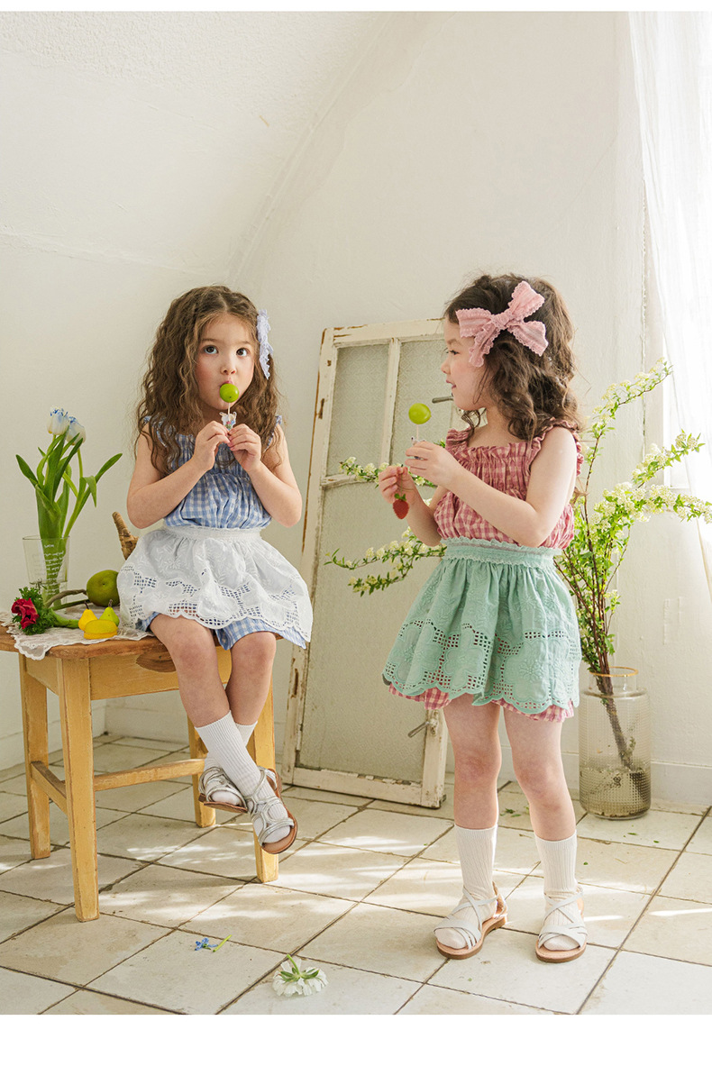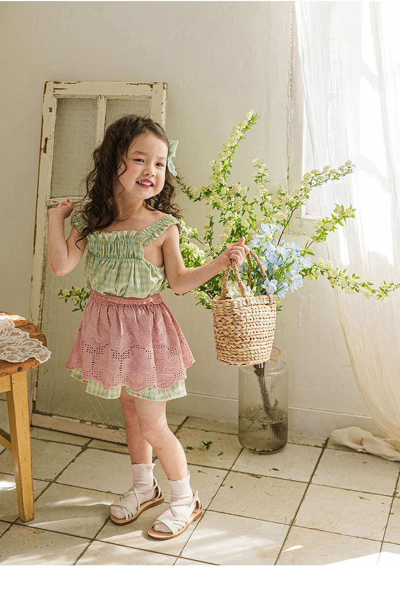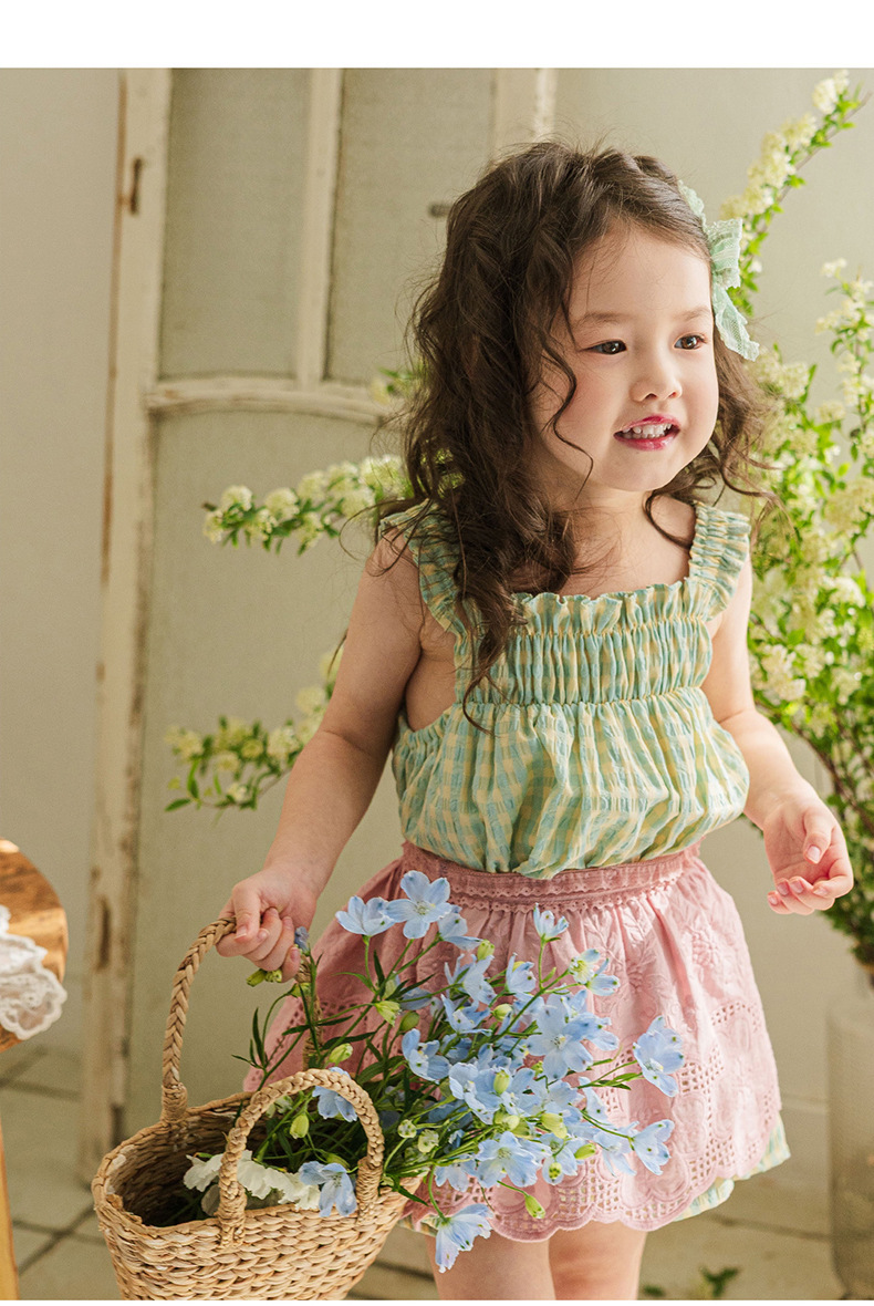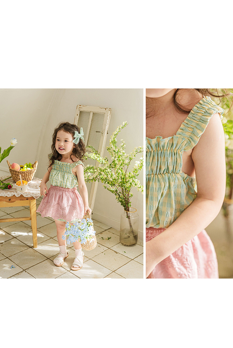 爽やかなギンガムチェックが夏にぴったりの、キッズ用ノースリーブワンピースです。薄手のコットン素材で、涼しく快適な着心地。小さめのギンガムチェック柄が、上品で可愛らしい印象を与えます。シンプルなデザインなので、普段使いはもちろん、ちょっとしたお出かけにもぴったり。お手持ちのカーディガンやボレロを羽織れば、長い期間着用できます。夏のおしゃれを軽やかに彩る一枚です。