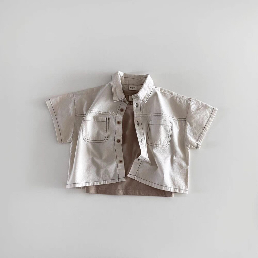 #キッズファッション #セットアップ #デニム #半袖シャツ #ショートパンツ #夏服 #男女兼用
