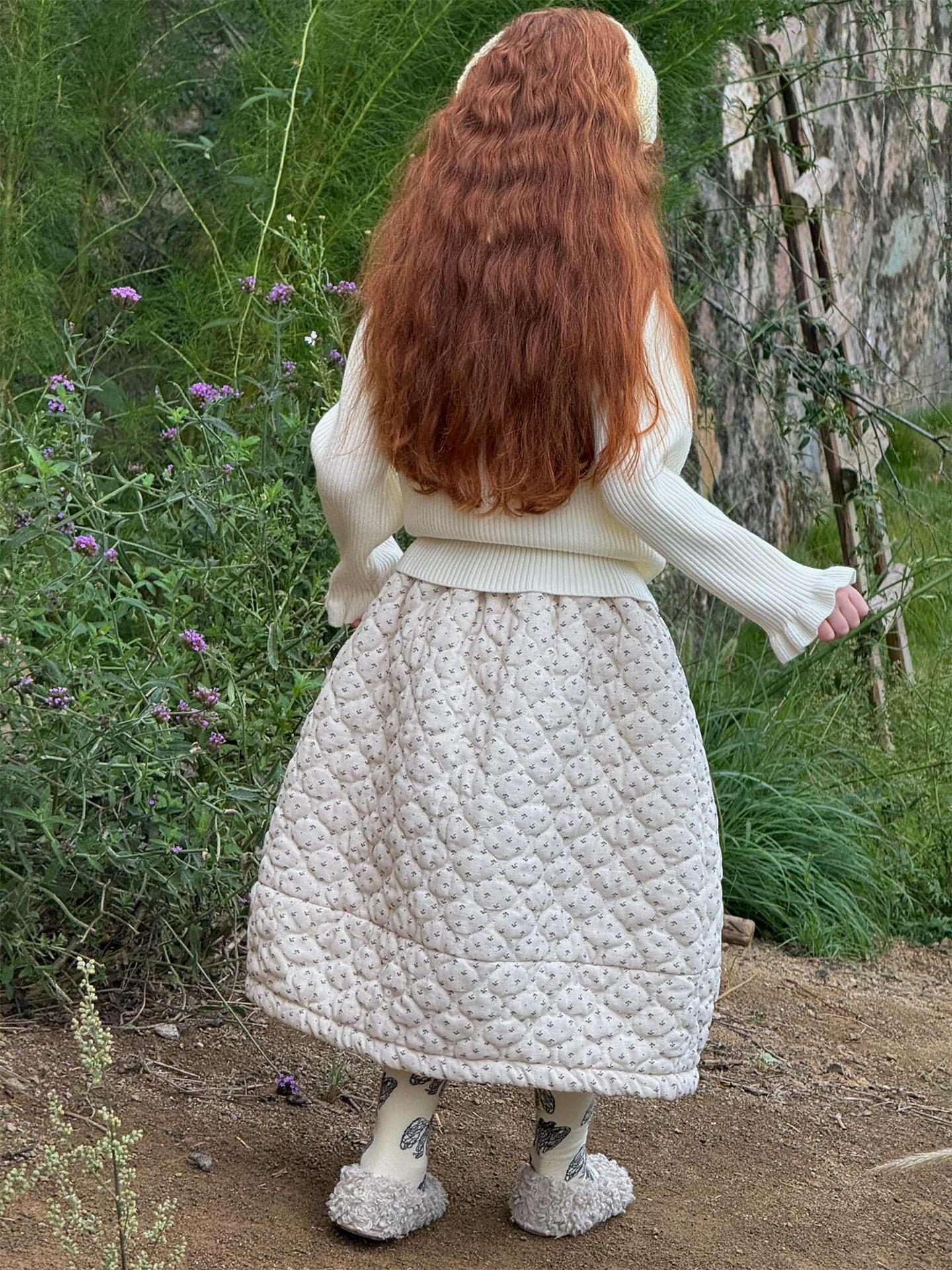 キルティングスカート 厚手 キルト ミモレ丈 無地 花柄【mh0011750】