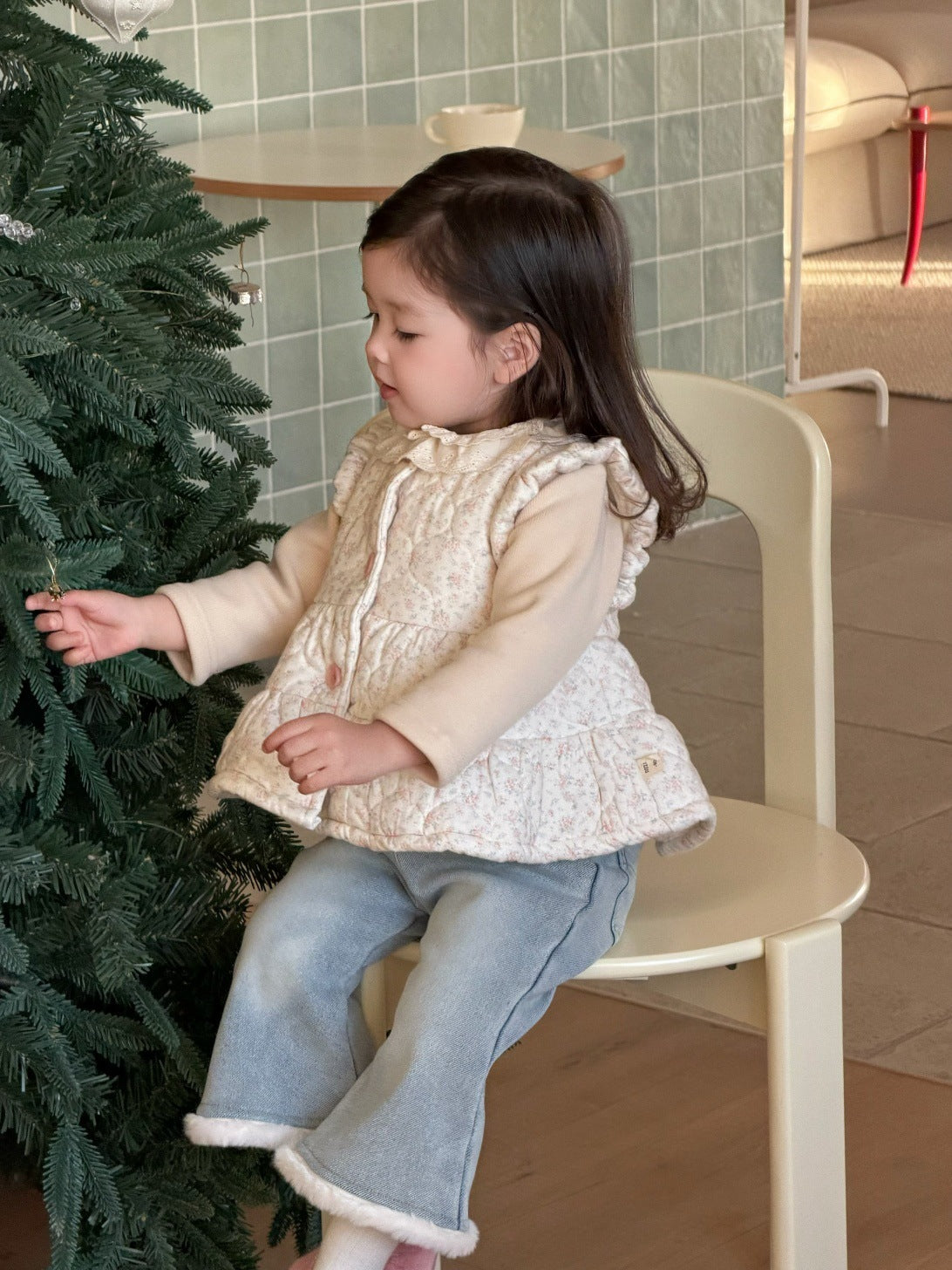 レースニット襟付きフリルスリーブベストトップス【mh0009794】