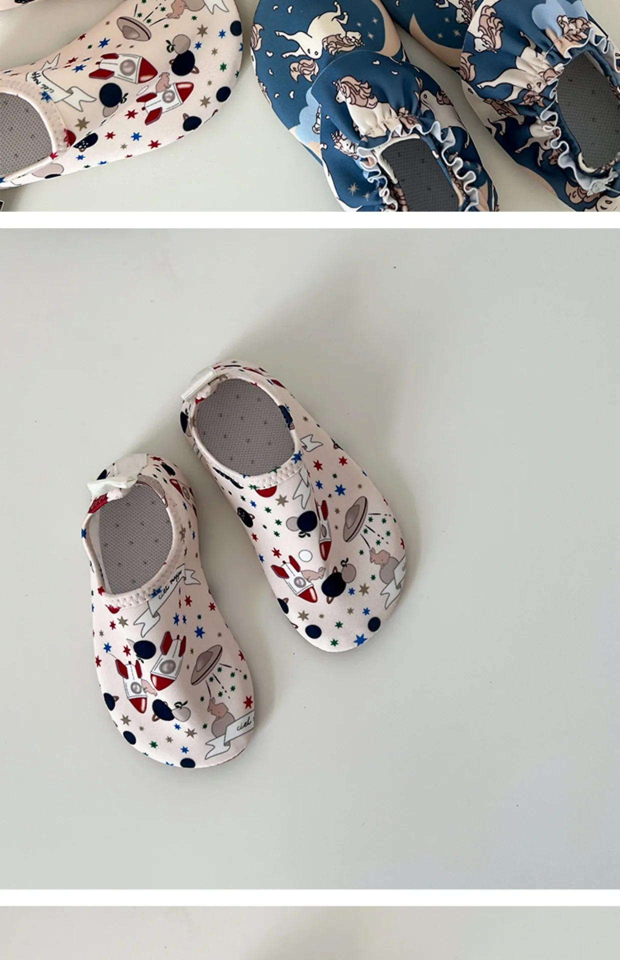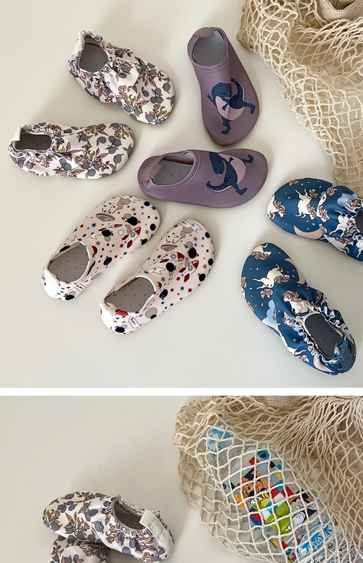 このベビーシュノーケリングシューズは、ビーチやプールでの水遊びに最適です。防水素材で足をしっかり保護し、泳ぎやすくしてくれます。屋内外での履き替えも楽々、お子様の好みを選べるプリントデザインも魅力です。