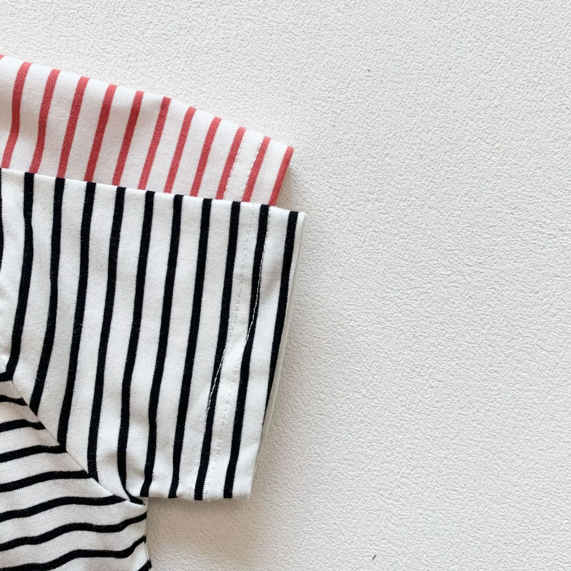 ベビーオーバーオール デニム サスペンダーパンツ ロンパース 半袖ボーダーTシャツ【mh0000517】