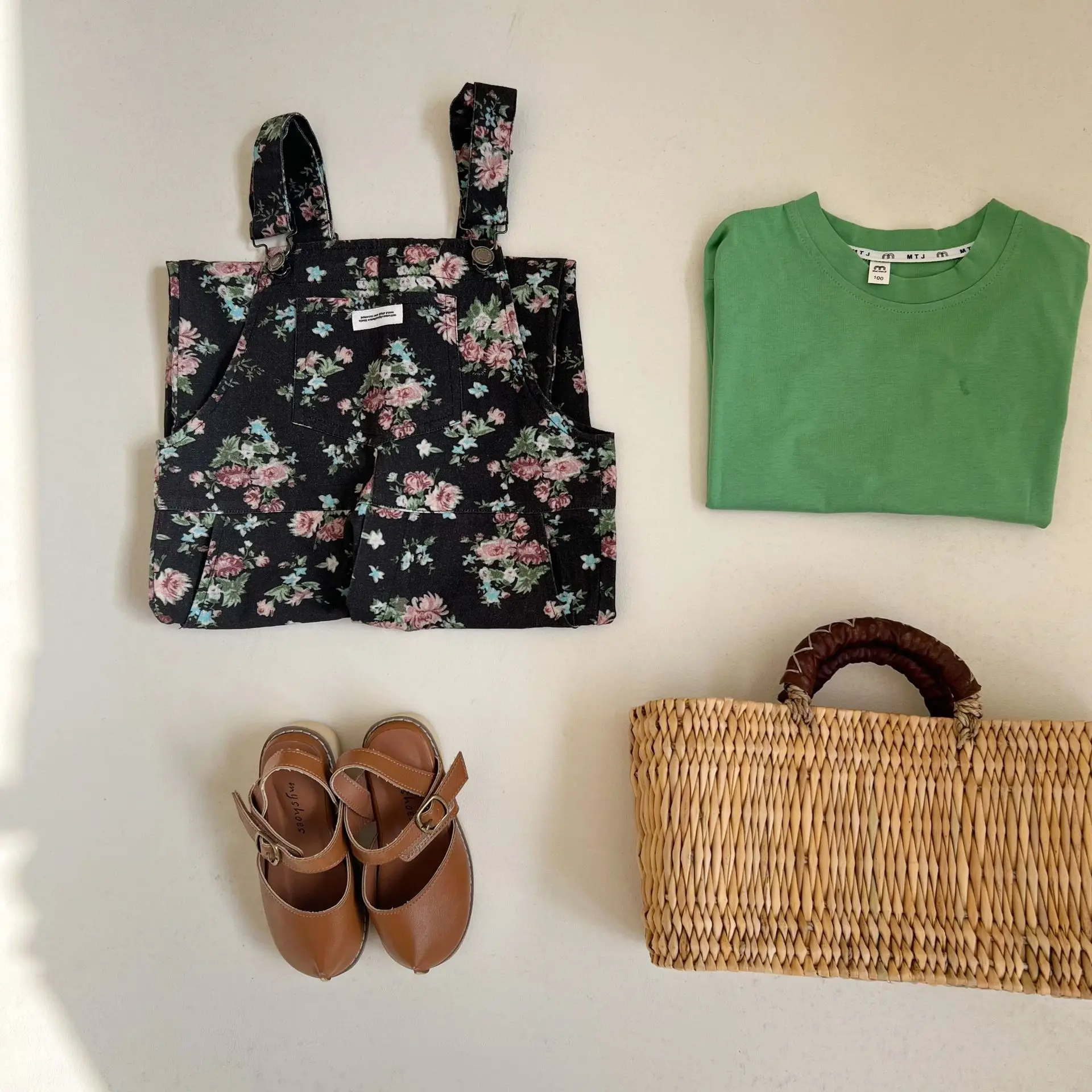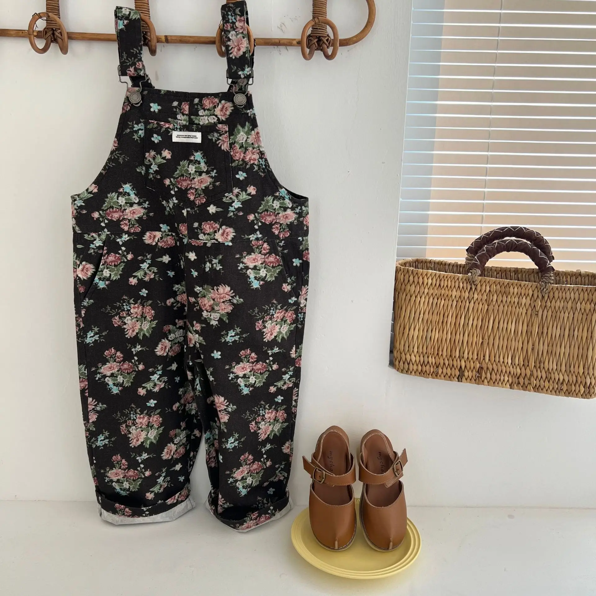 キッズ フラワープリント オーバーオール サロペット パンツ【mh0001149】