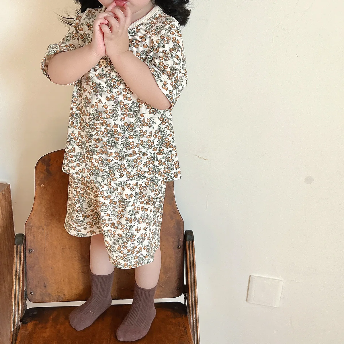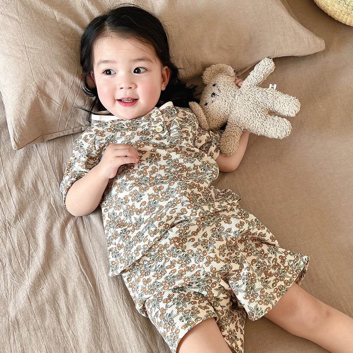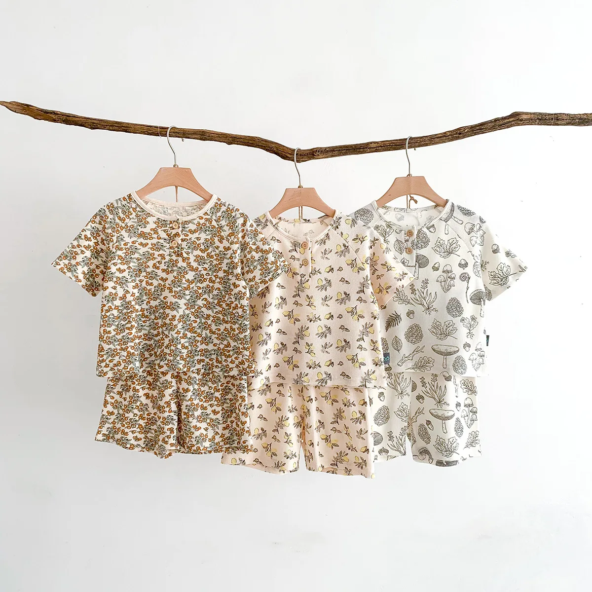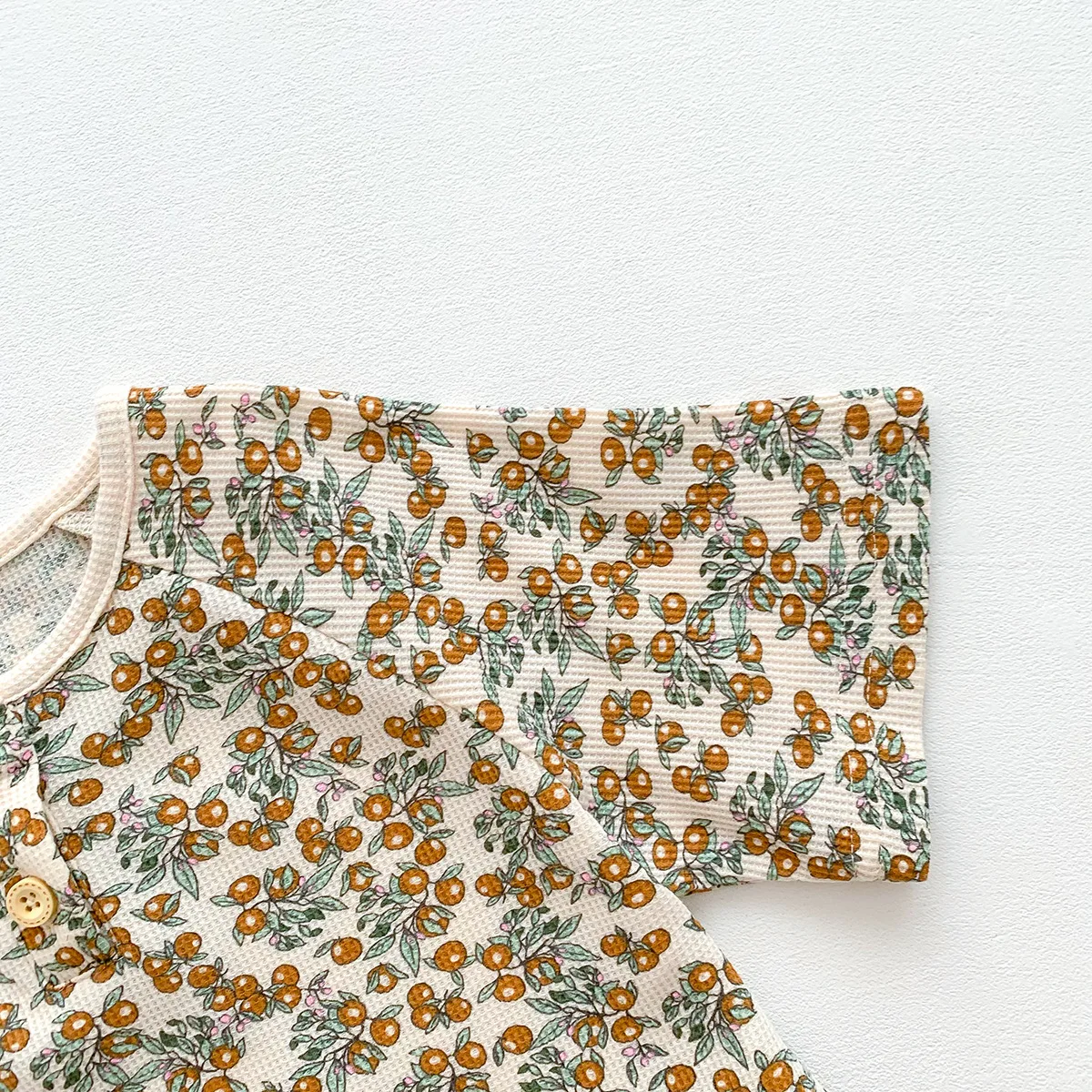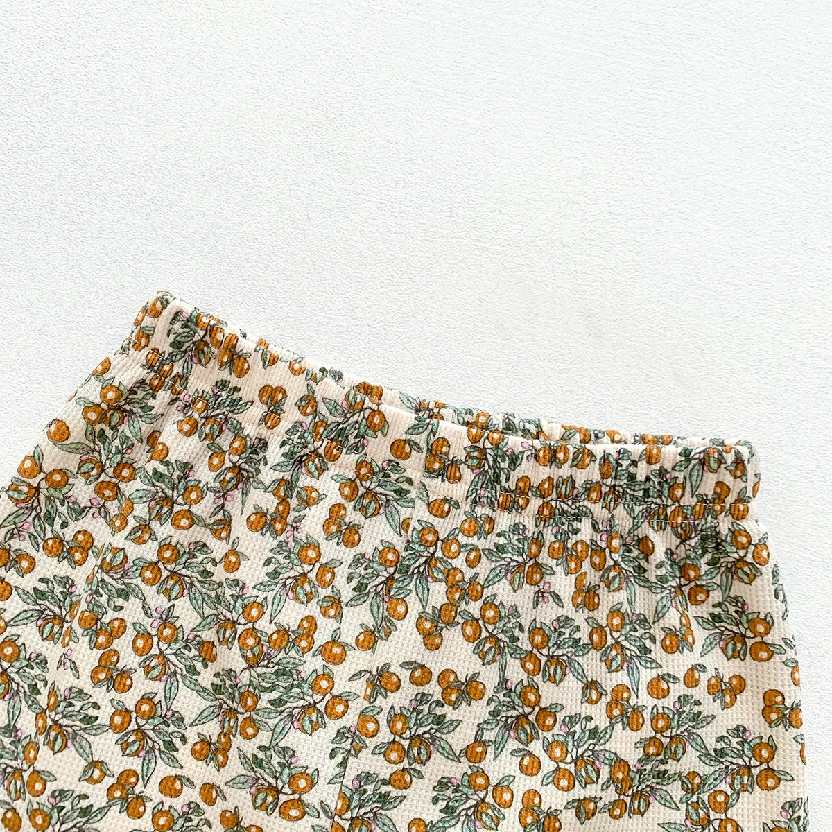 キッズ 半袖 プリント セットアップ パジャマ Tシャツ ショートパンツ フラワー レモン