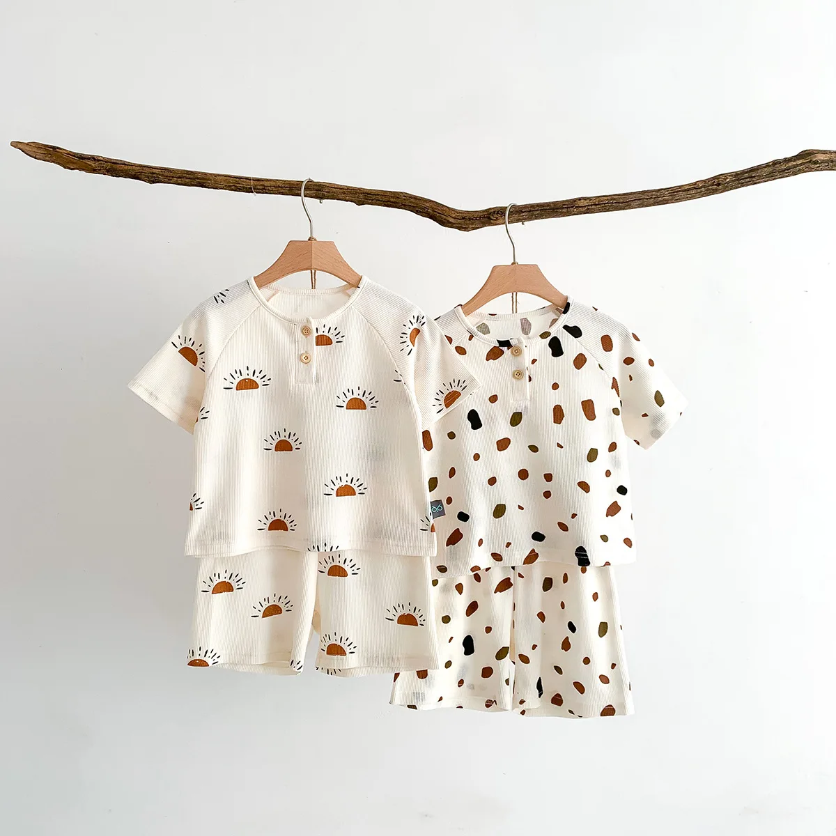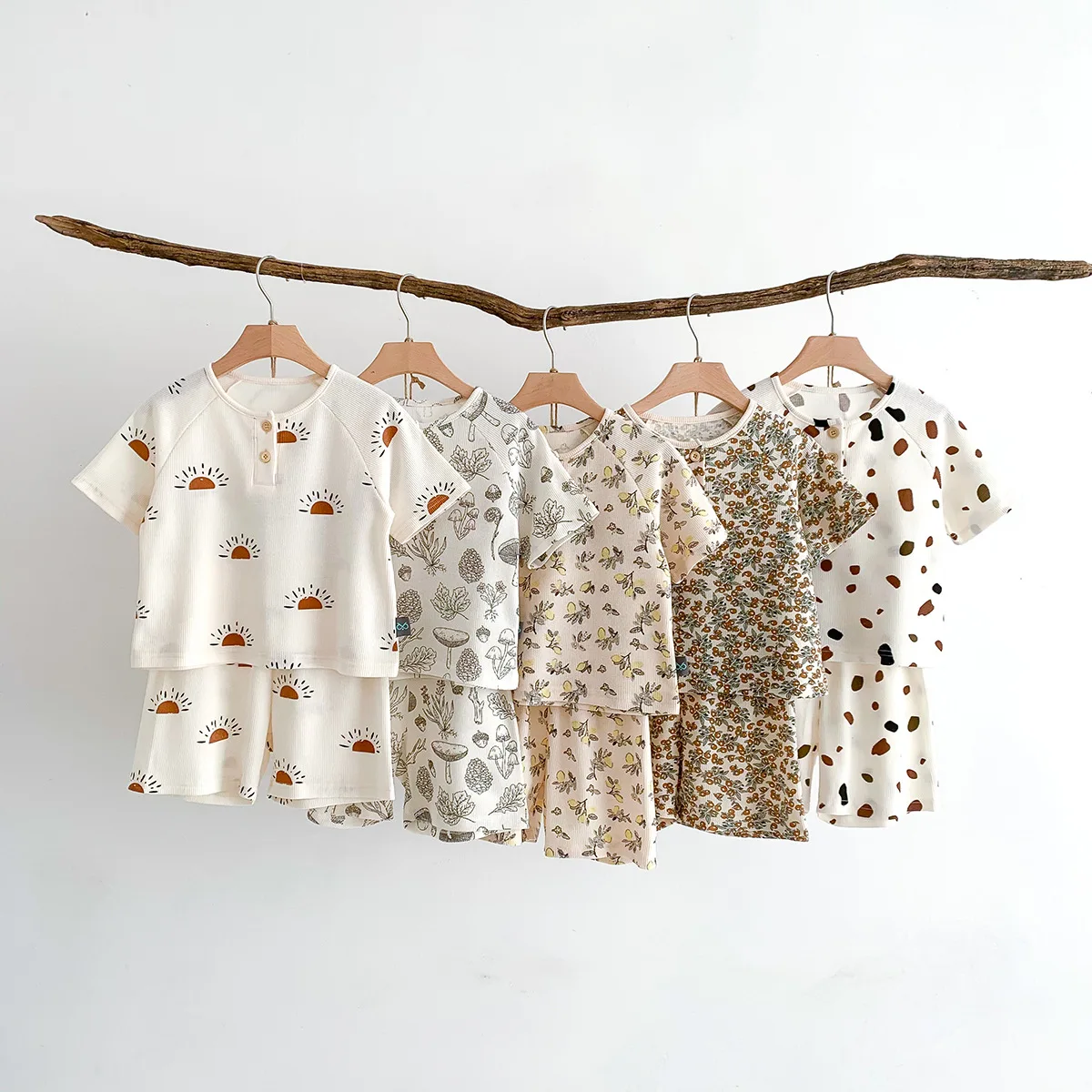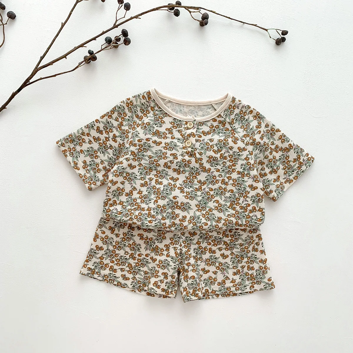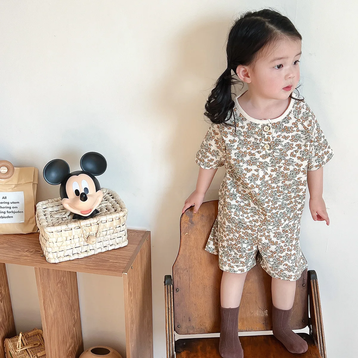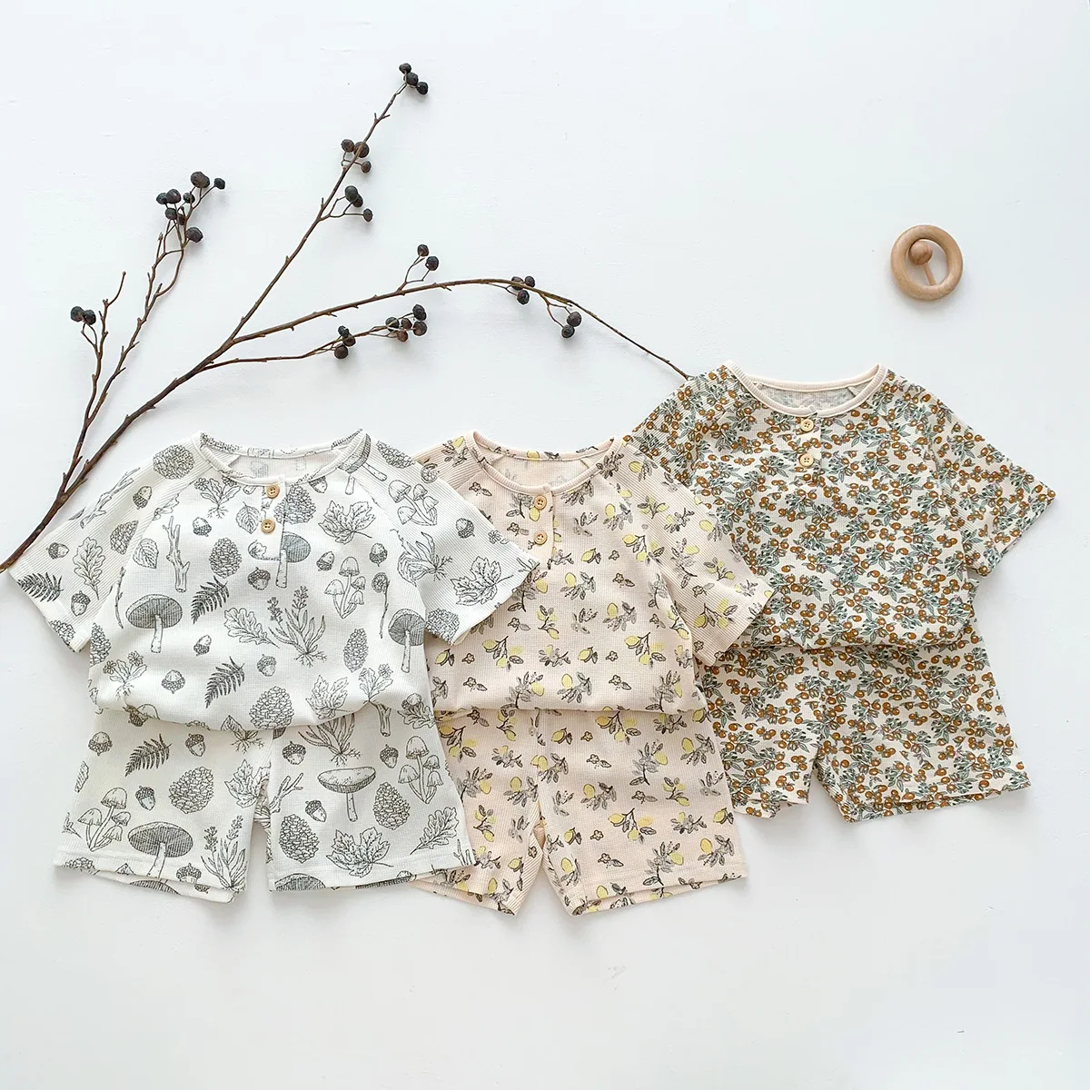 キッズ 半袖 プリント セットアップ パジャマ Tシャツ ショートパンツ フラワー レモン