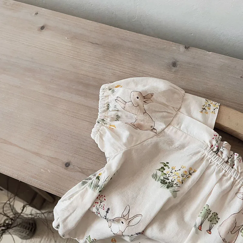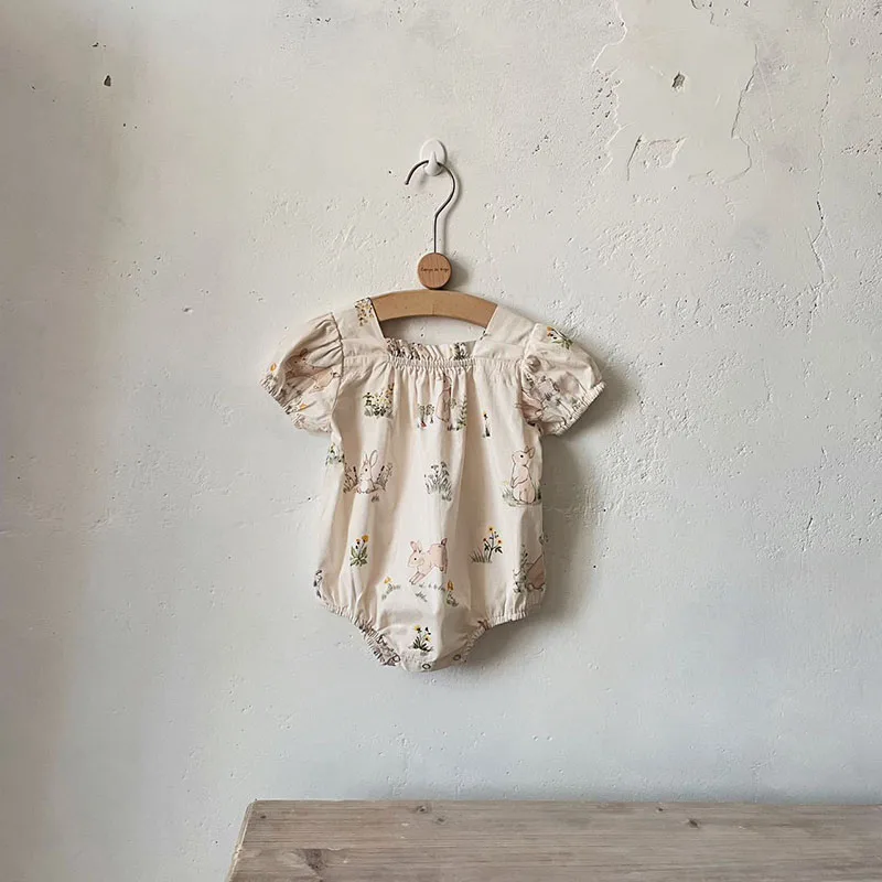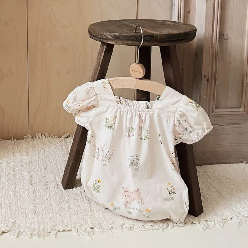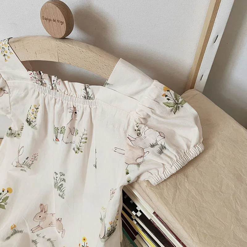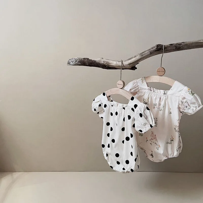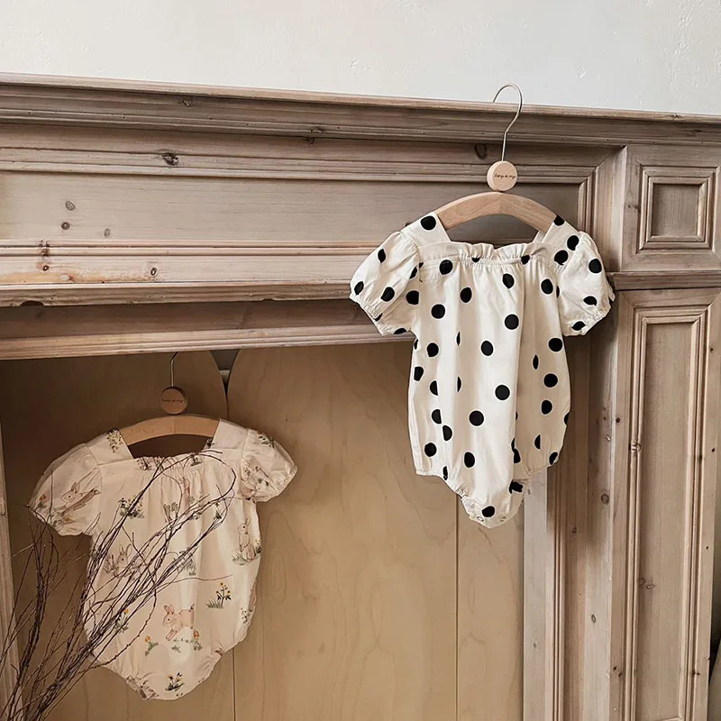 ベビー うさぎ ラビット 水玉 ドット 半袖 パフスリーブ ロンパース【mh0001866】
