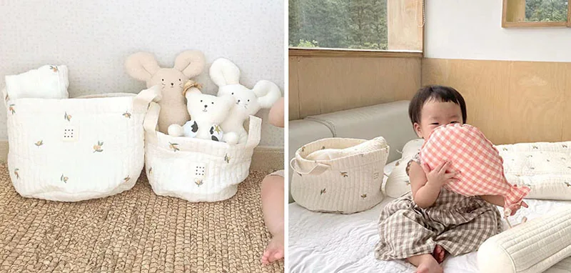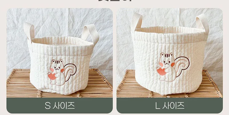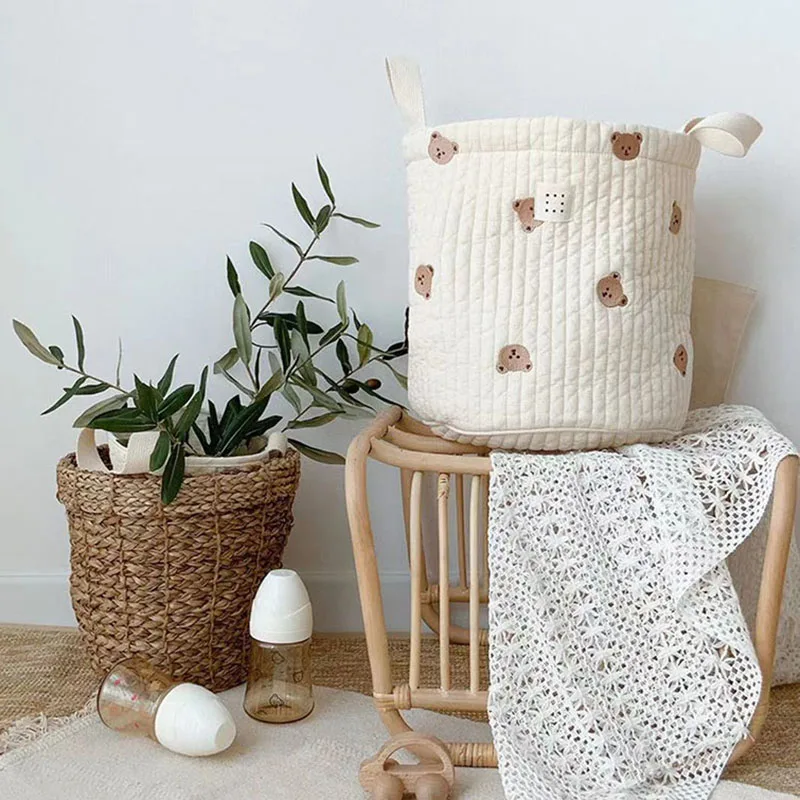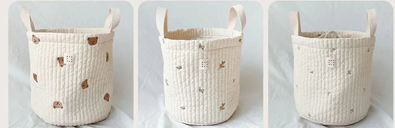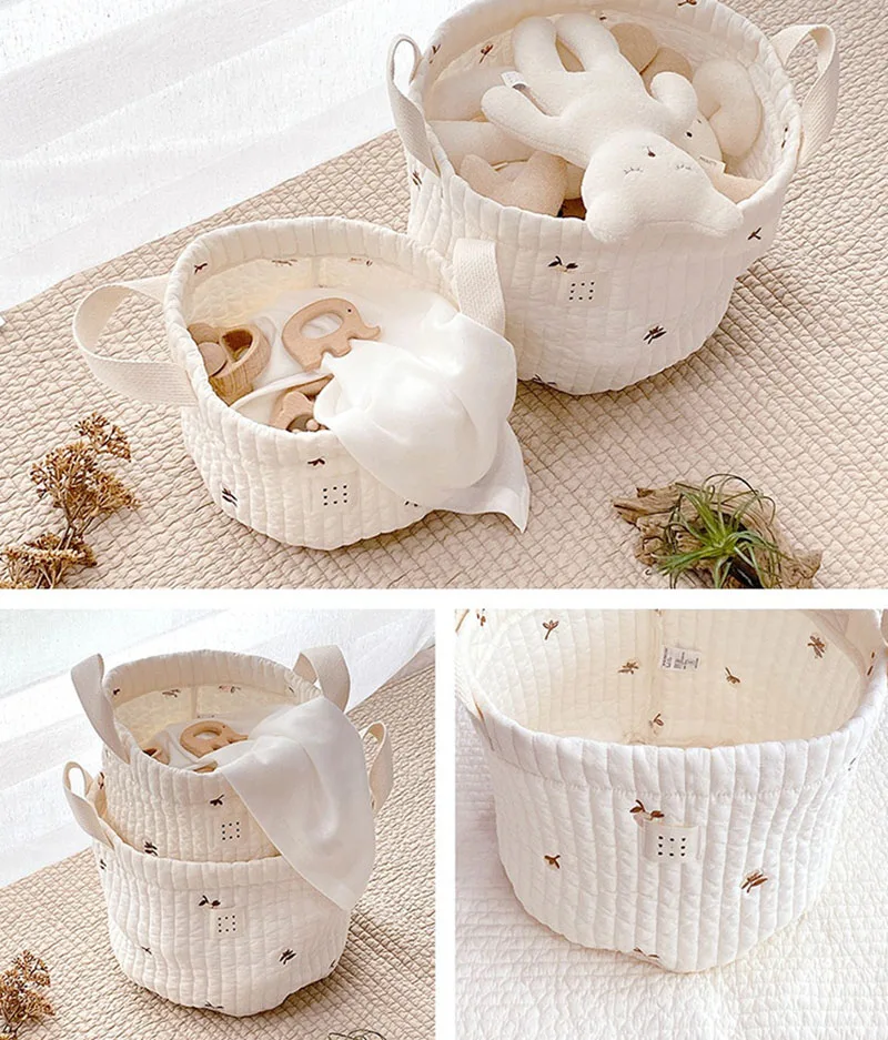 キルティングバスケット おもちゃ おむつ 刺繍 収納ボックス ハンドル付き【mh0003543】