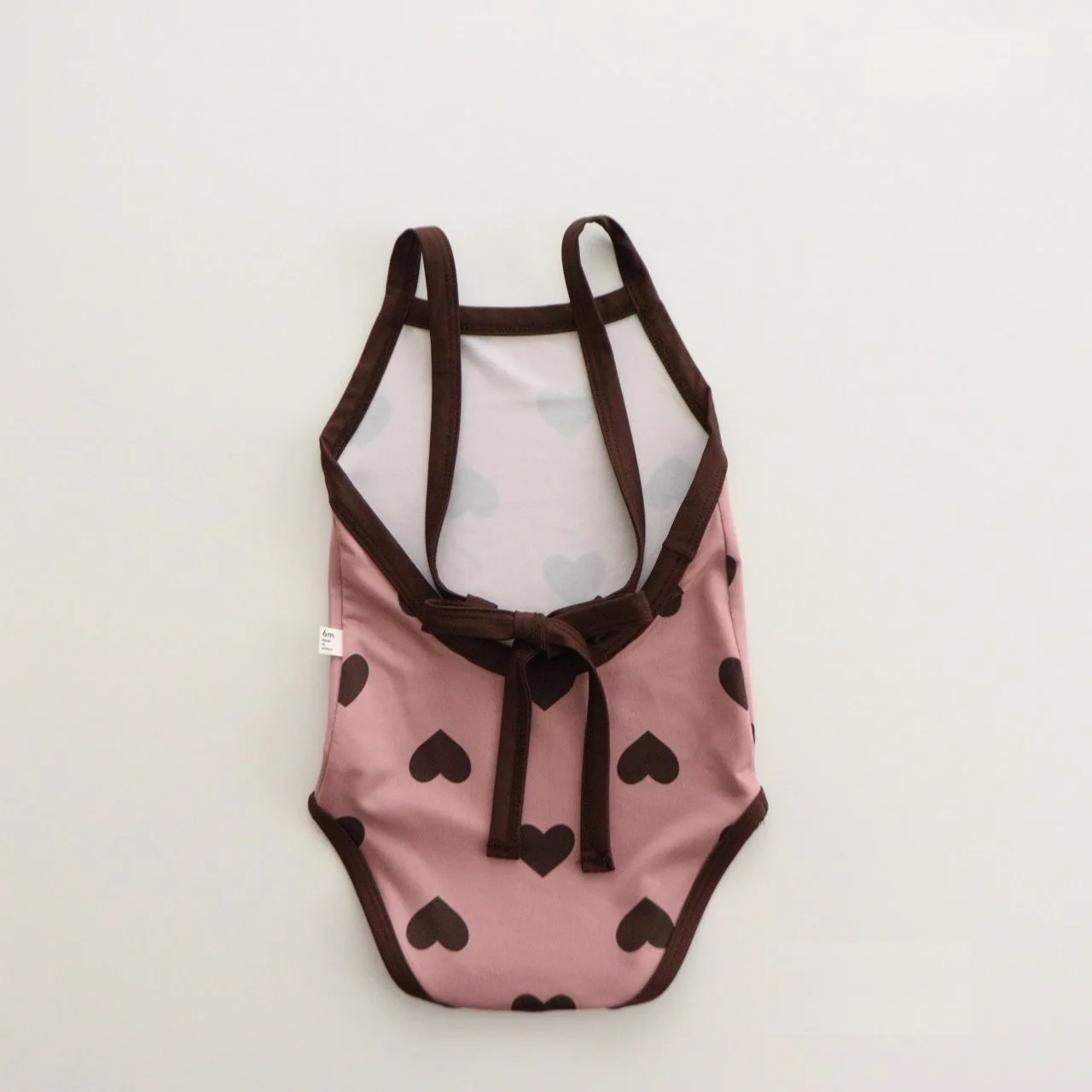 #ベビー水着 #帽子セット #ワンピース #ハートプリント #スイムウェア #夏コーデ #韓国ベビー服 #66cm #73cm #80cm #90cm #100cm