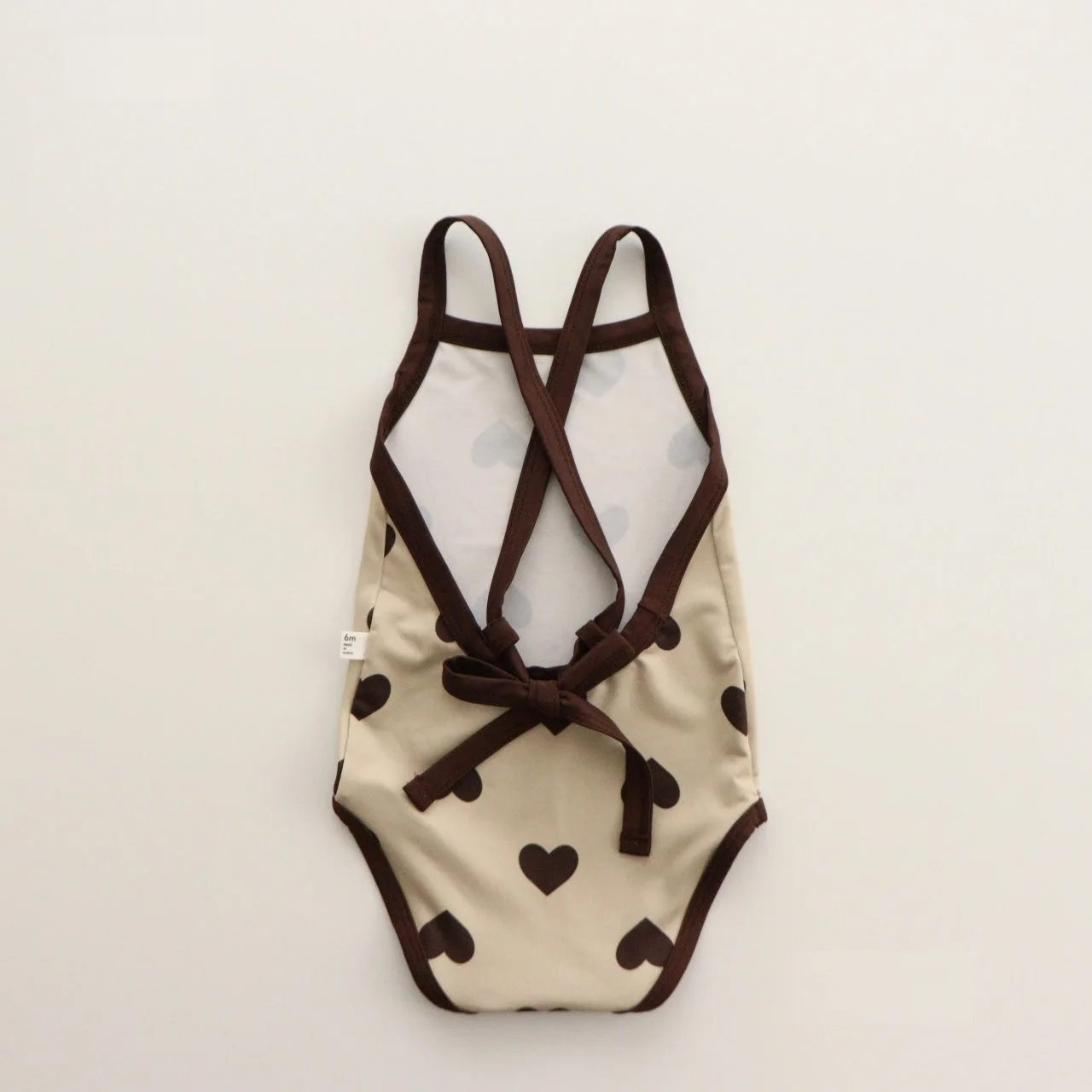 ベビー水着 帽子セット ワンピース ハートプリント スイムウェア 3カラー【mh0004448】