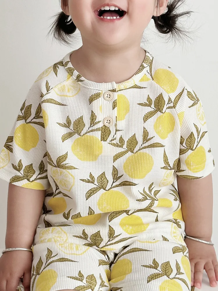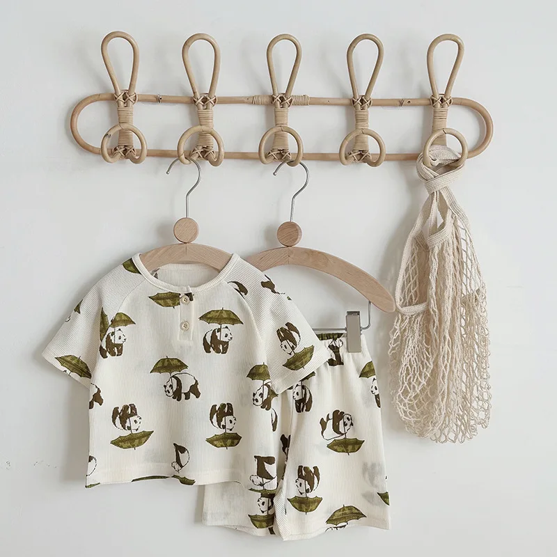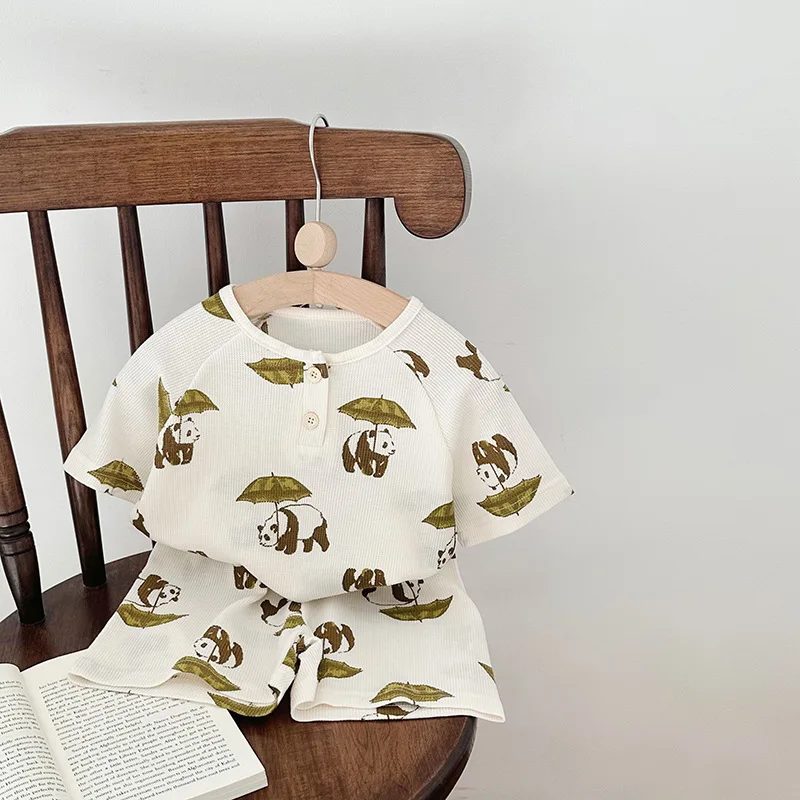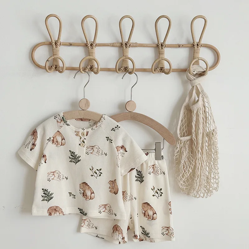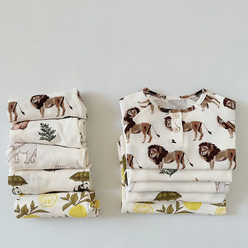 心地よい眠りを提供する、おしゃれなキッズパジャマセットが登場しました。ワッフル素材の半袖Tシャツは通気性があり、快適な睡眠環境をサポート。ハーフパンツには可愛らしいアニマルプリント柄が施され、子供たちに楽しい夢を運んでくれます。柔らかな肌触りと遊び心あふれるデザインで、眠りの時間も楽しさに満ちています。おうち時間を彩る、ユニークで愛らしいパジャマセットです。