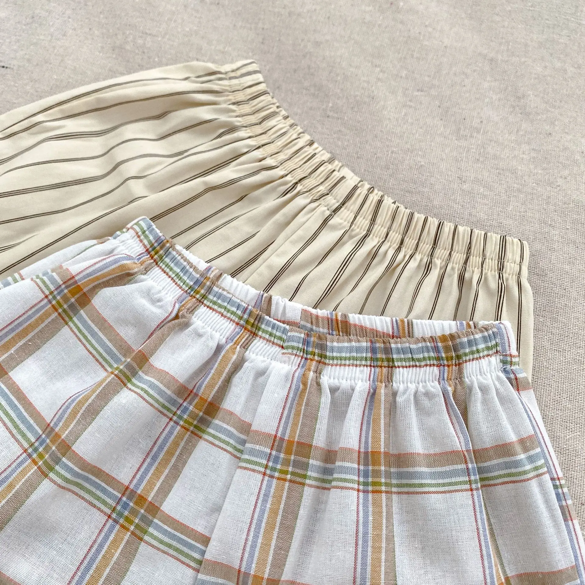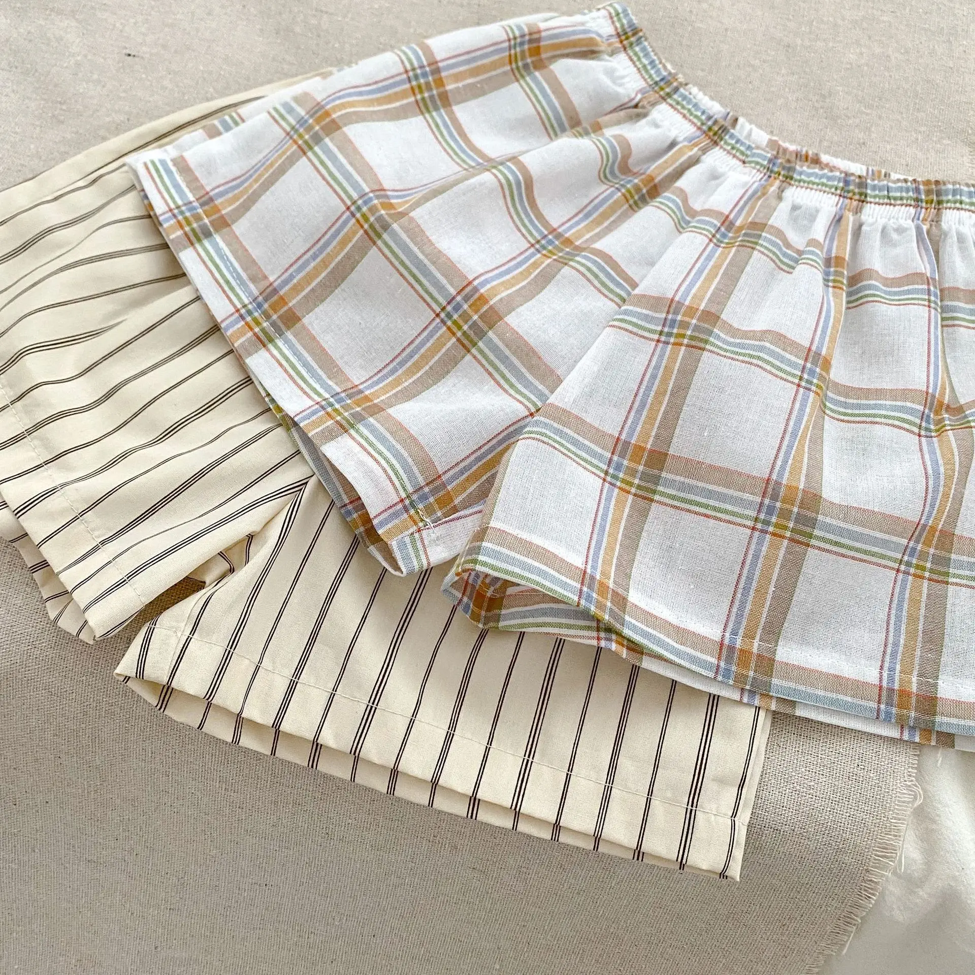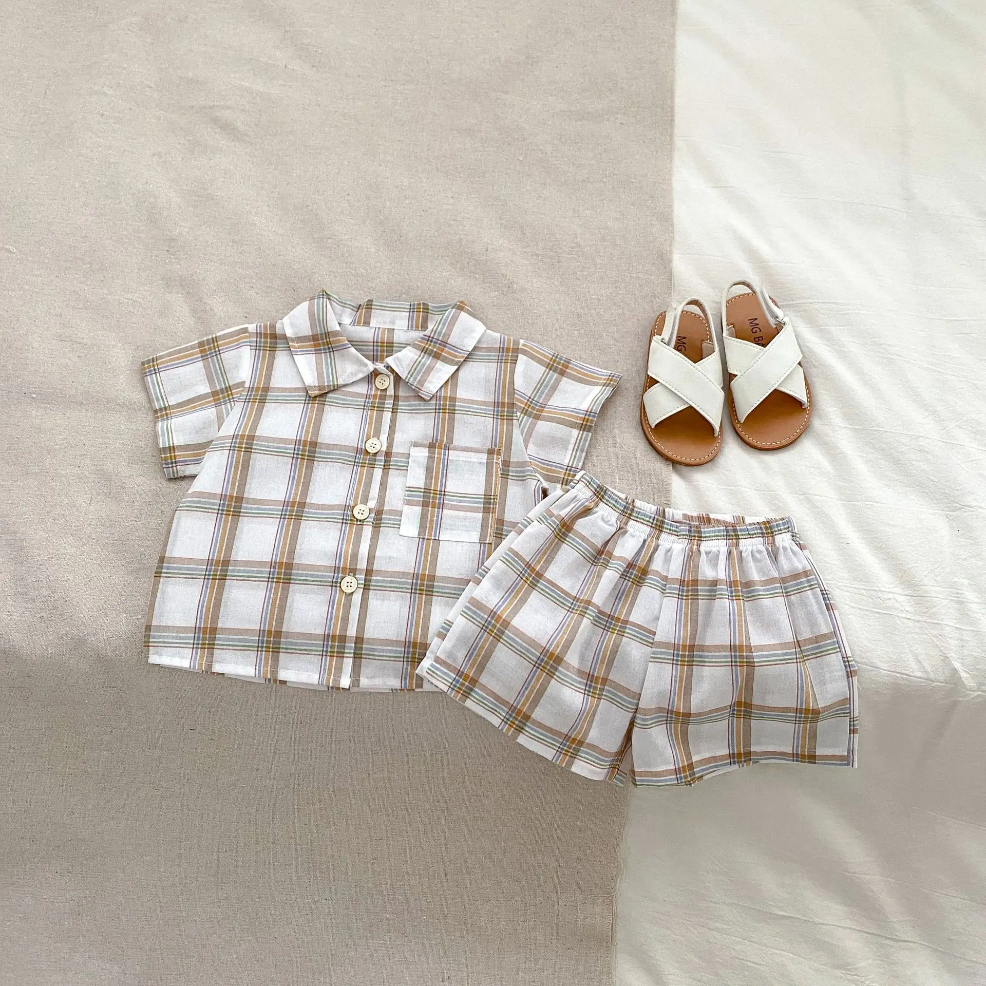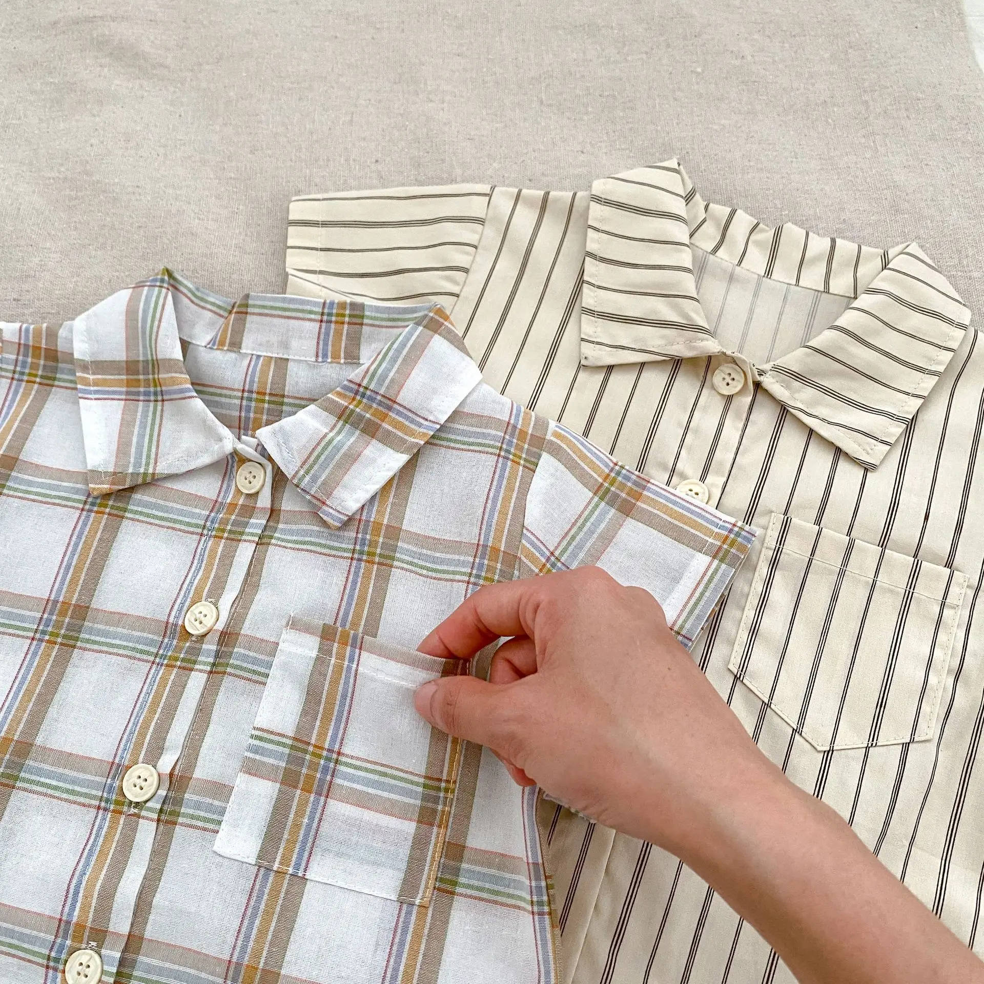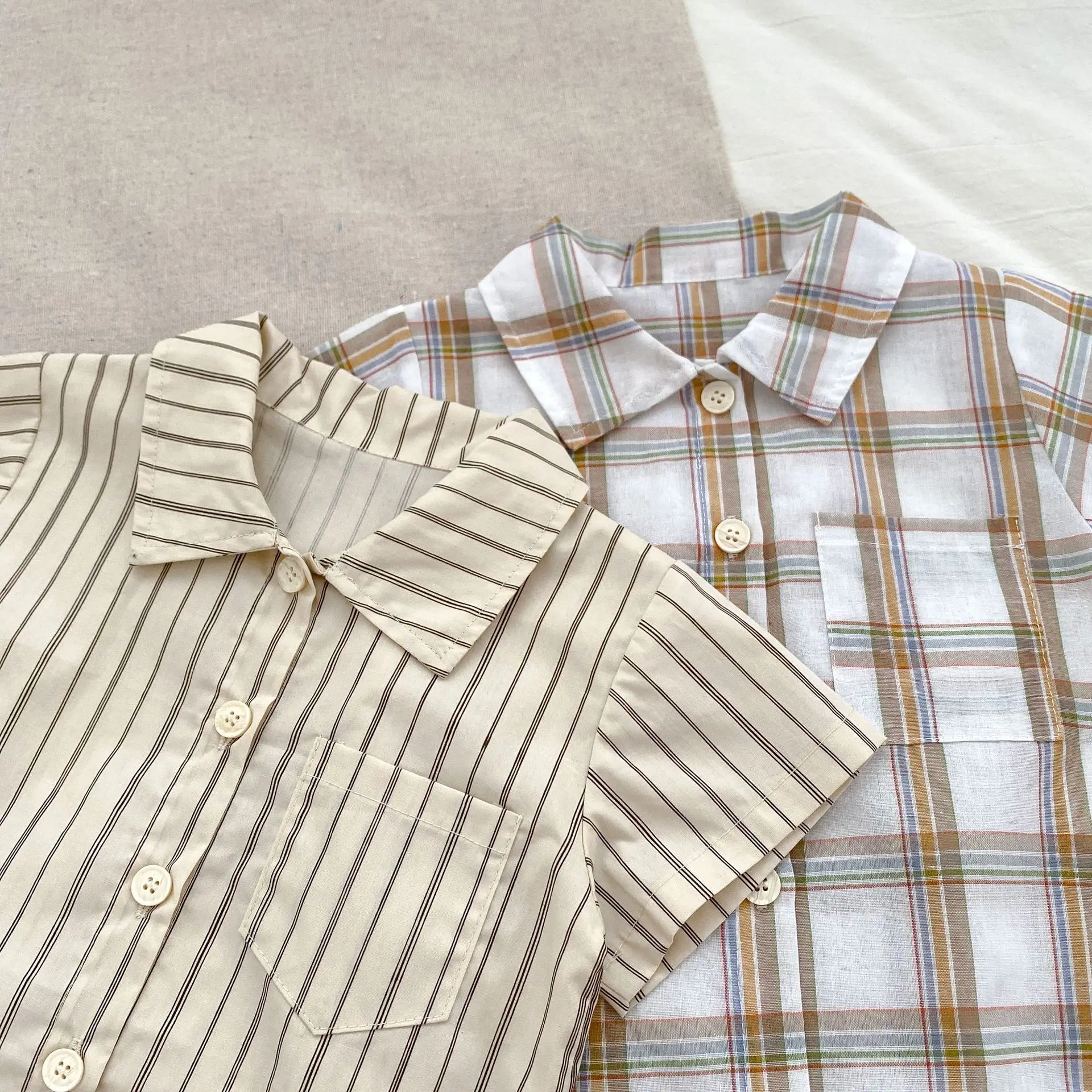 ベビーキッズセットアップ 2点セット 半袖シャツ+ショートパンツ ストライプ/レトロチェック【mh0005483】