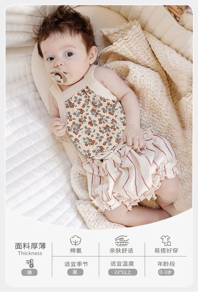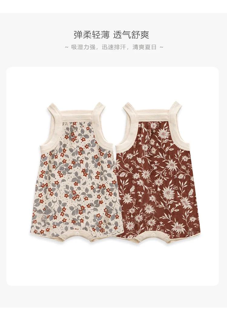 おしゃれな女の子のための夏のベビーロンパース!柔らかいコットンで作られたキャミソールジャンプスーツは、赤ちゃんのお肌にやさしく、動きやすさも抜群。お花柄のプリントでとっても可愛いです。