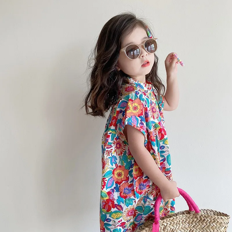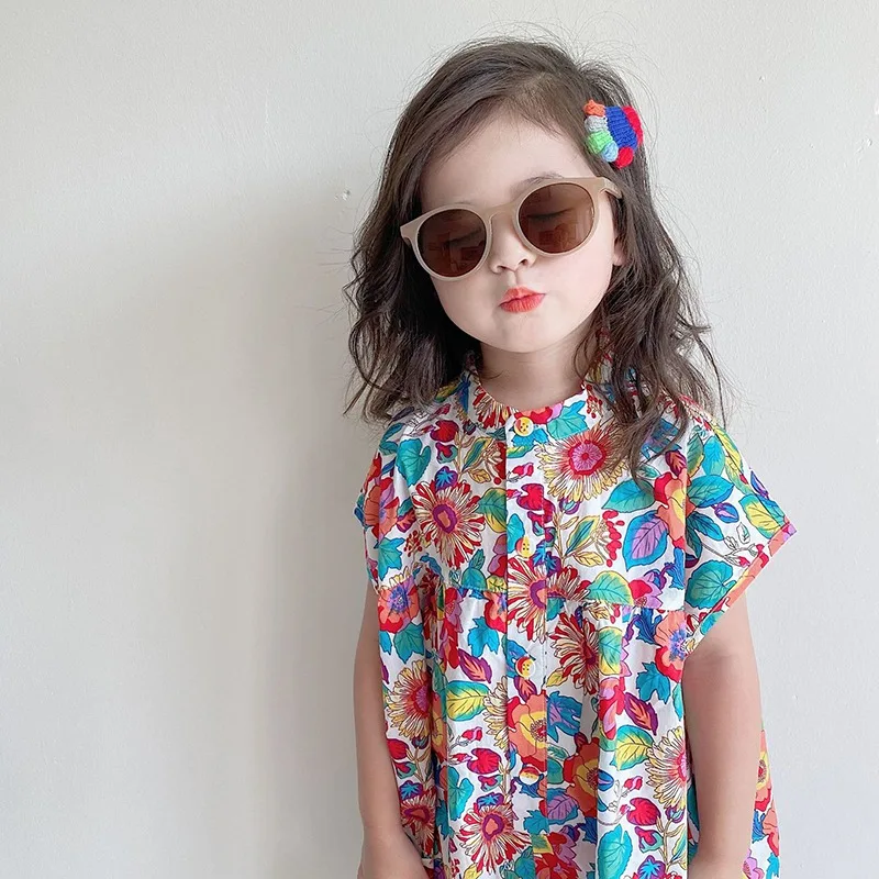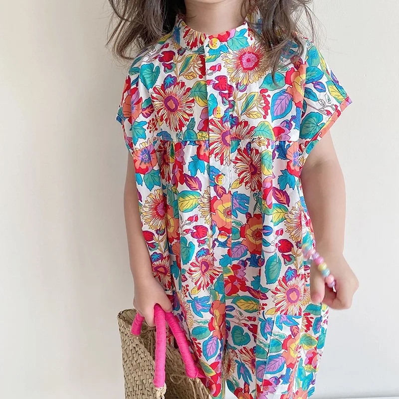 キッズジャンプスーツ 半袖シャツつなぎ フラワー花柄プリント【mh0005838】