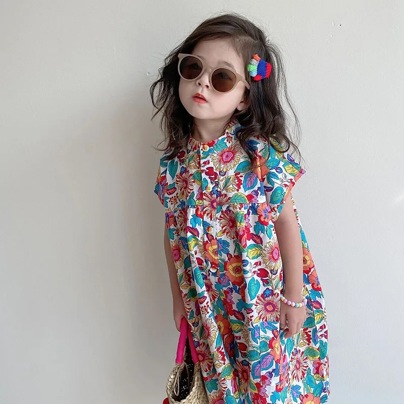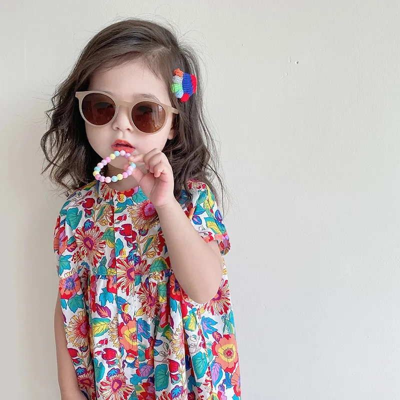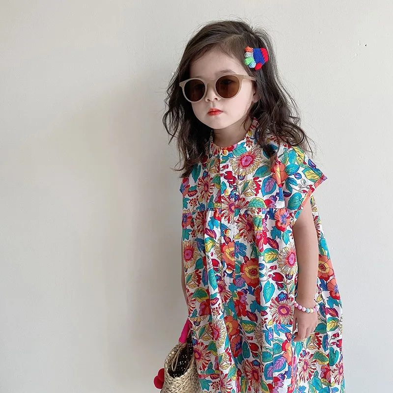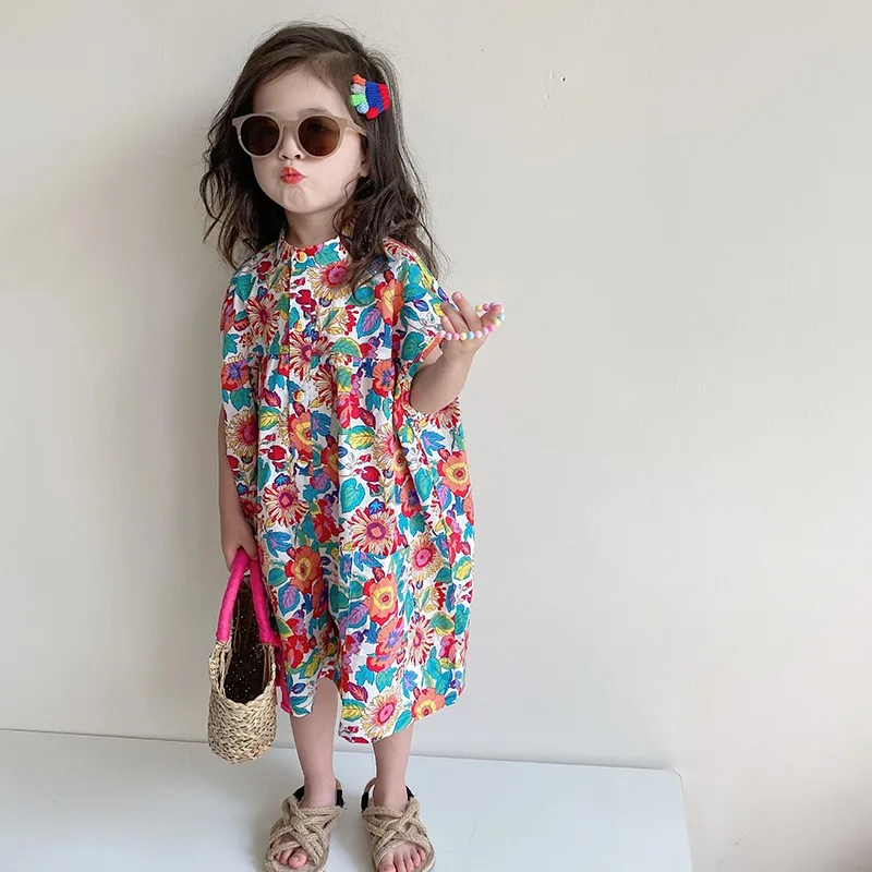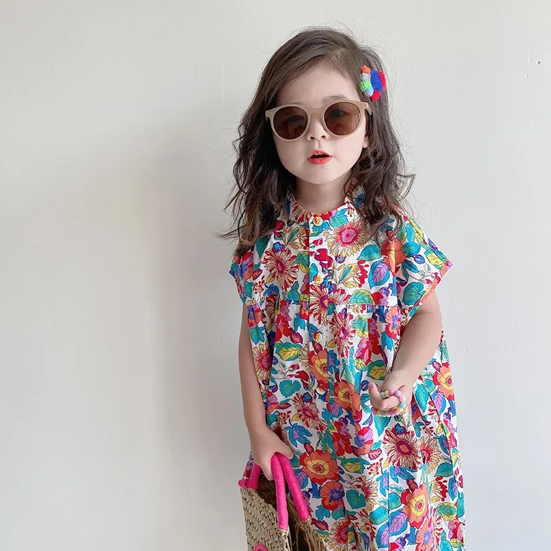 このキッズジャンプスー」は、夏の女の子のお洒落を叶えるアイテムです。きれいなフラワー花柄のプリントが可愛らしく、ショートスリーブのワイドレッグデザインで動きやすさも抜群。休日やイベントで活躍すること間違いなしの一着です。