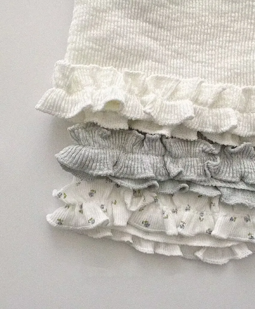 ベビーパンツ ショートレギンス フリル フラワー花柄プリント/無地 3カラー【mh0005897】