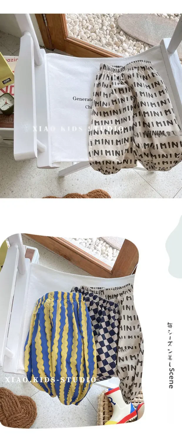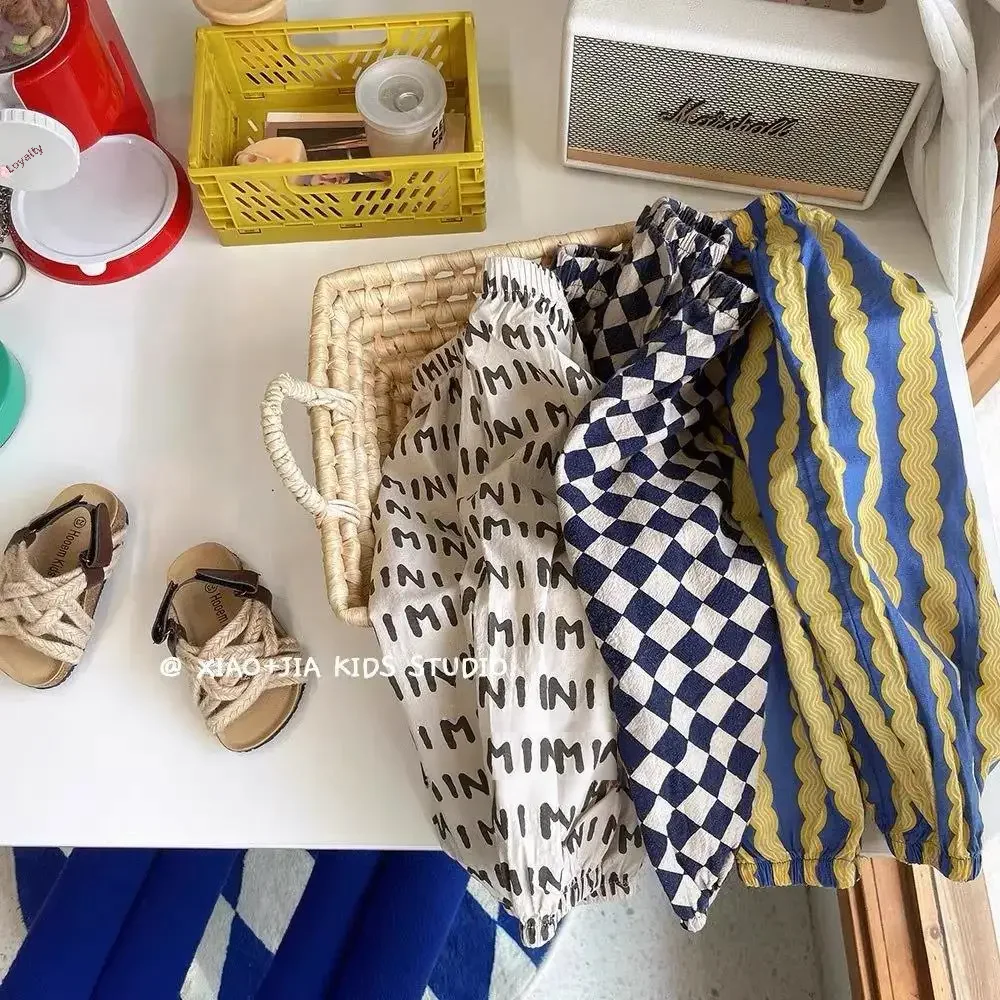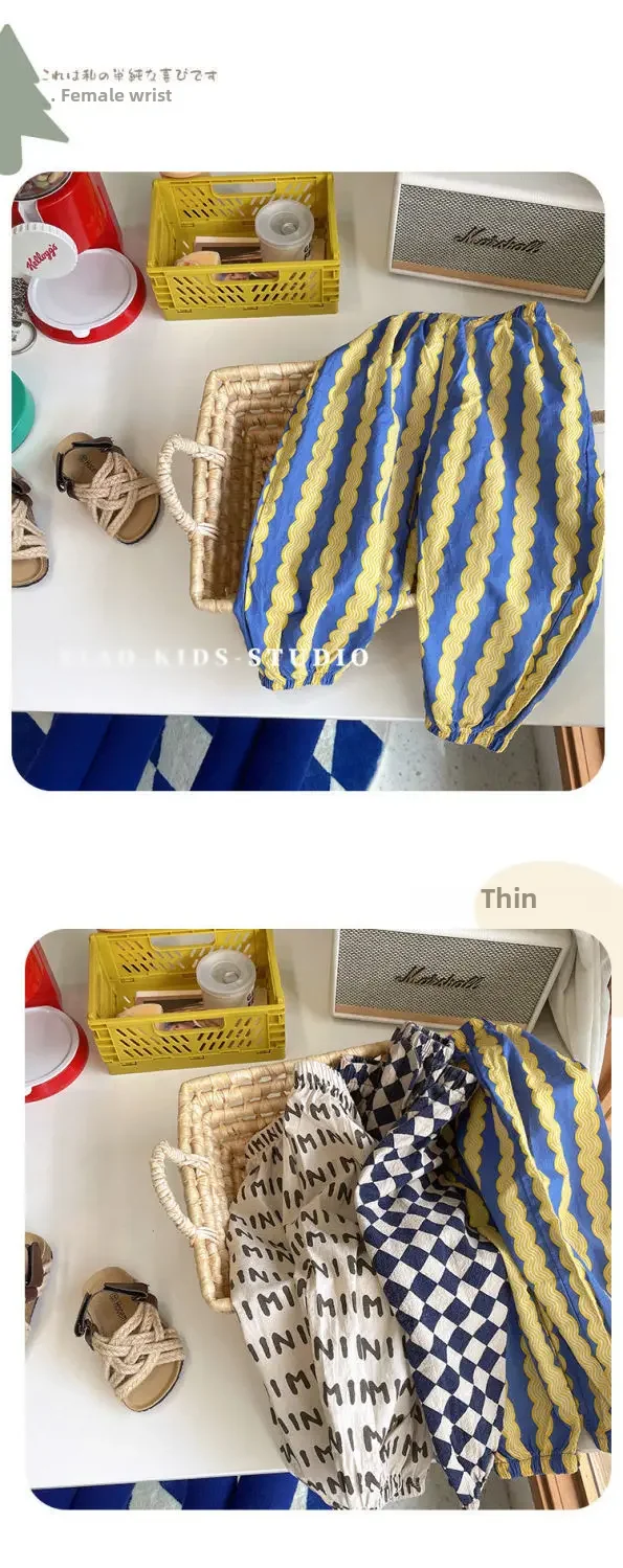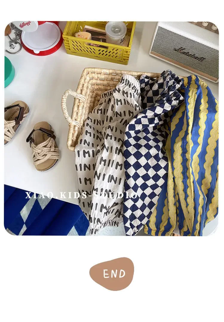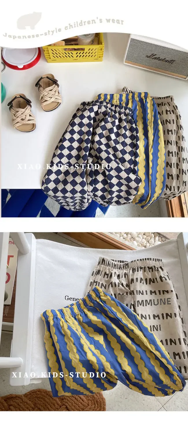 キッズパンツ サマールーズロングパンツ 幾何学/レターロゴ/コアラ/ダイヤチェック/ストライププリント【mh0006098】