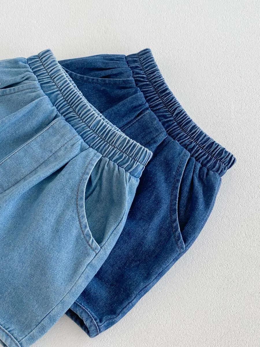 キッズパンツ デニムショートパンツ シンプルベーシック 2カラー【mh0006184】