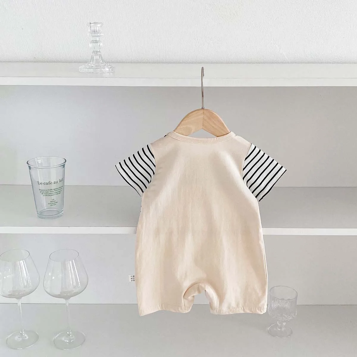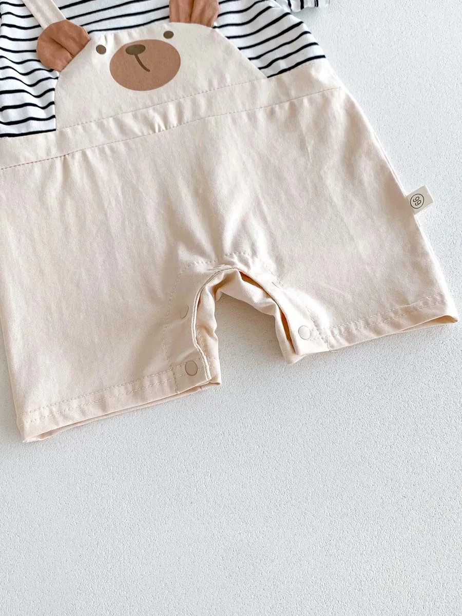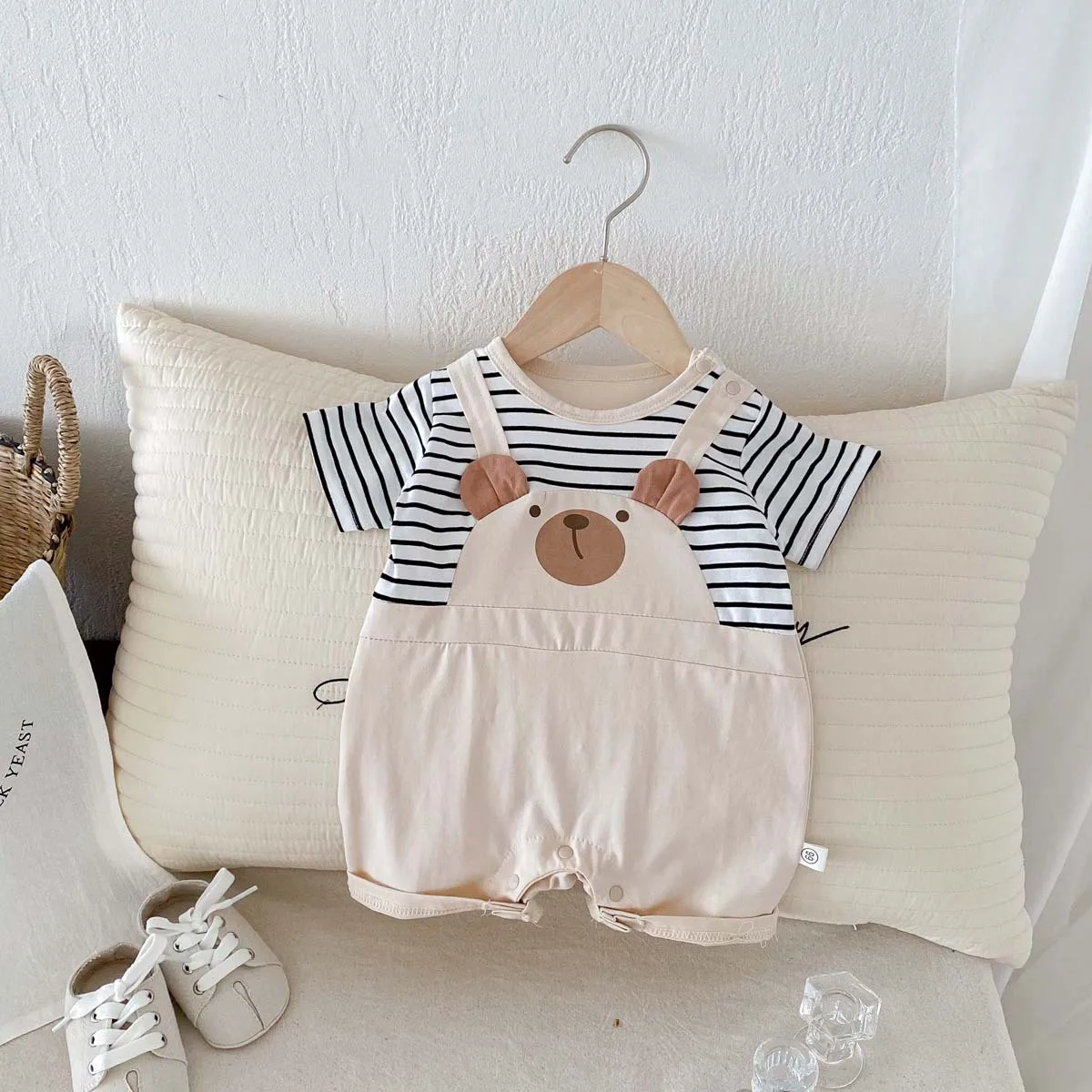 ベビーロンパース 半袖ドッキングジャンプスーツ くまベア ボーダー【mh0006194】