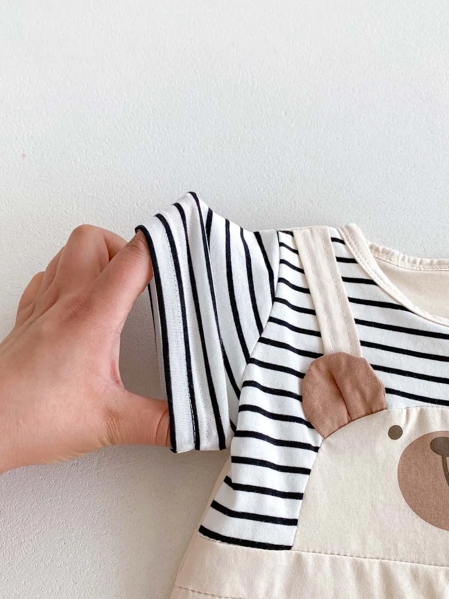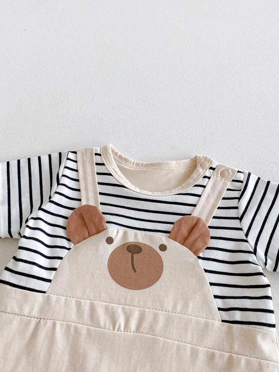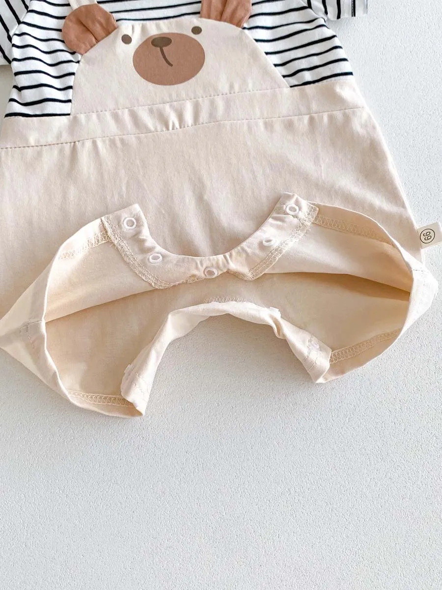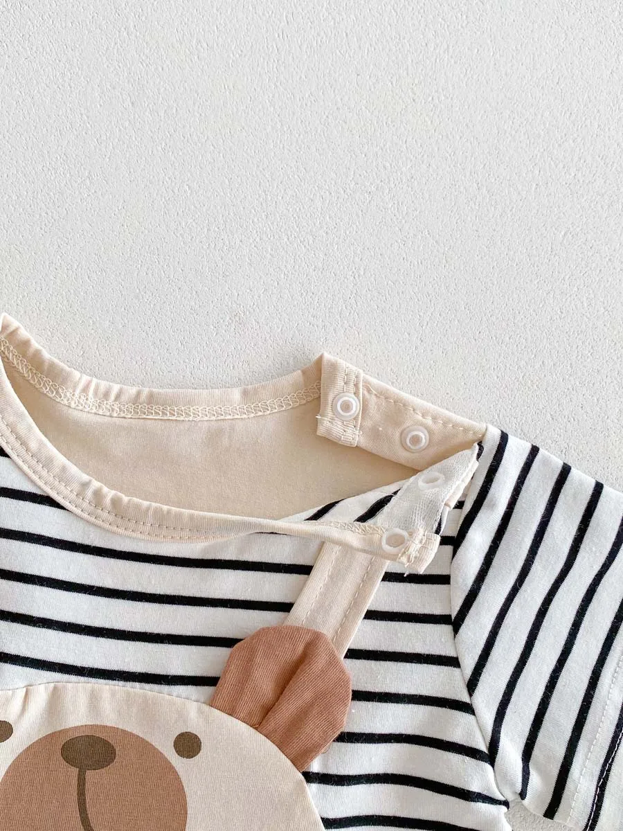 ベビーロンパース 半袖ドッキングジャンプスーツ くまベア ボーダー【mh0006194】
