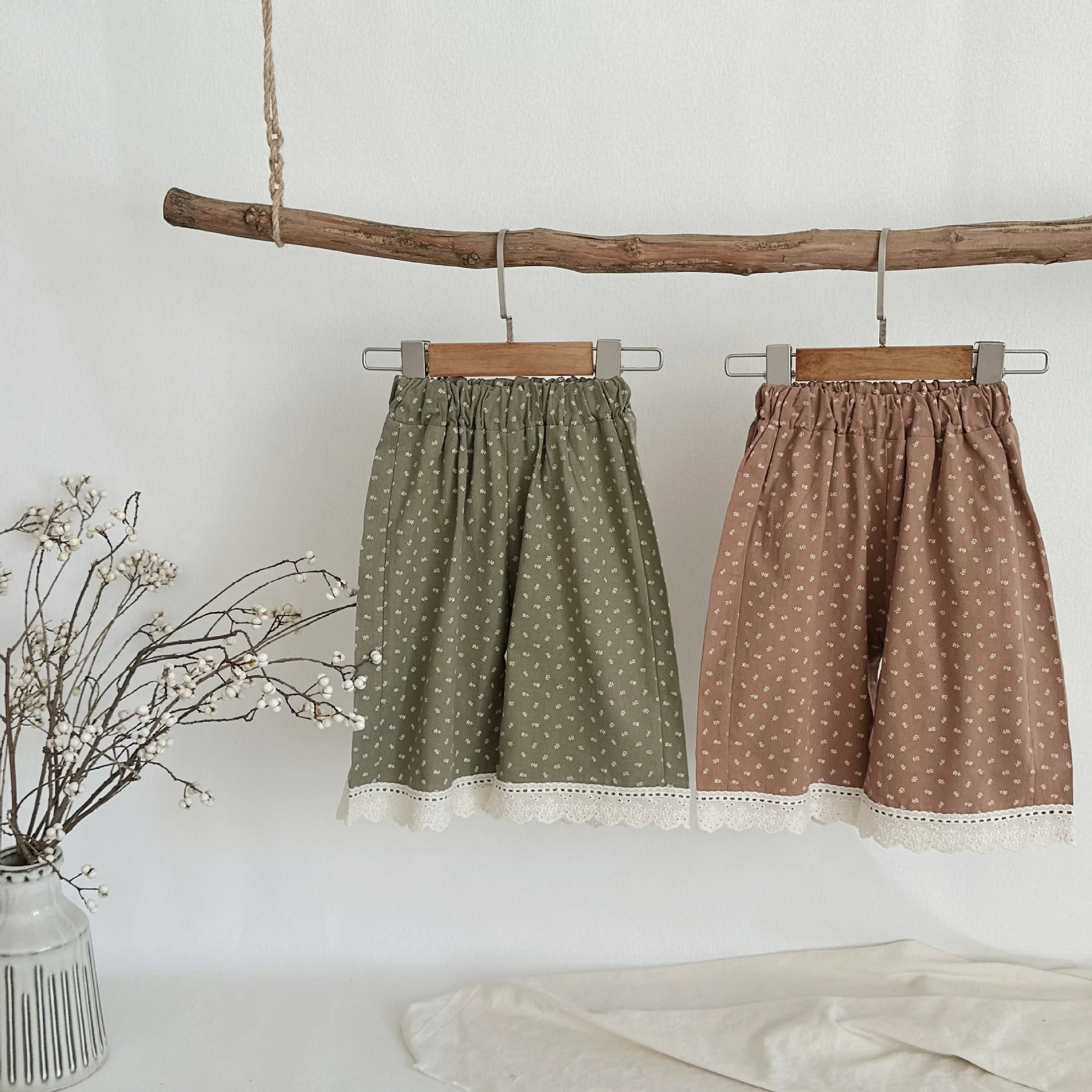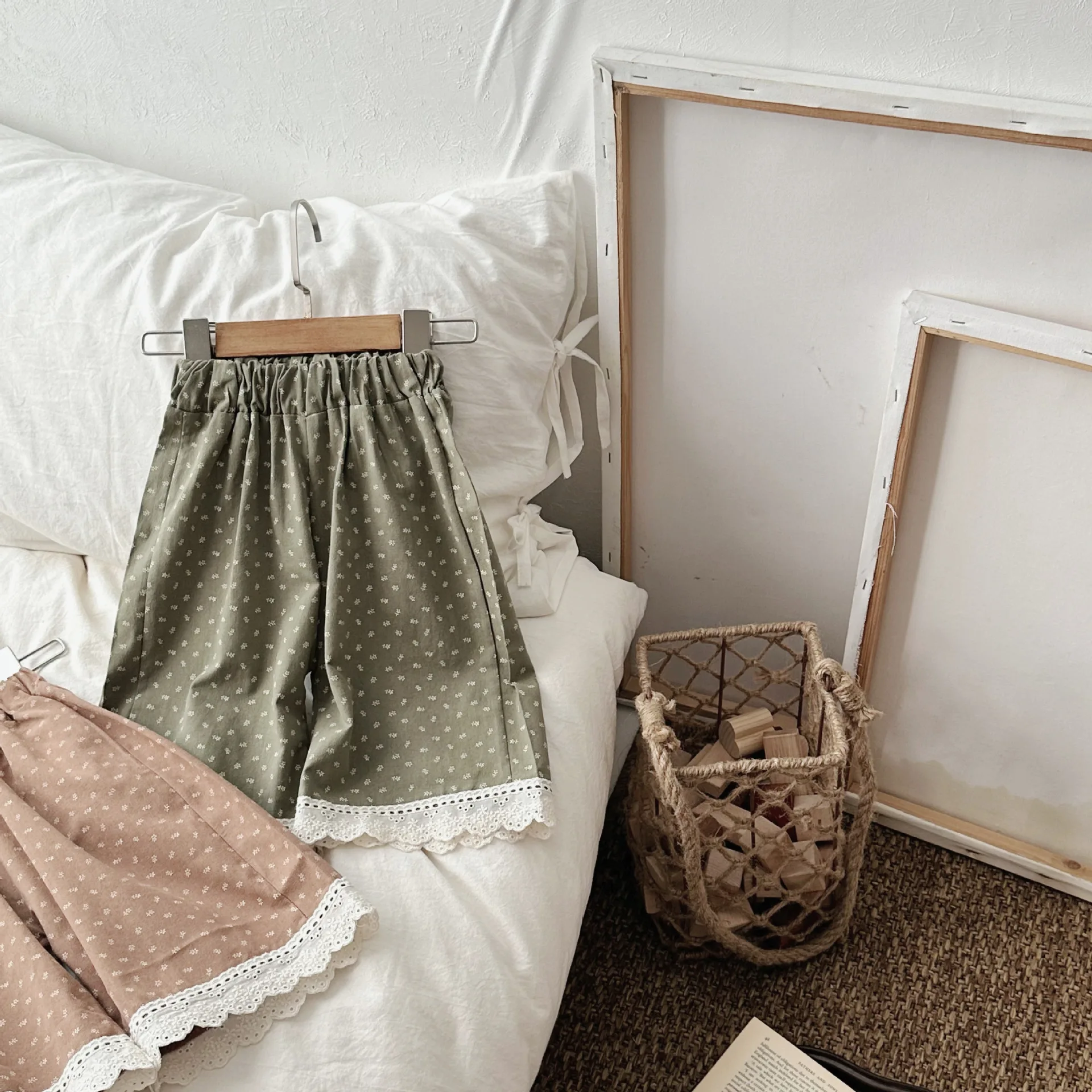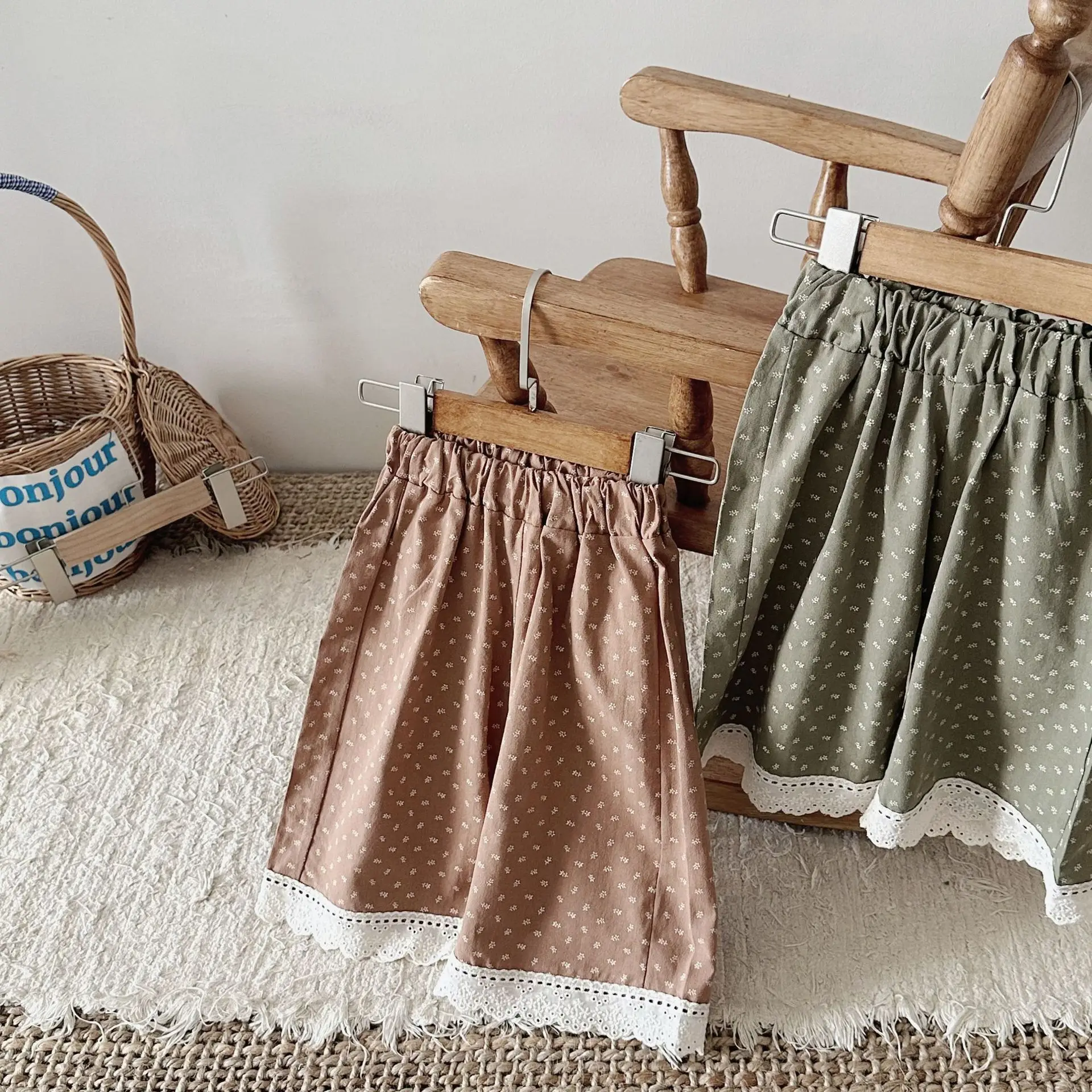 この秋に登場したばかりのおしゃれなベビーパンツ。裾に施されたレースがエレガントで、幼い女の子にもよく似合います。ワイドなルーズフィットと長めの丈が、赤ちゃんの可愛らしさを引き立てます。水玉ドットのプリントで、シンプルでありながらも上品な印象を与えます。2つの可愛いカラーから選べます。