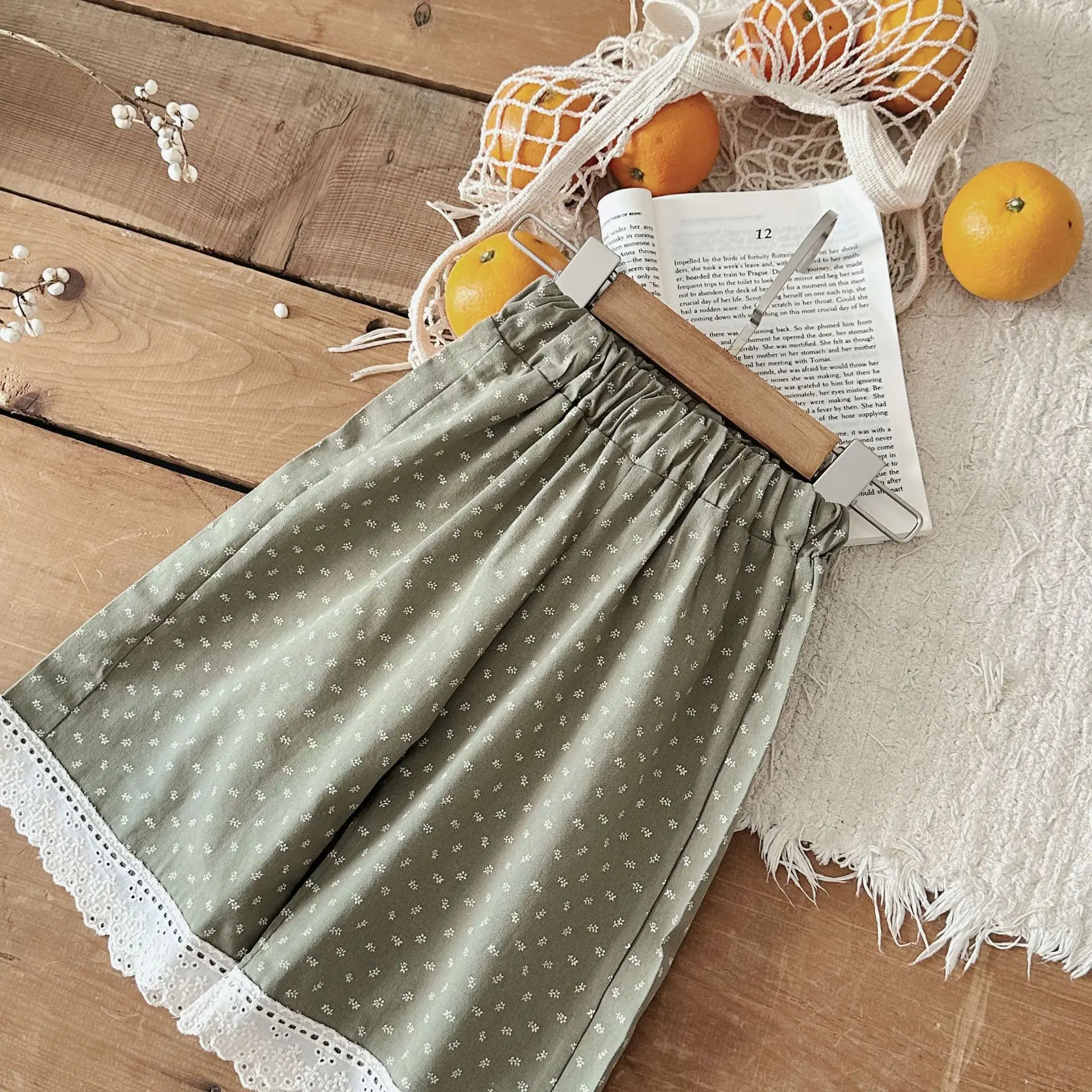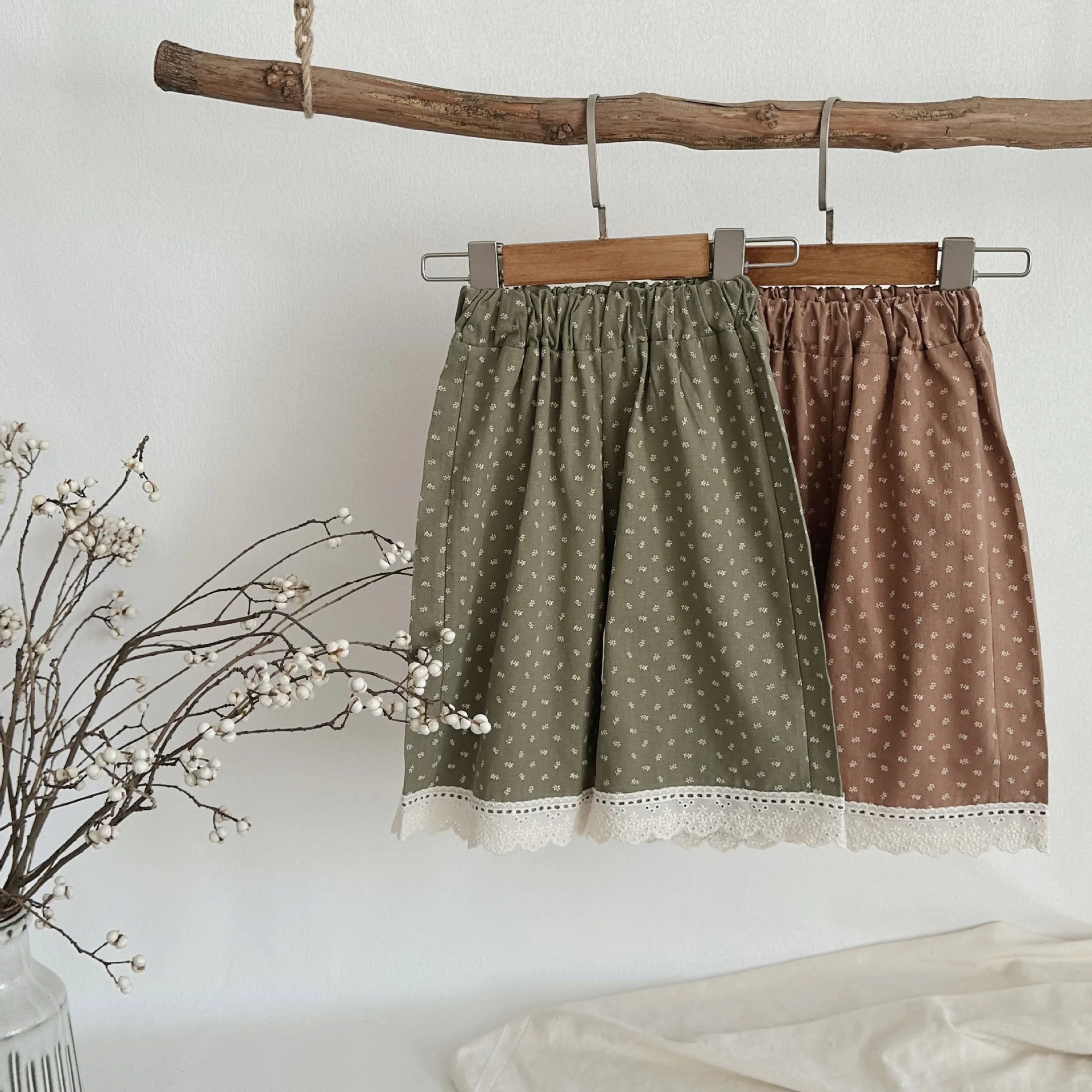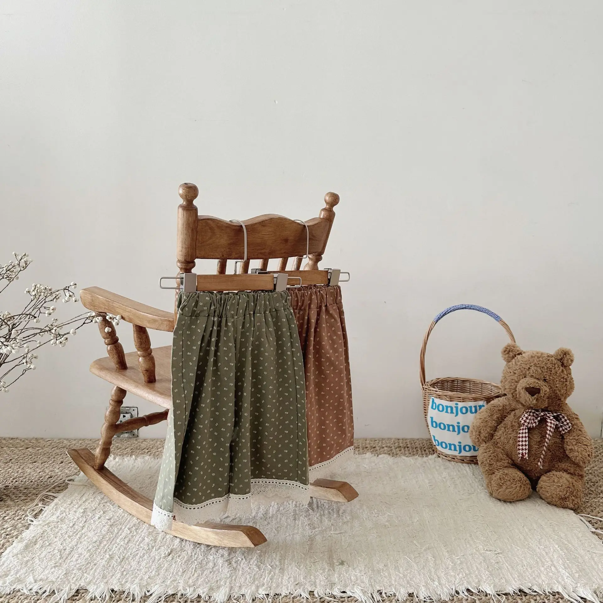 この秋に登場したばかりのおしゃれなベビーパンツ。裾に施されたレースがエレガントで、幼い女の子にもよく似合います。ワイドなルーズフィットと長めの丈が、赤ちゃんの可愛らしさを引き立てます。水玉ドットのプリントで、シンプルでありながらも上品な印象を与えます。2つの可愛いカラーから選べます。