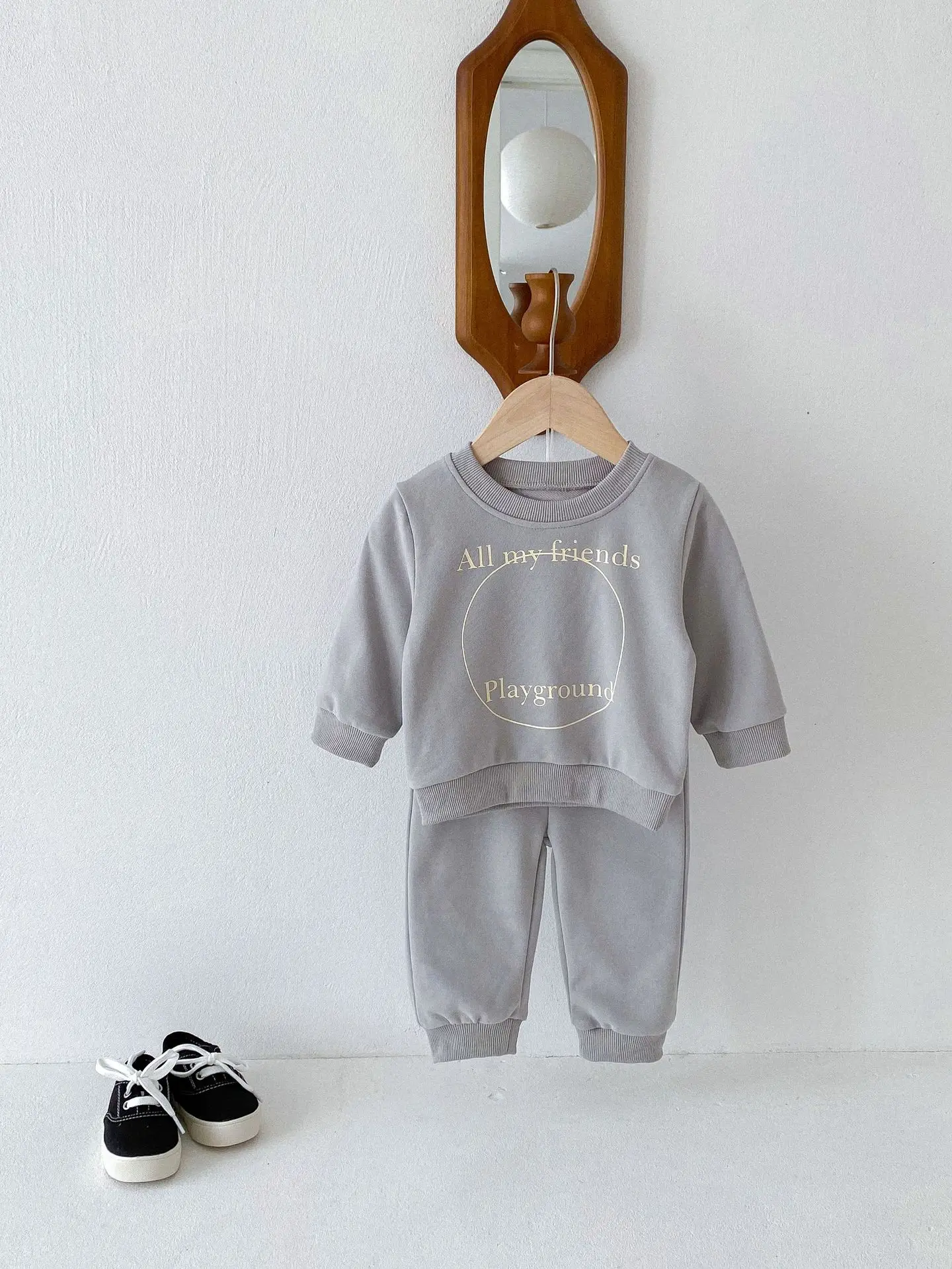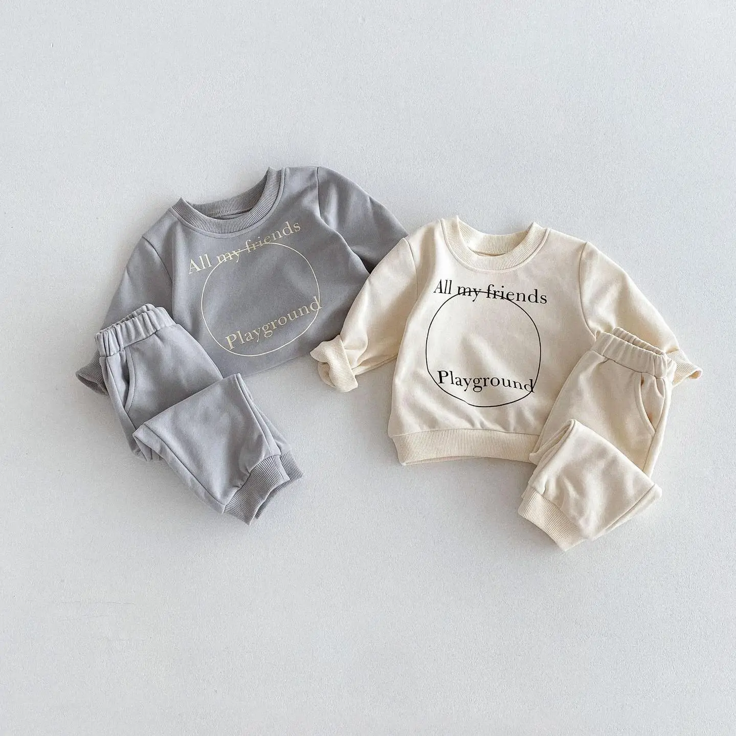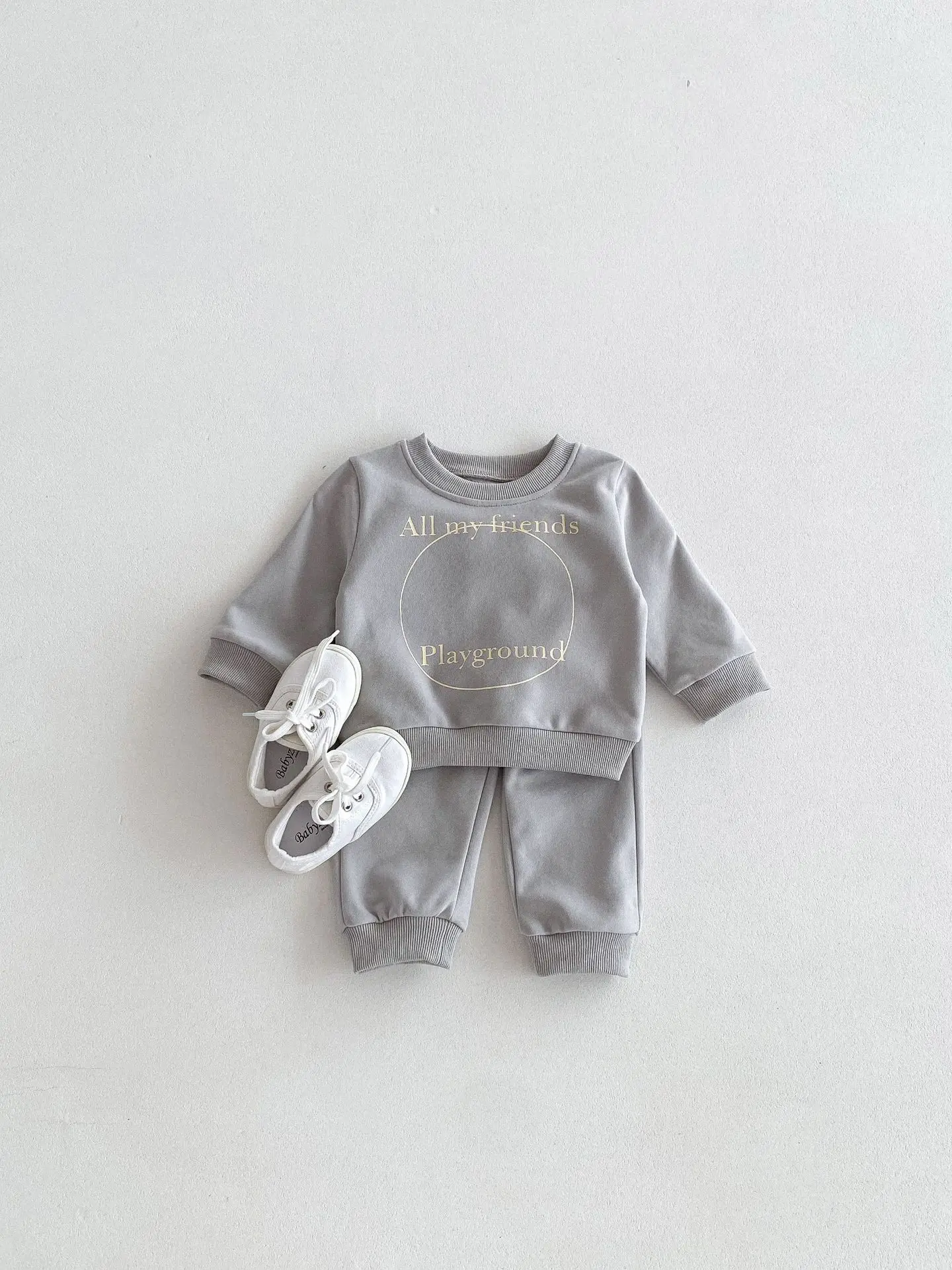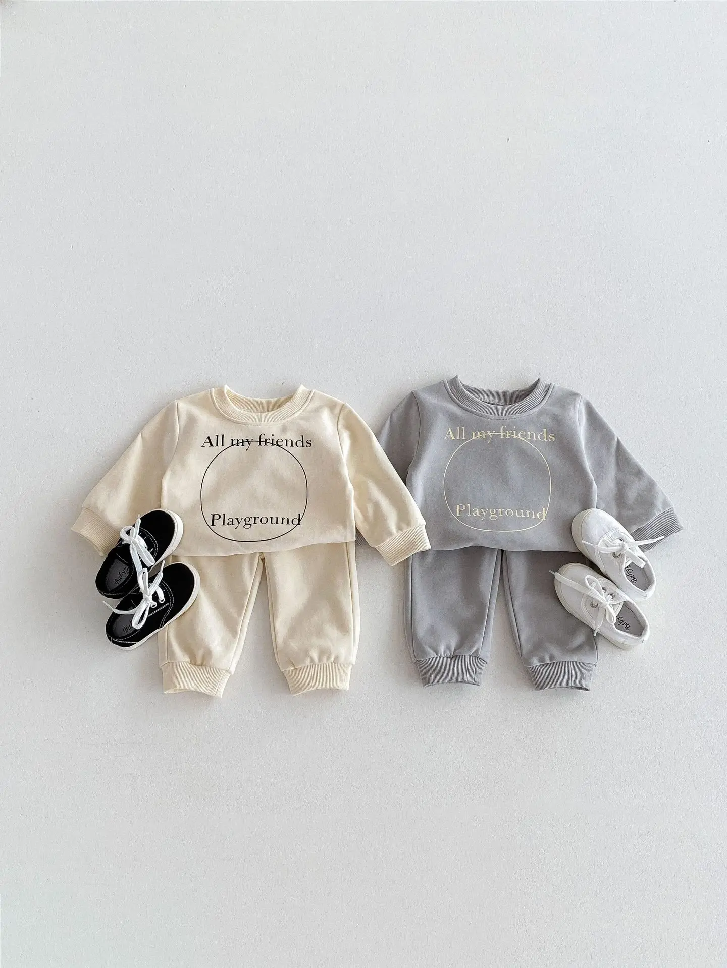 ベビーキッズセットアップ 2点セット スウェットシャツ+スウェットパンツ レターロゴプリント 2カラー【mh0006439】