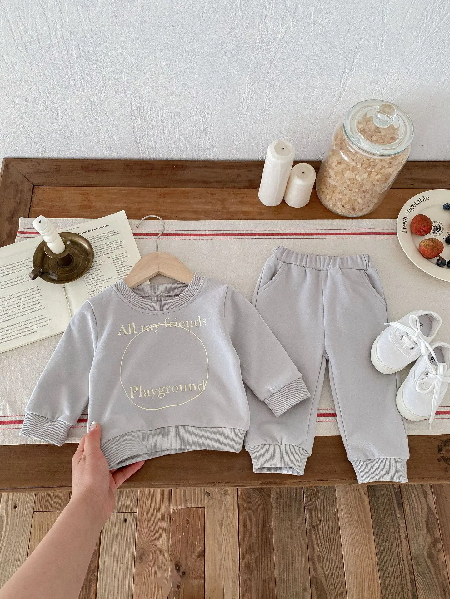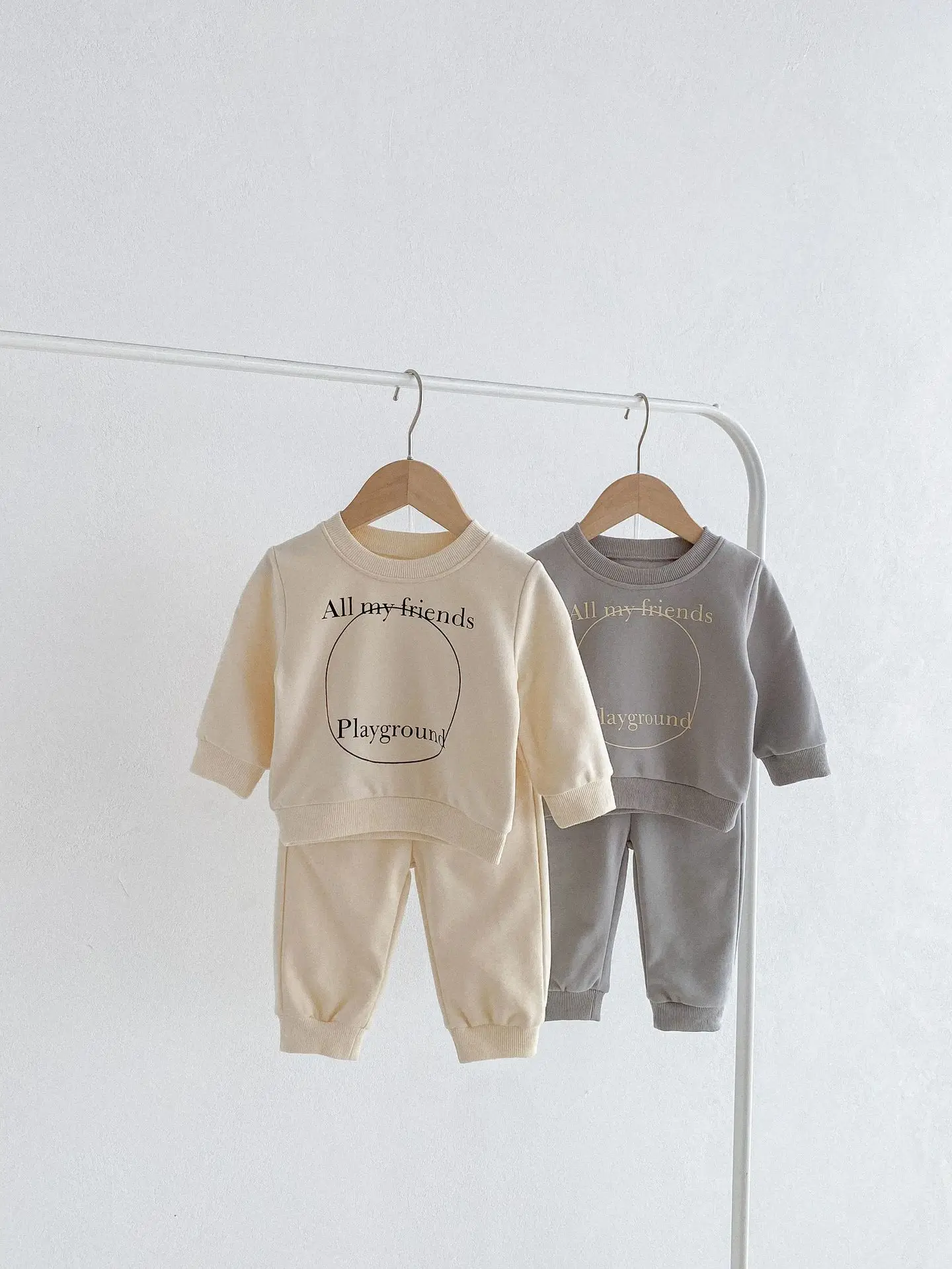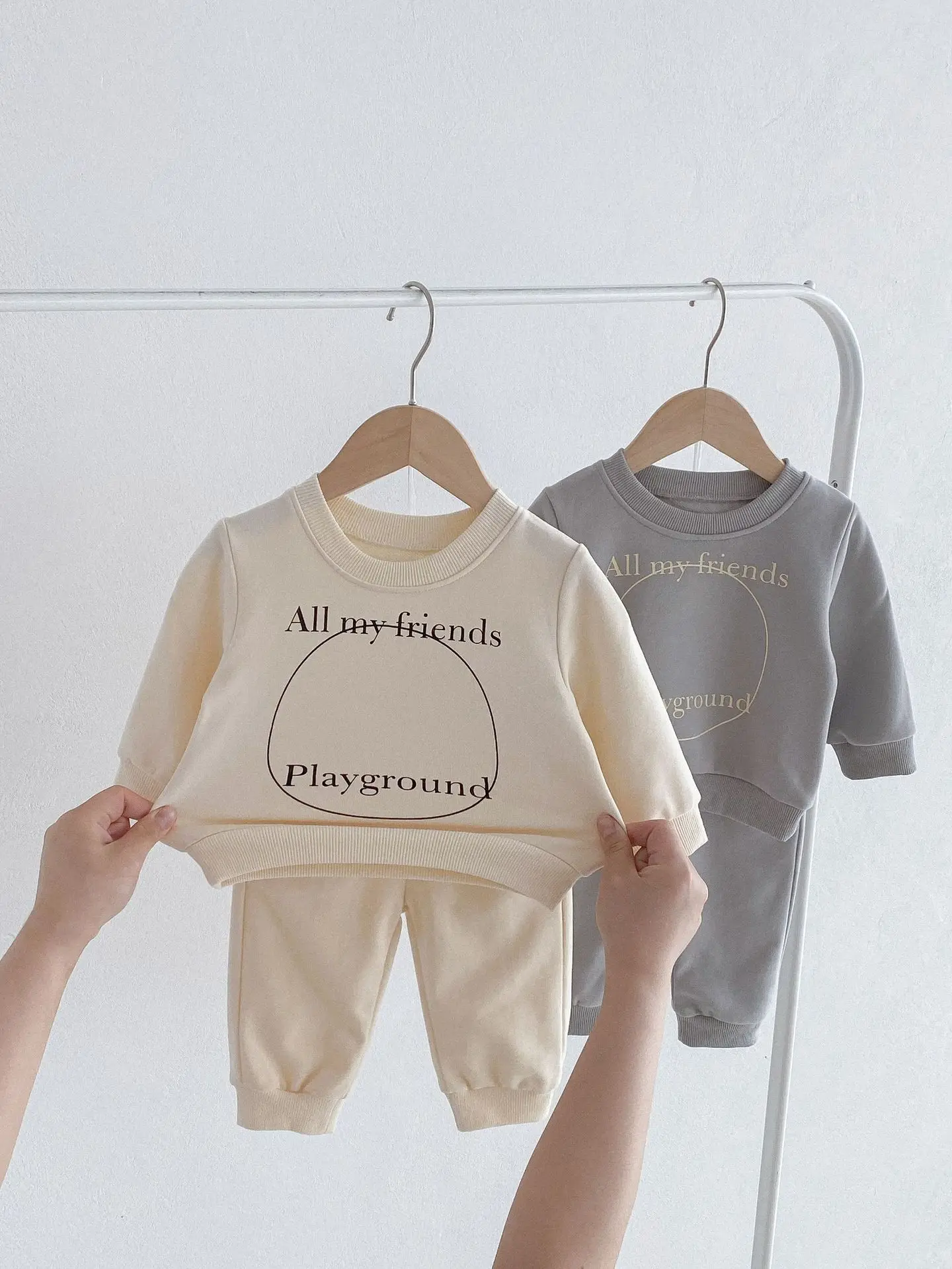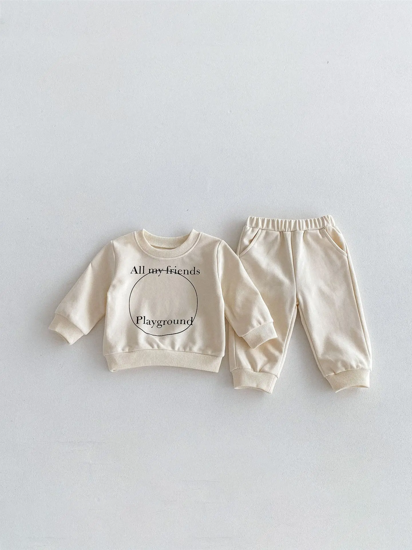 ベビーキッズセットアップ 2点セット スウェットシャツ+スウェットパンツ レターロゴプリント 2カラー【mh0006439】