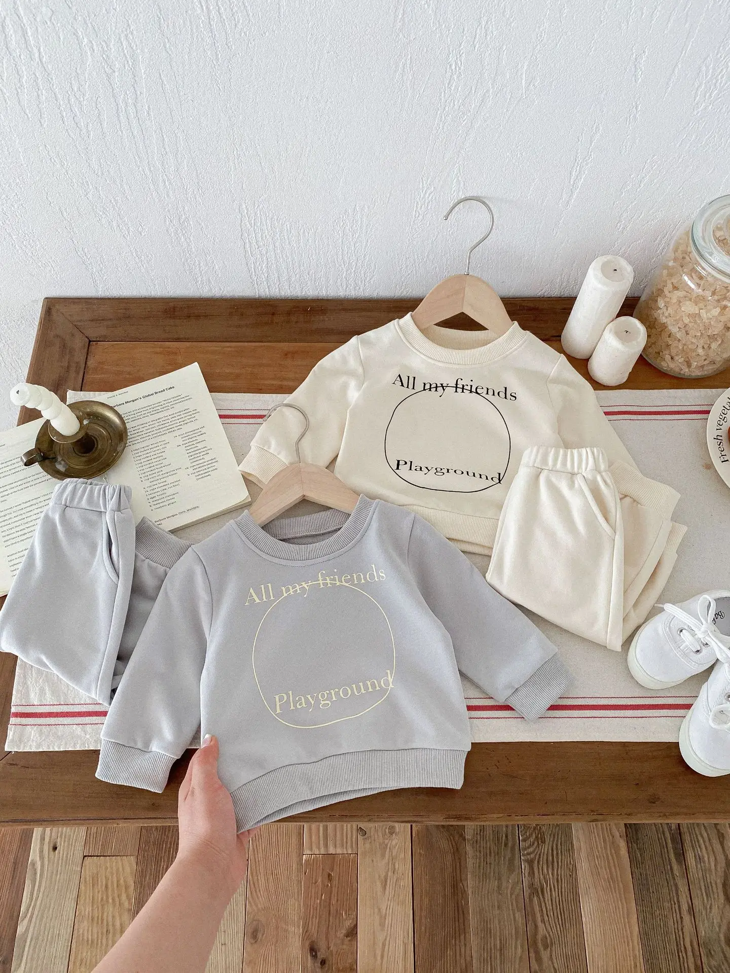 この秋冬のファッションにぴったりのベビーキッズセットアップ!上質なコットン素材で作られたスウェットシャツとスウェットパンツの2点セット。男女の赤ちゃんにぴったりのロゴプリントが施されており、お洒落なルックスと快適な着心地を両立することができます。2つのカラーからお選びいただけます。リラックスした子供服でおしゃれな雰囲気を演出しましょう。