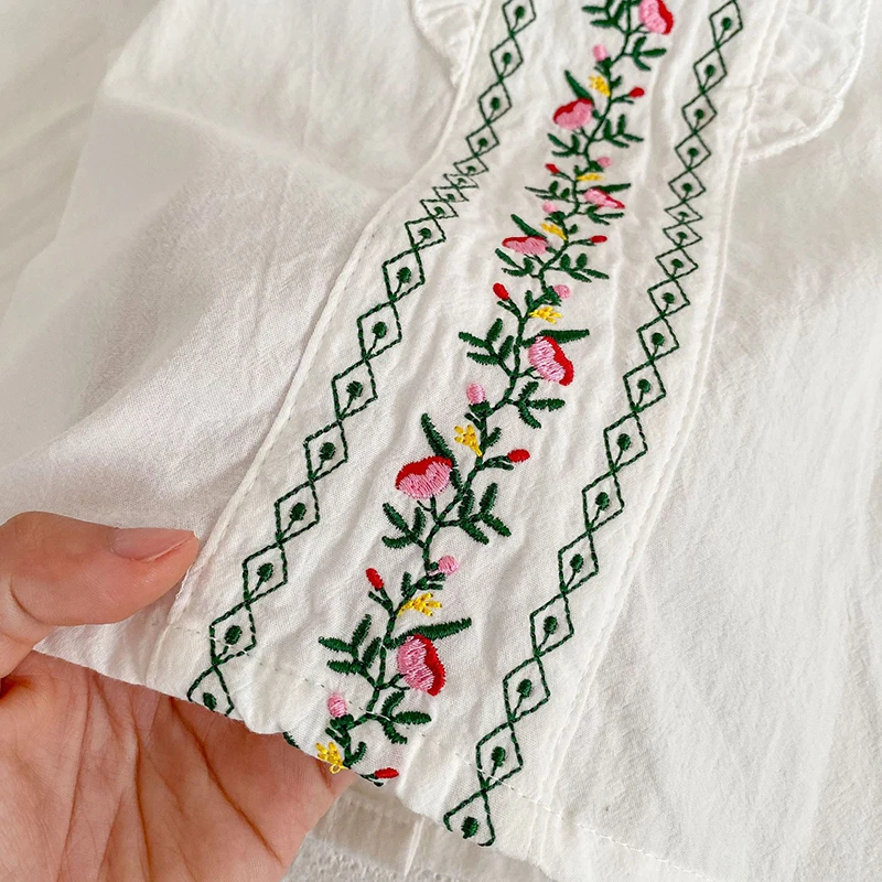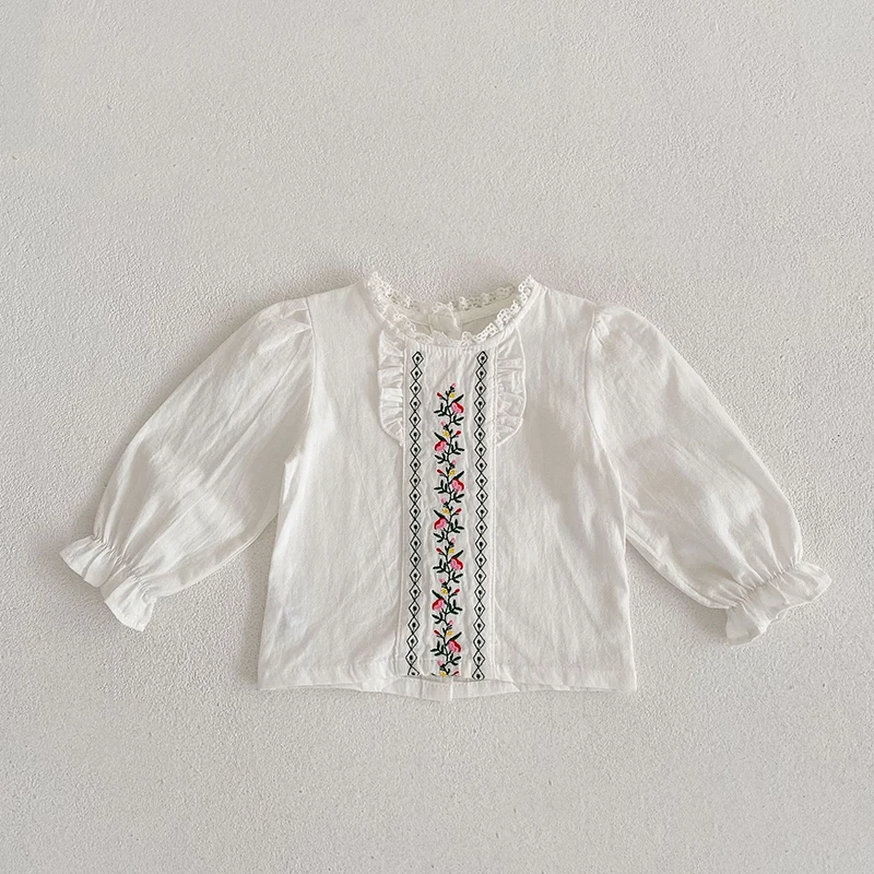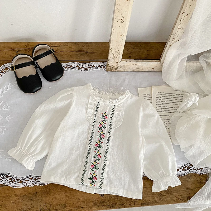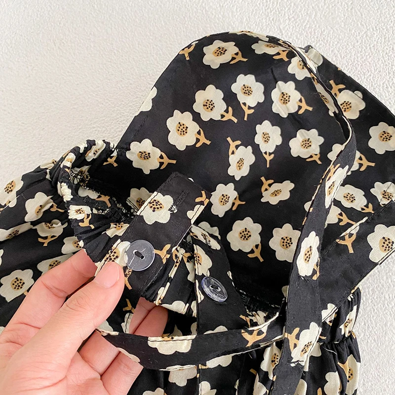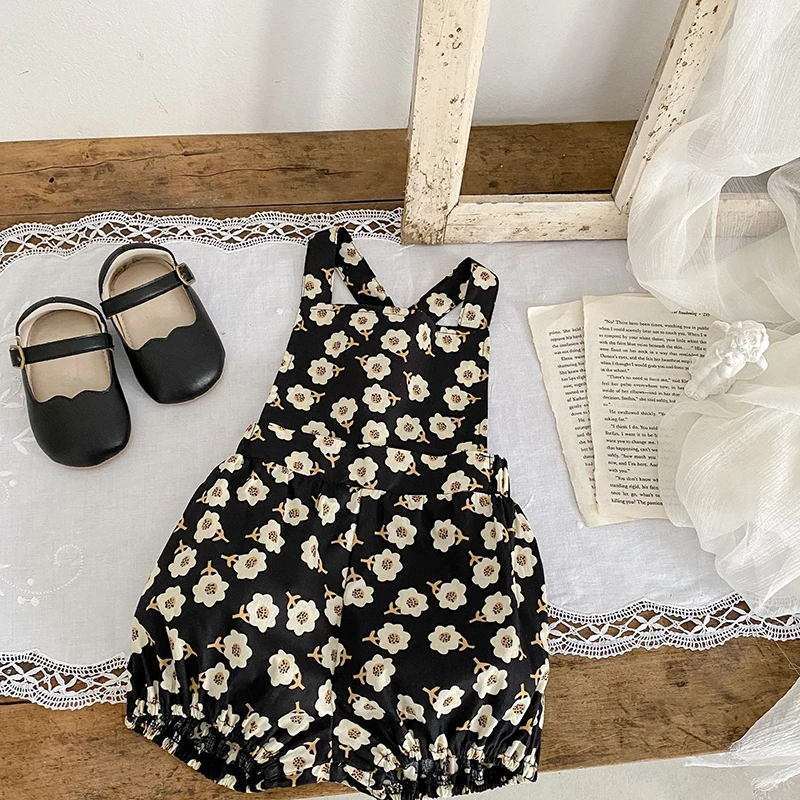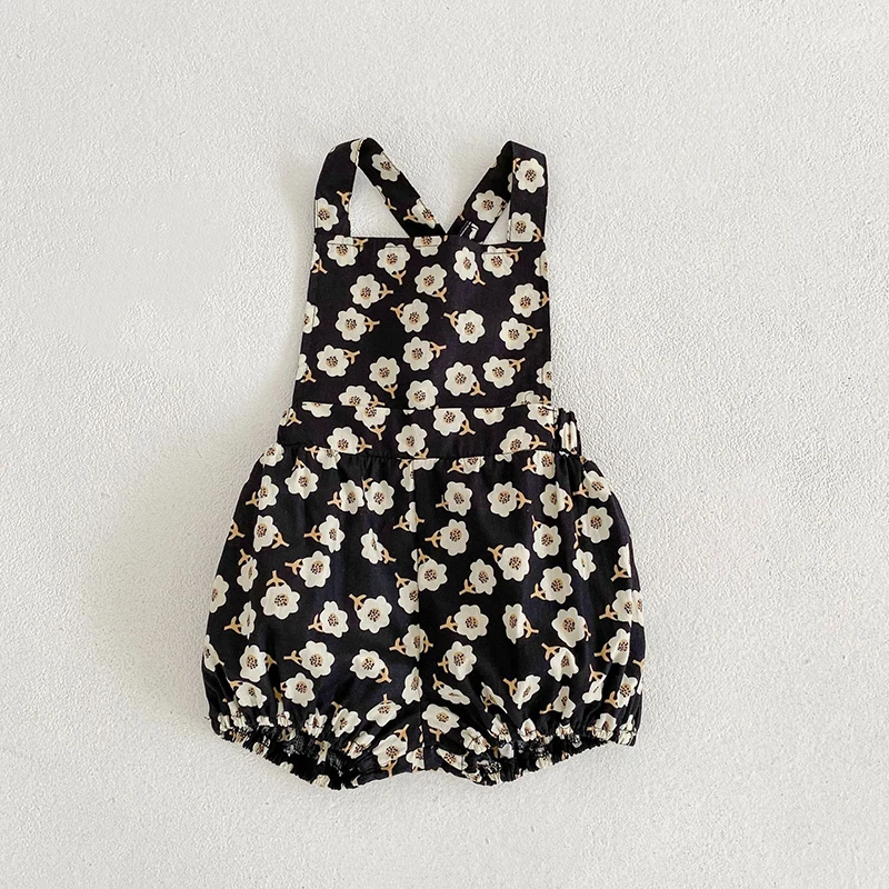 鮮やかな春の花柄のセットアップ。赤ちゃん用のフリル付き長袖ブラウスと、可愛らしいオーバーオールがセットになった2点セット。刺繍入りのシャツと柄付きのオーバーオールで、おしゃれな女の子のコーディネートにぴったり。上質な素材で肌触りも抜群です。