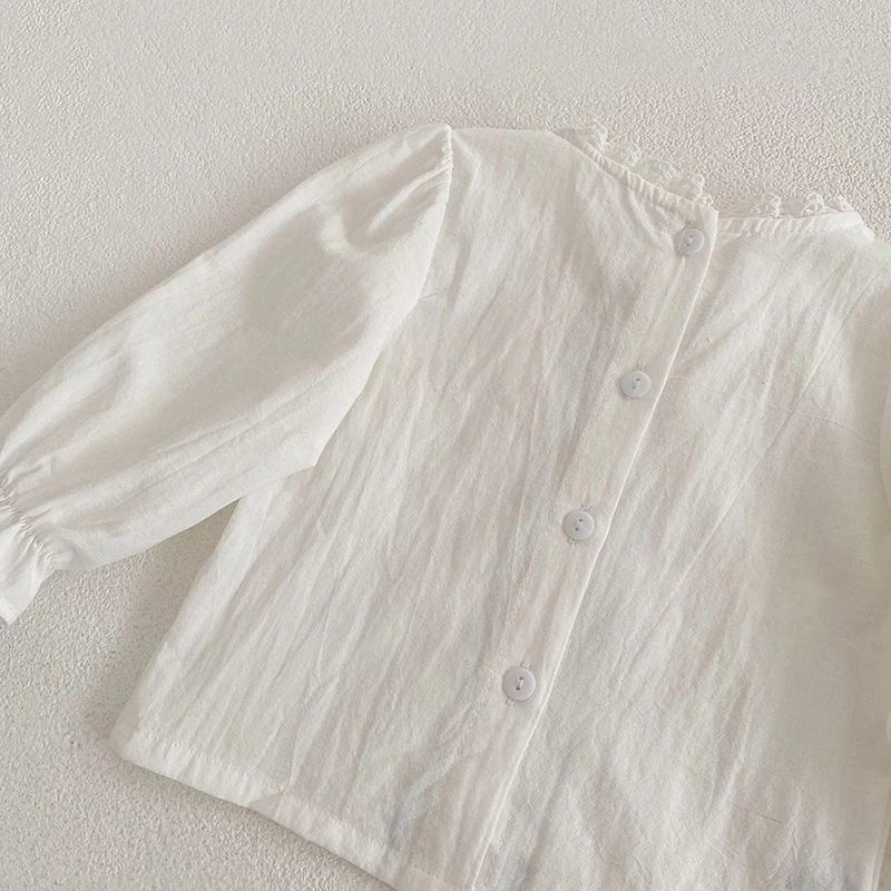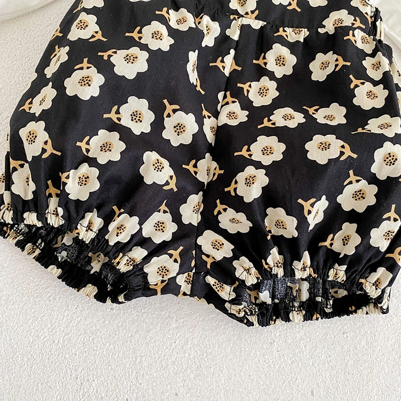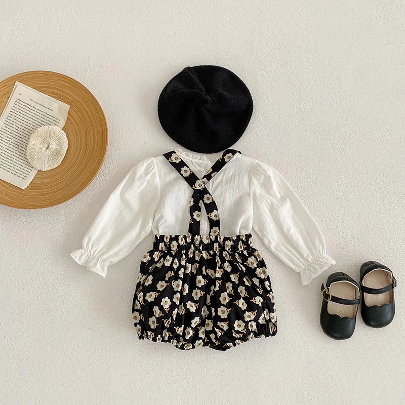 ベビーセットアップ 2点セット 長袖フリルブラウス+ショートオーバーオール サロペットバルーンパンツ【mh0006495】