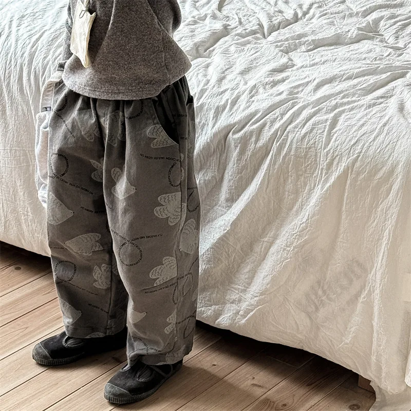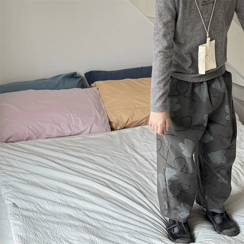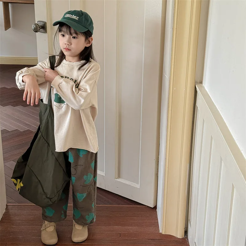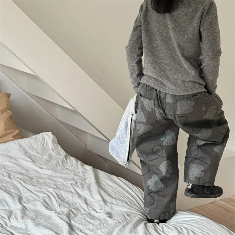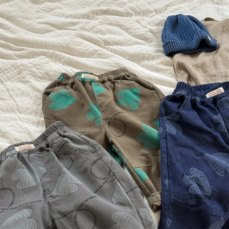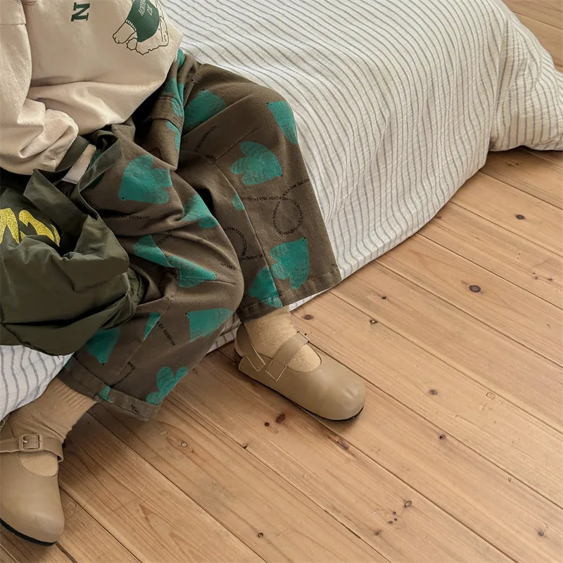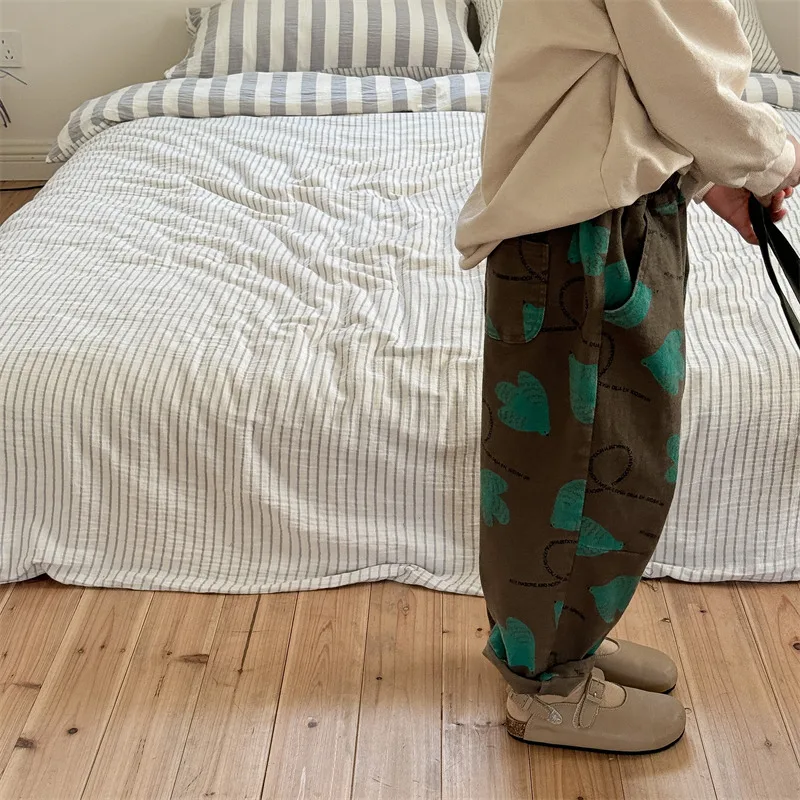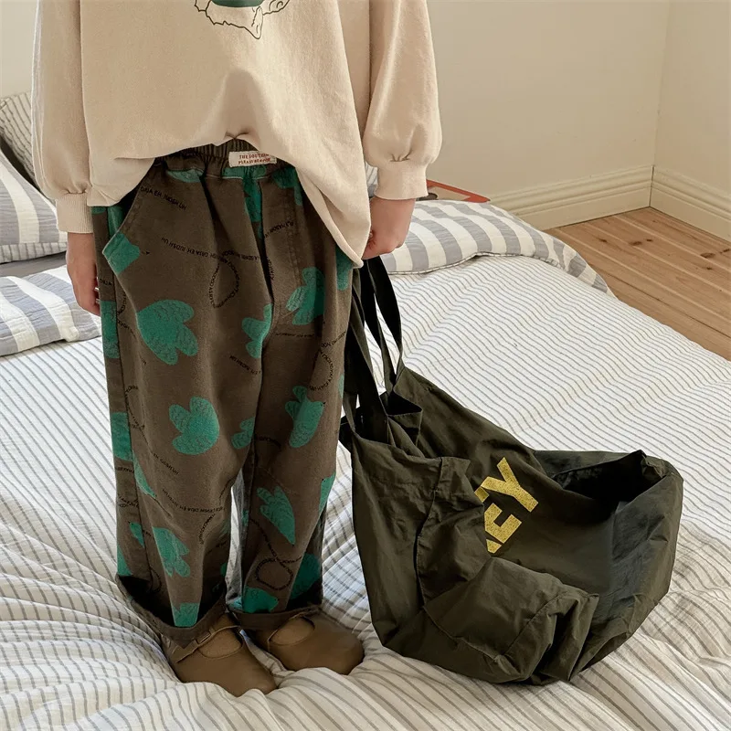 #キッズパンツ #プリント柄 #ワイドルーズパンツ #子供服 #カジュアルスタイル #コットンパンツ