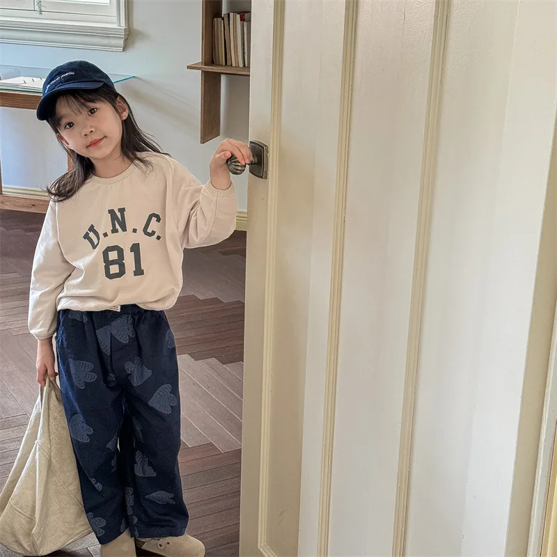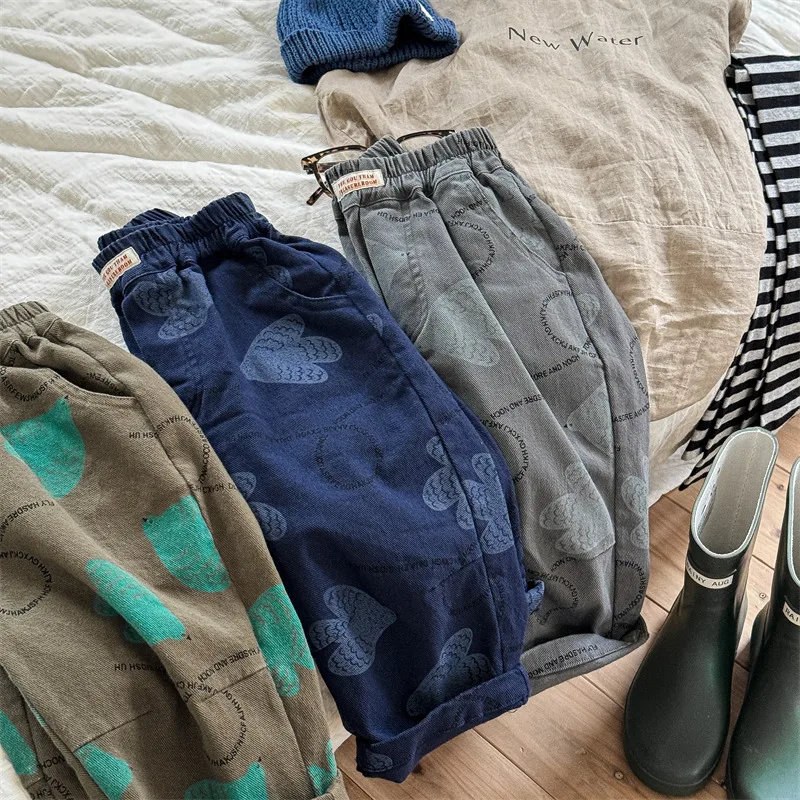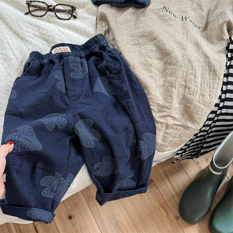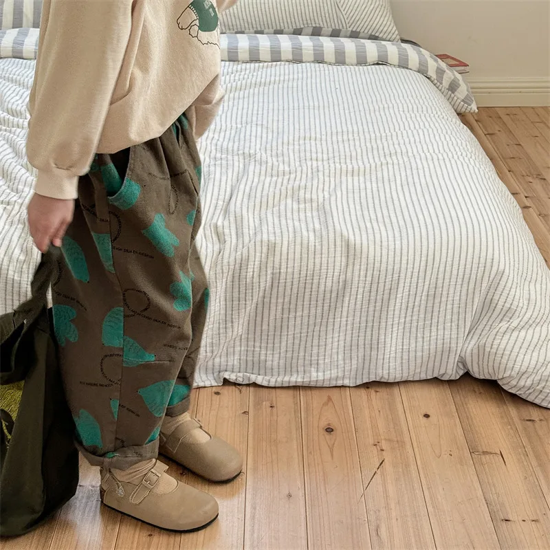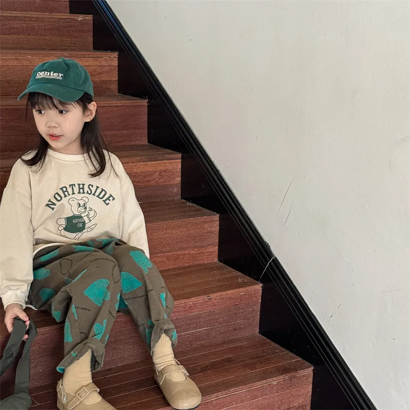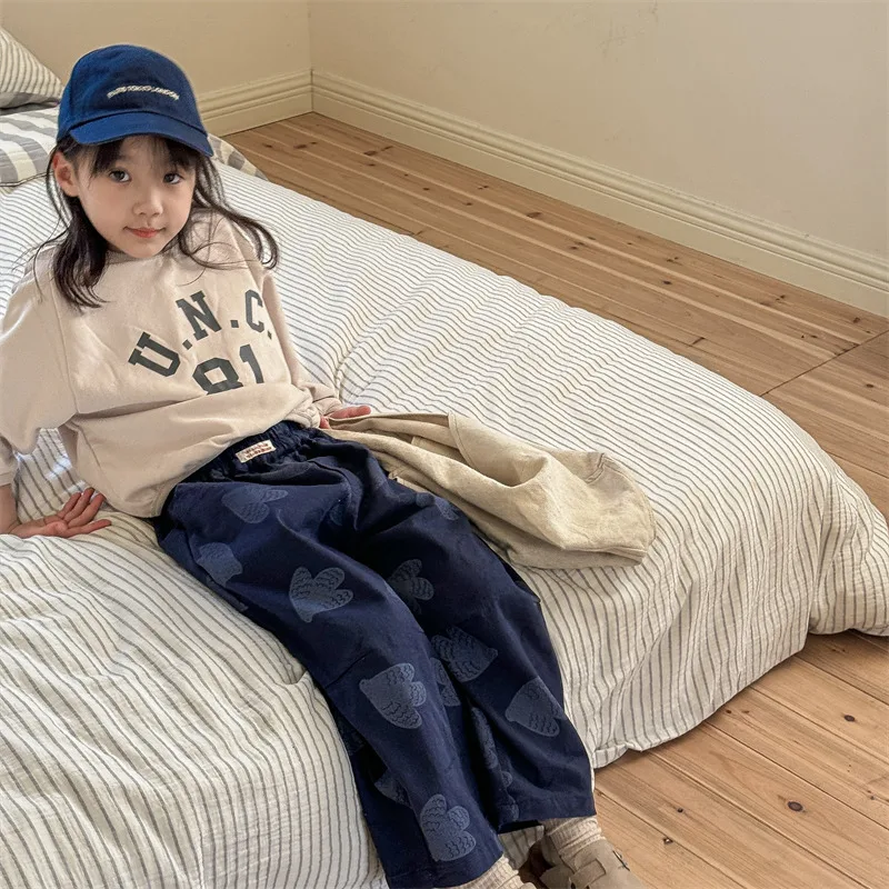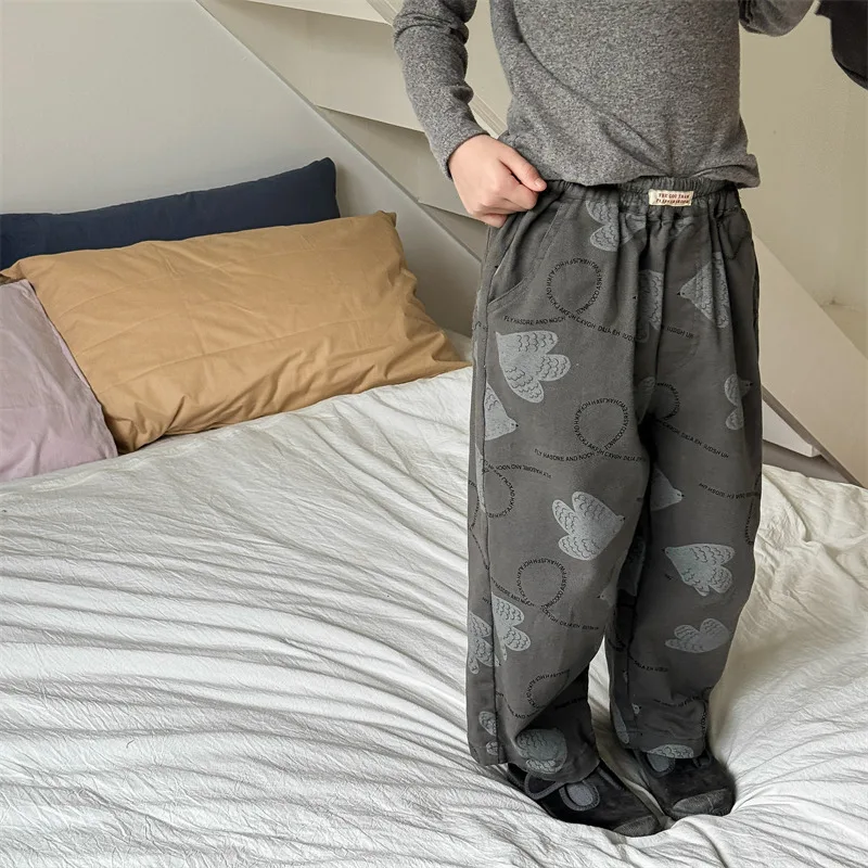 #キッズパンツ #プリント柄 #ワイドルーズパンツ #子供服 #カジュアルスタイル #コットンパンツ