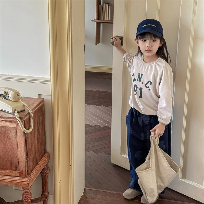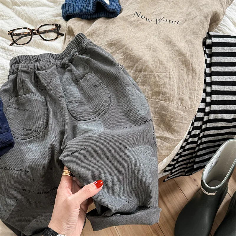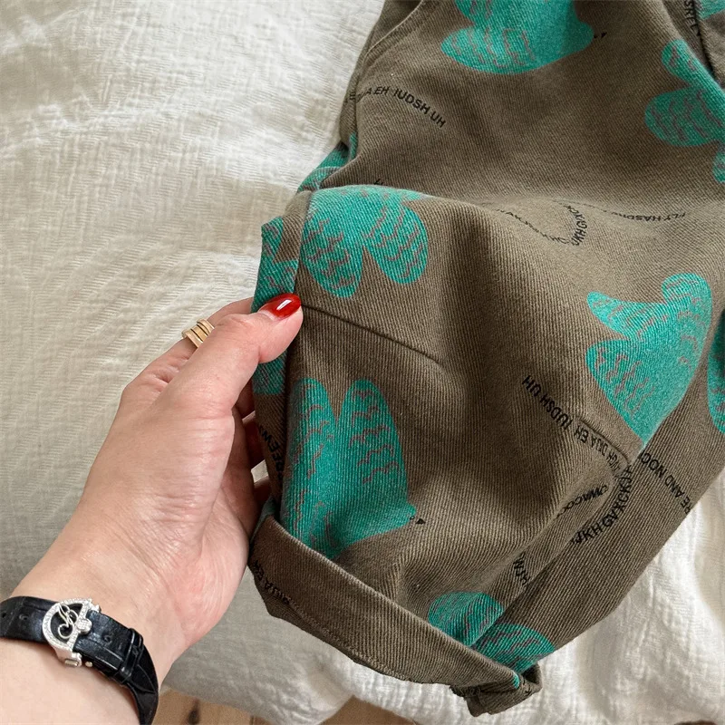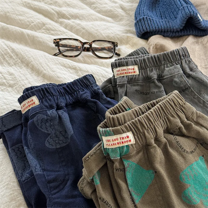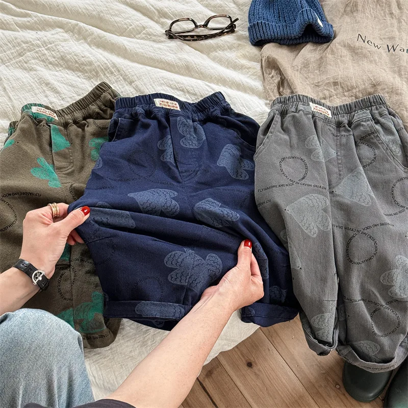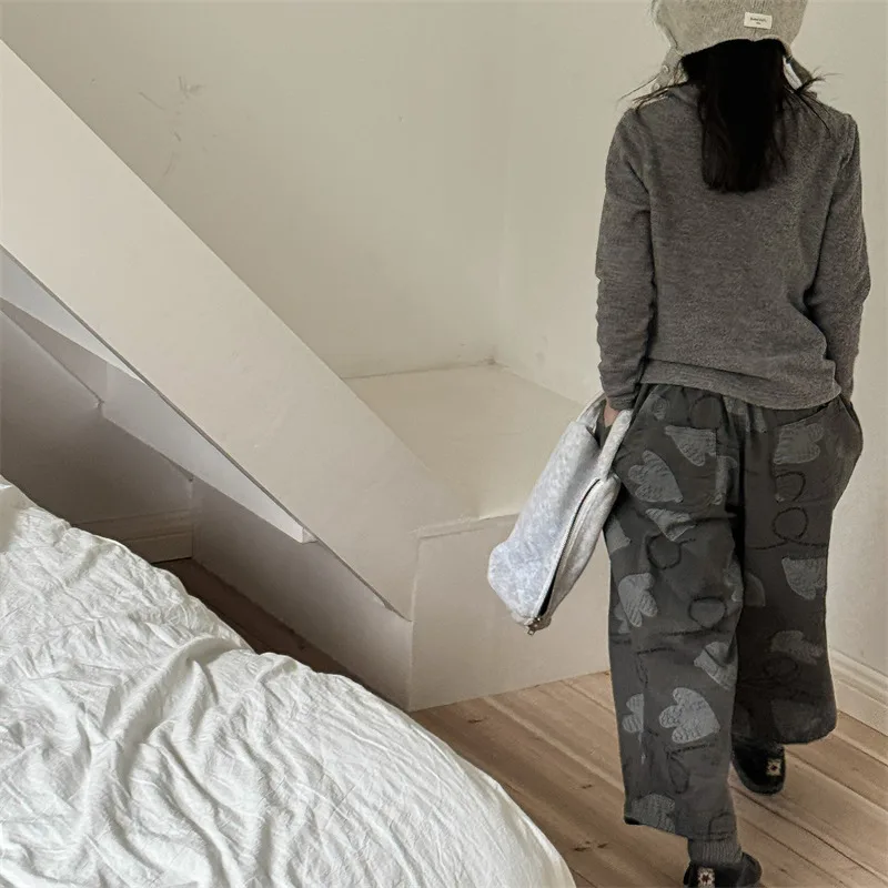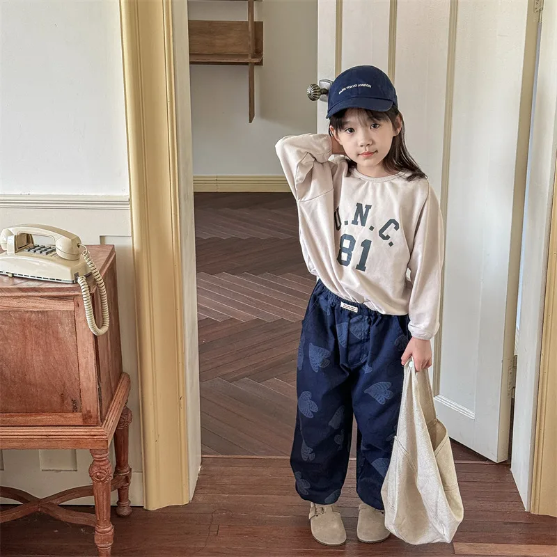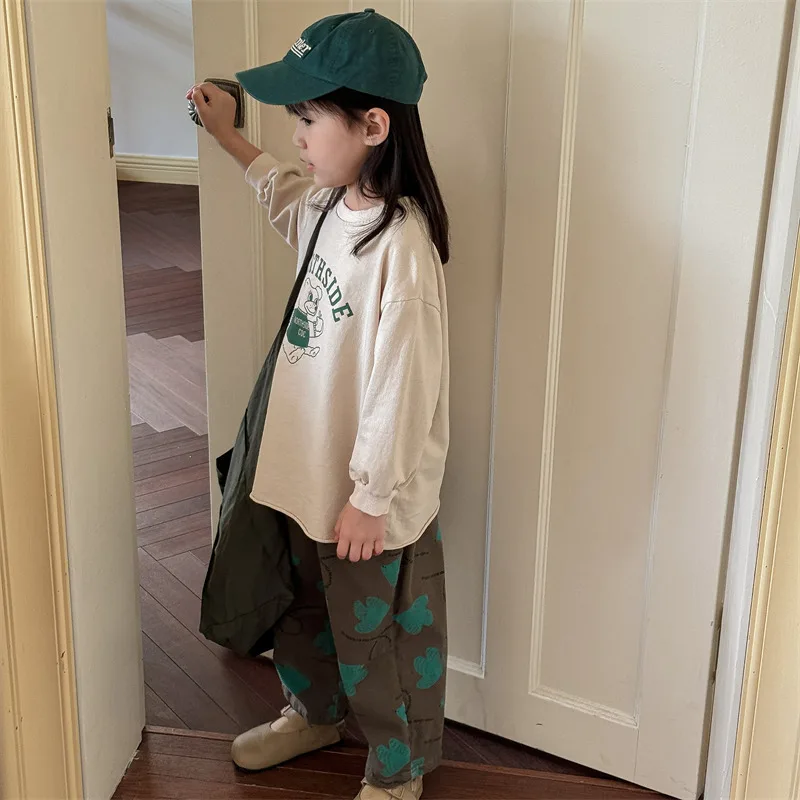 #キッズパンツ #プリント柄 #ワイドルーズパンツ #子供服 #カジュアルスタイル #コットンパンツ