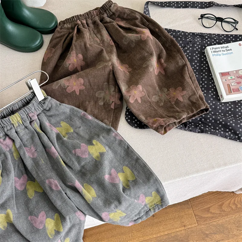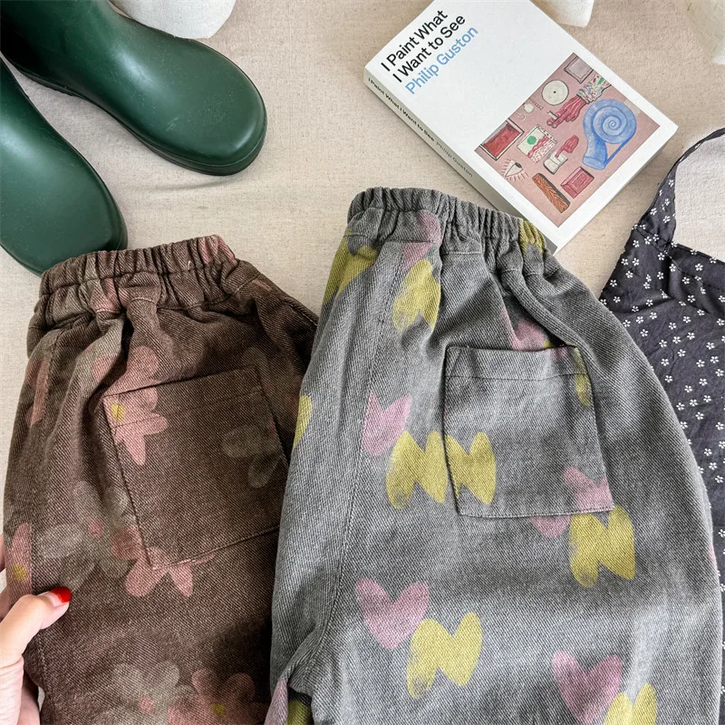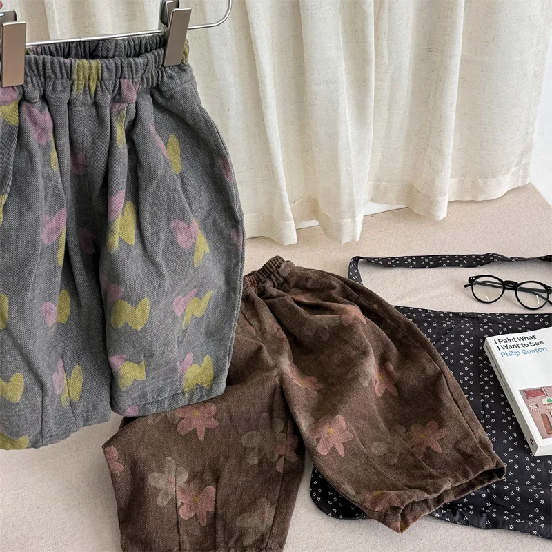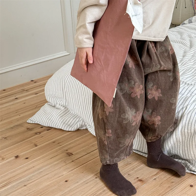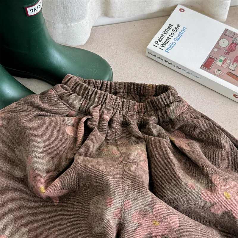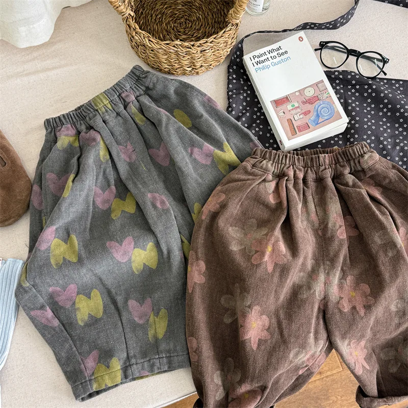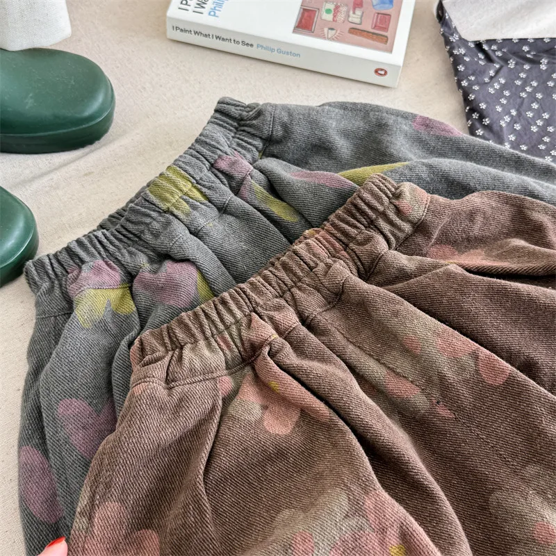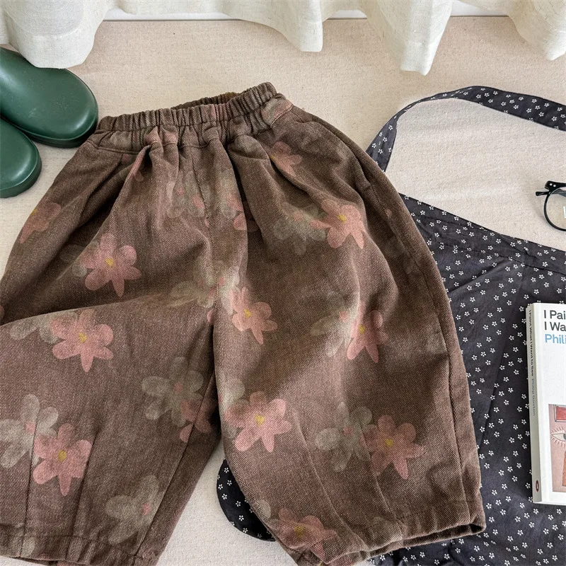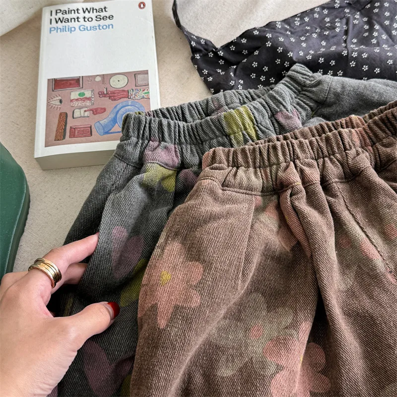 #キッズパンツ #レトロフラワープリント #ルーズワイドパンツ #子供服 #カジュアルスタイル #コットンパンツ