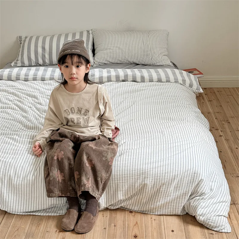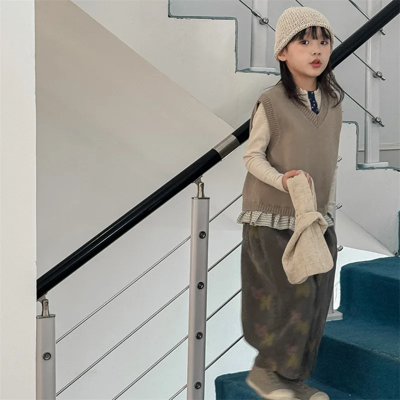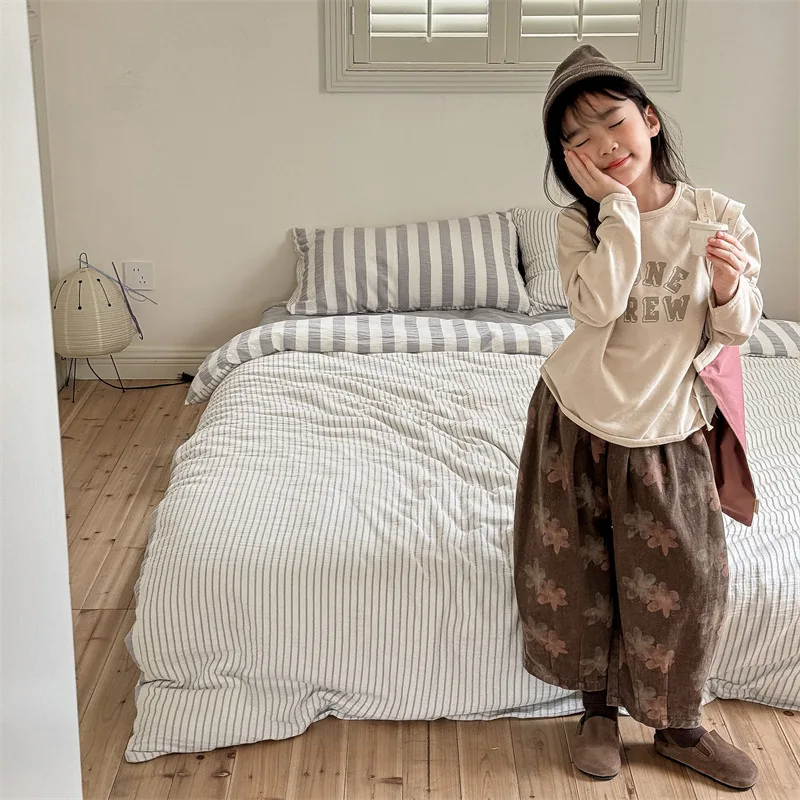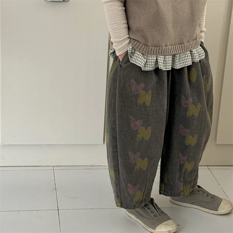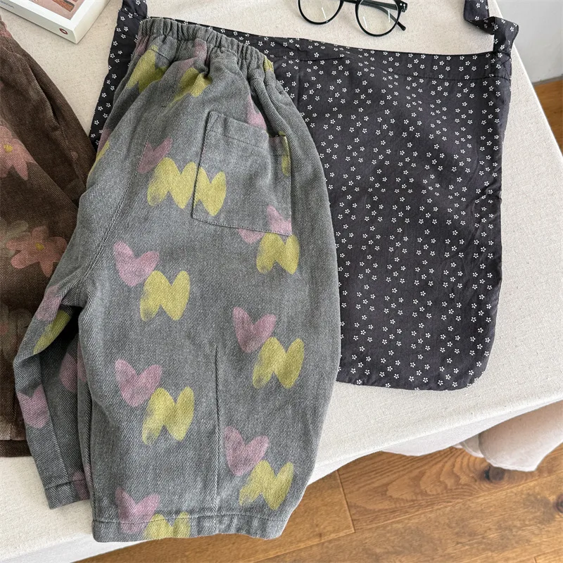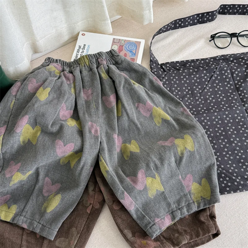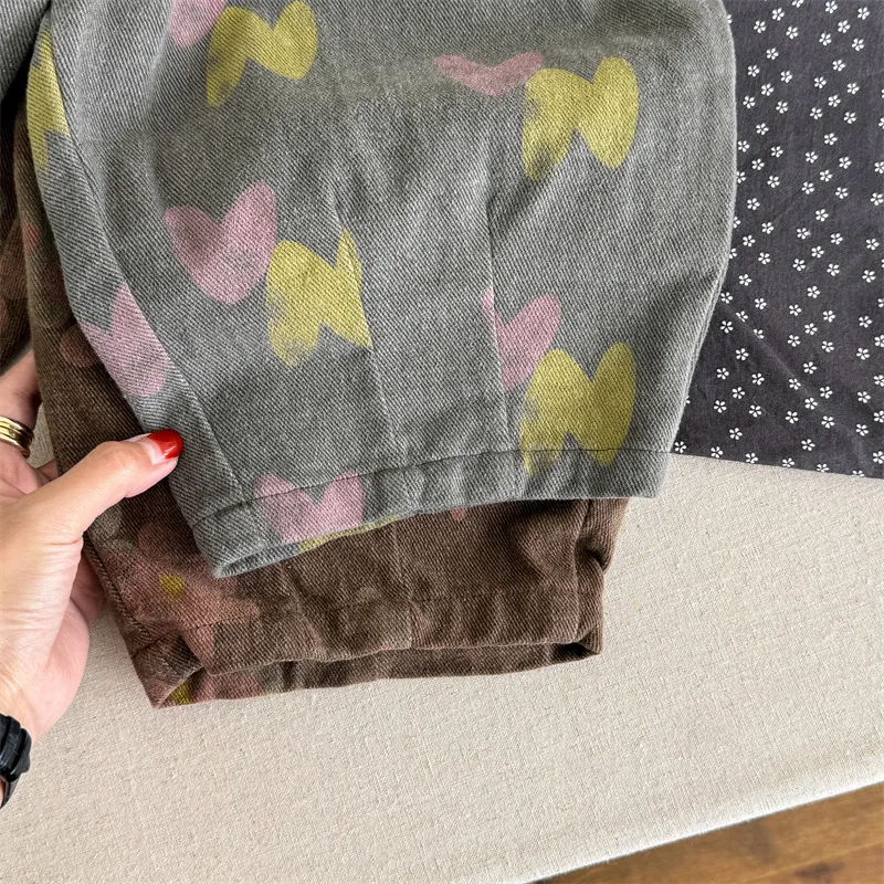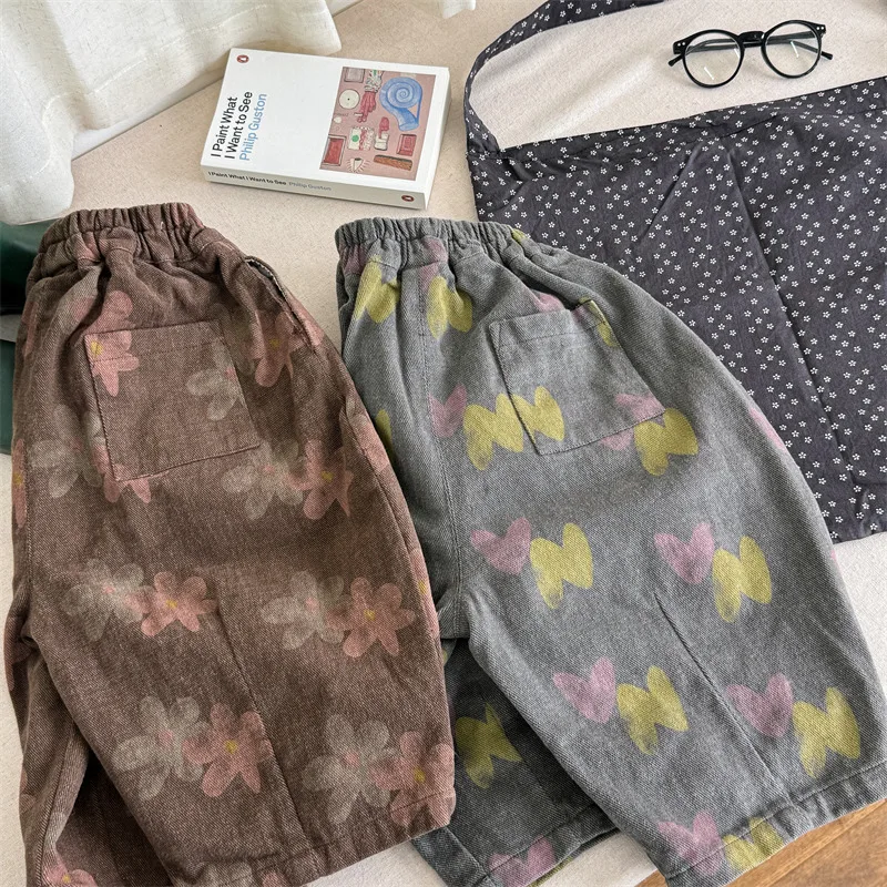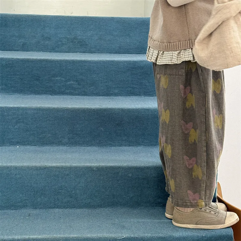 #キッズパンツ #レトロフラワープリント #ルーズワイドパンツ #子供服 #カジュアルスタイル #コットンパンツ