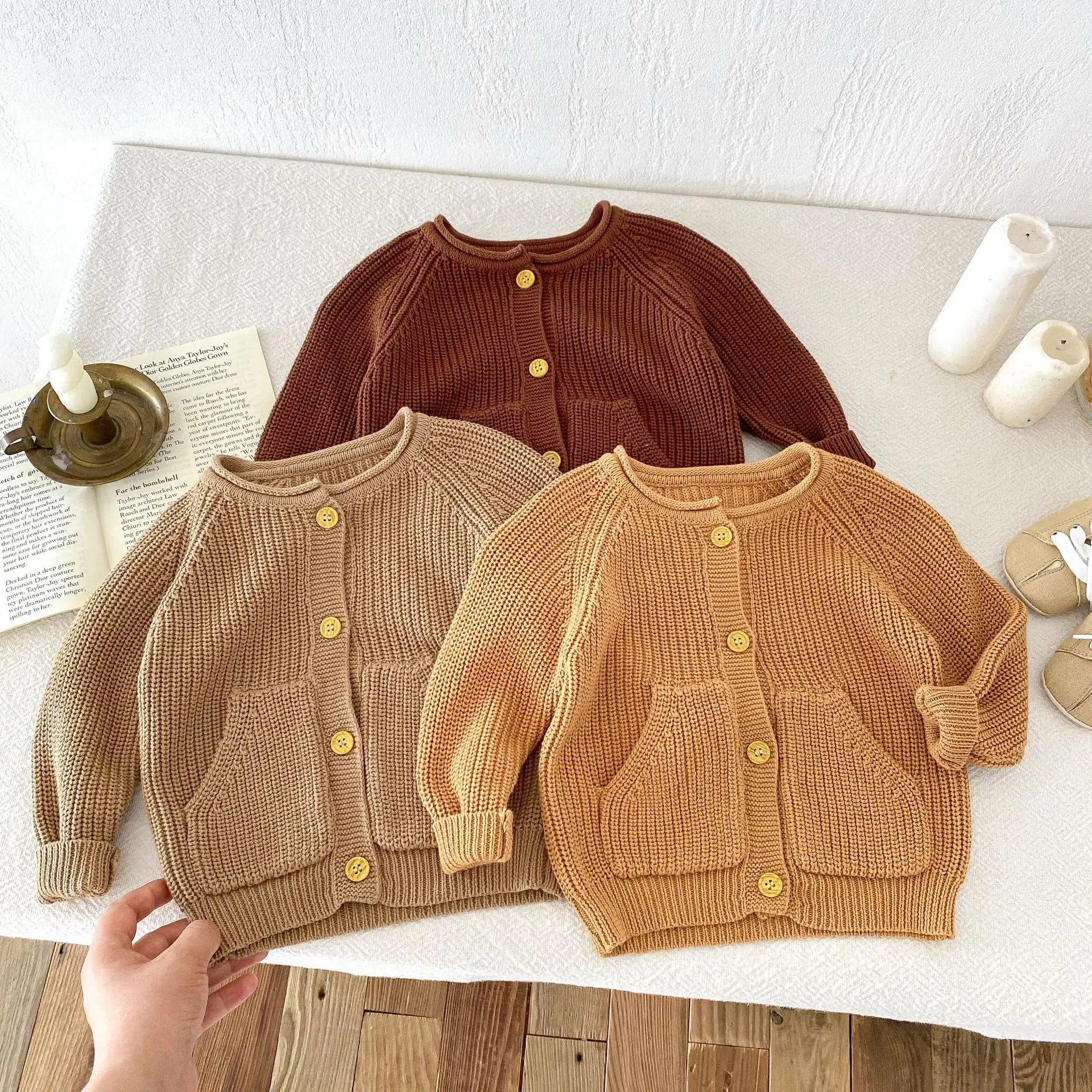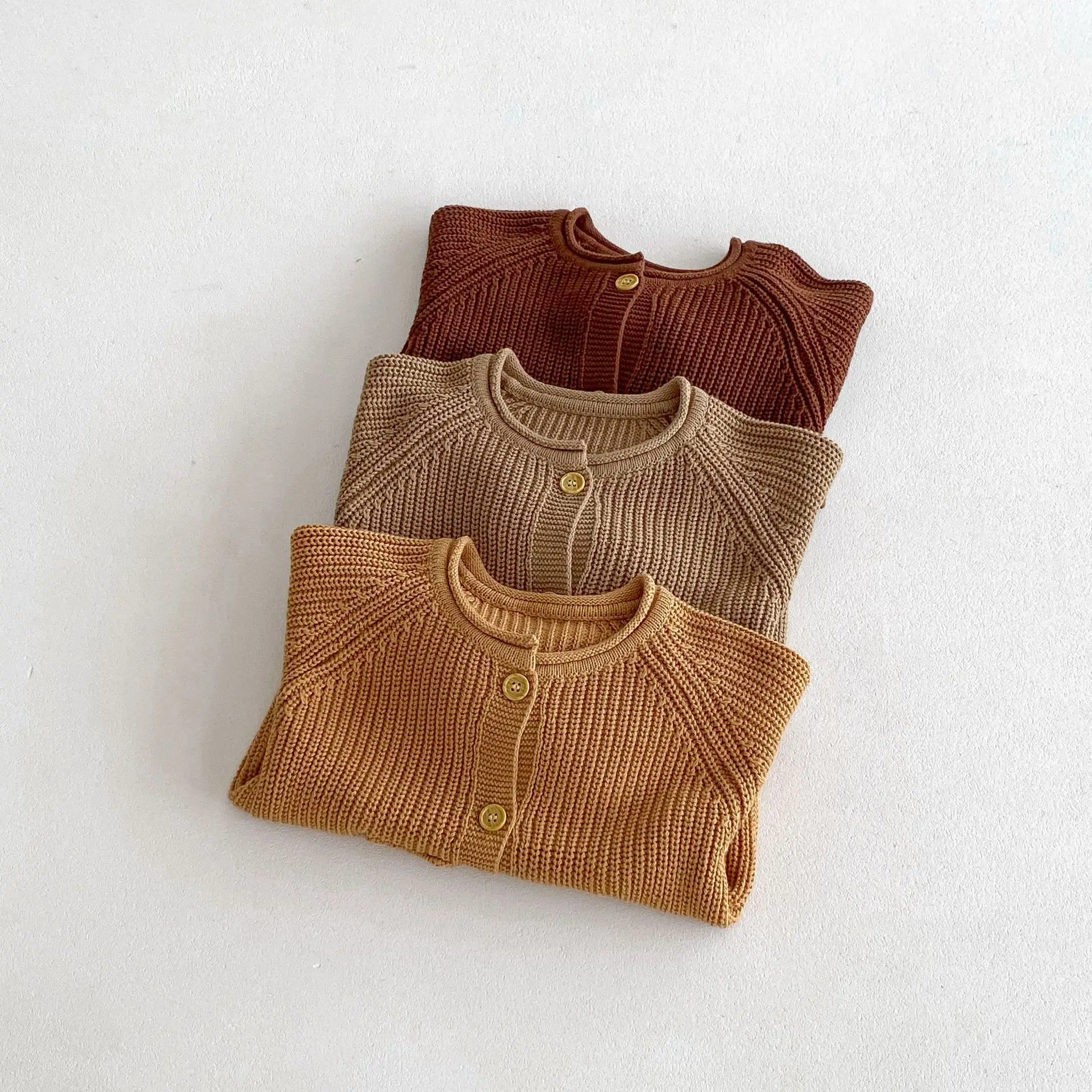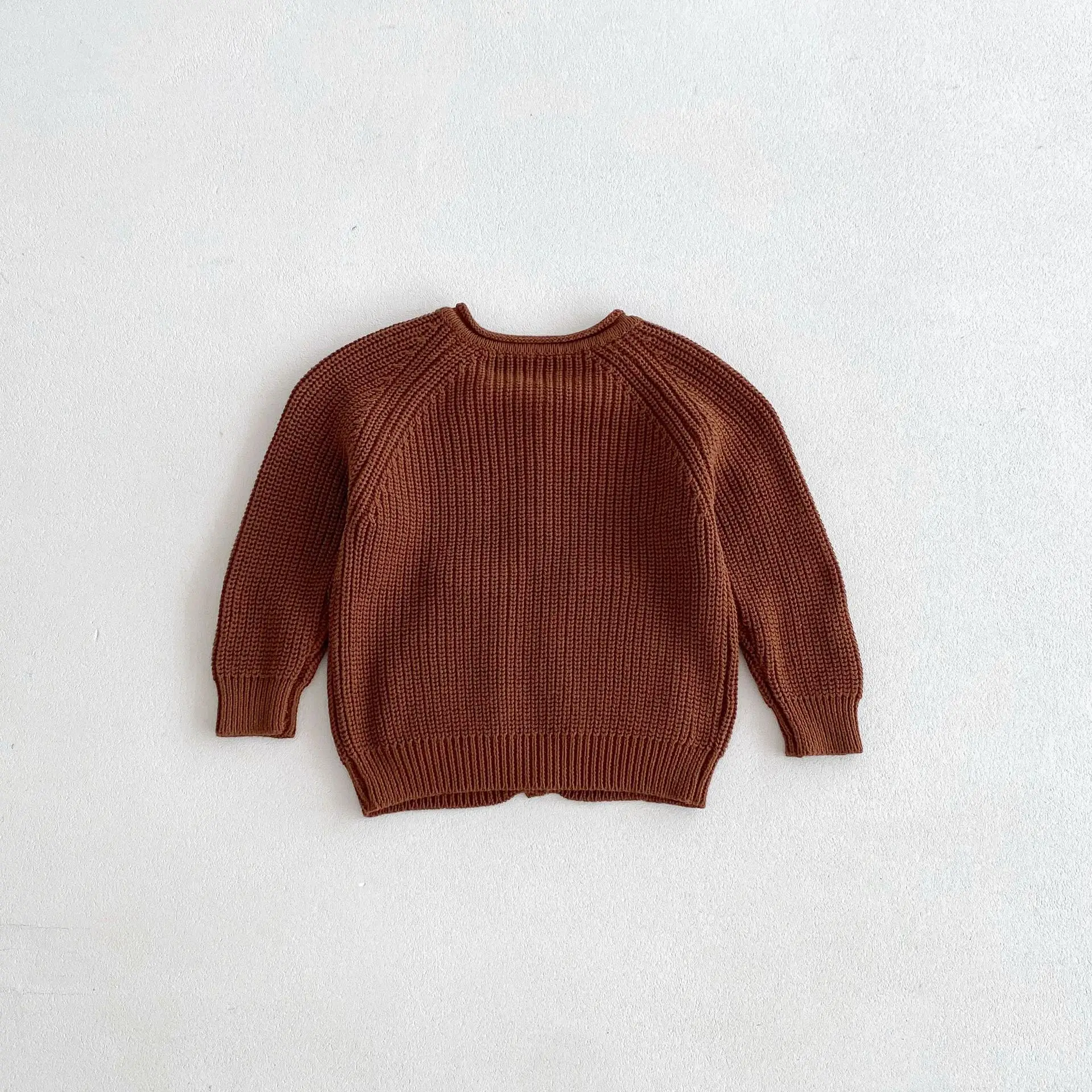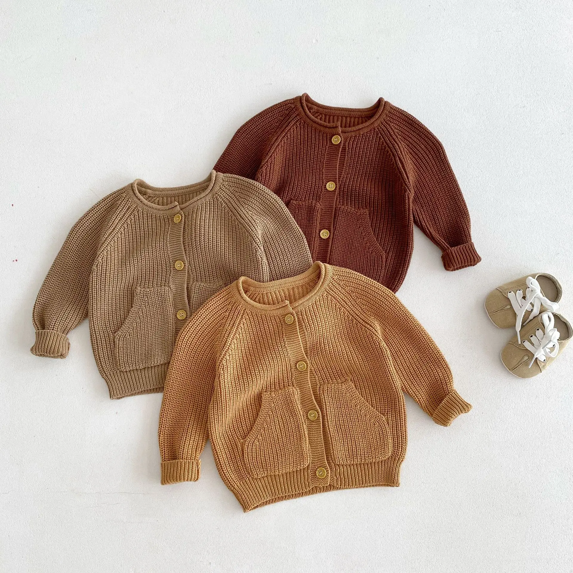 ポケット付きのキッズ用ニットカーディガンジャケットです。シンプルなデザインながらも、ヴィンテージ風の風合いが魅力。どんなスタイルにも合わせやすく、デイリーユースにぴったりです。柔らかい素材で着心地も良く、季節の変わり目にも活躍します。3つのカラーからお選びいただけるので、お子様のコーディネートに合わせてお楽しみいただけます。