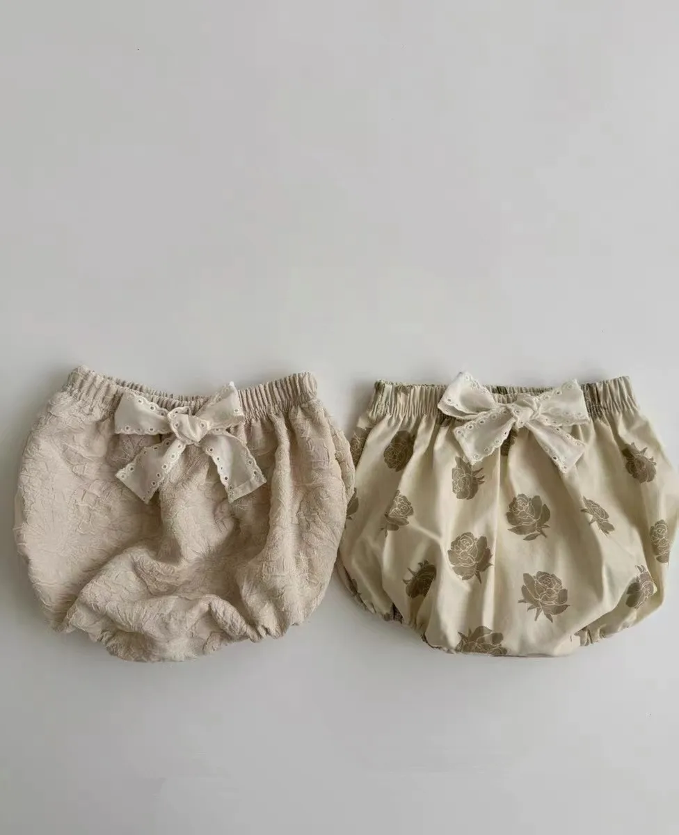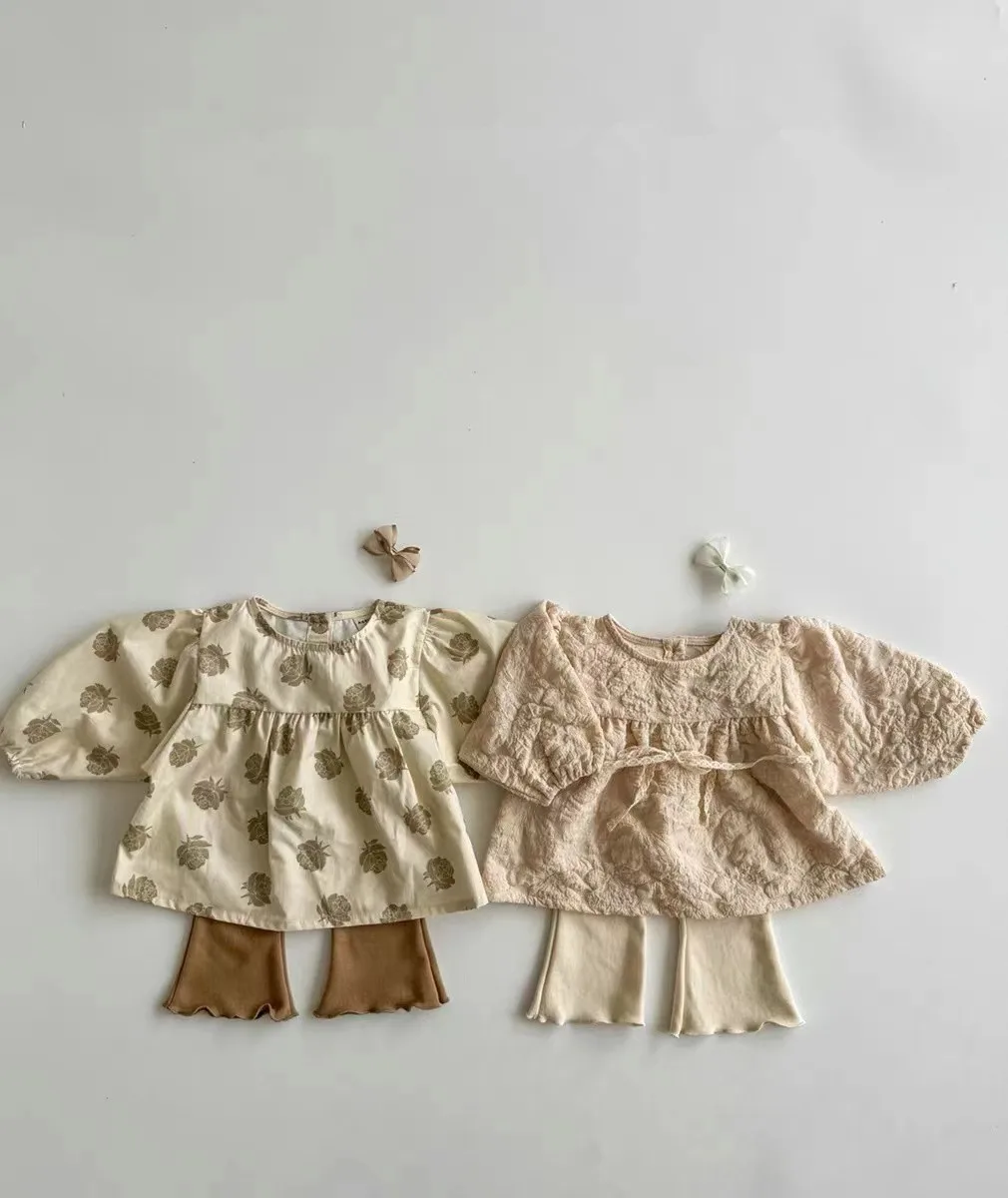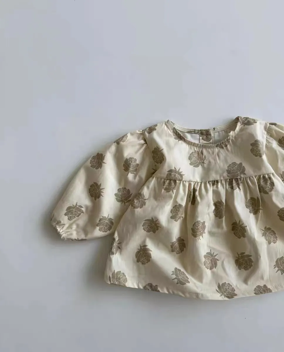 ベビーセットアップ 2点セット ローズフラワープリント長袖チュニックブラウス+リボン付きブルマパンツ アプリコット【mh0006716】