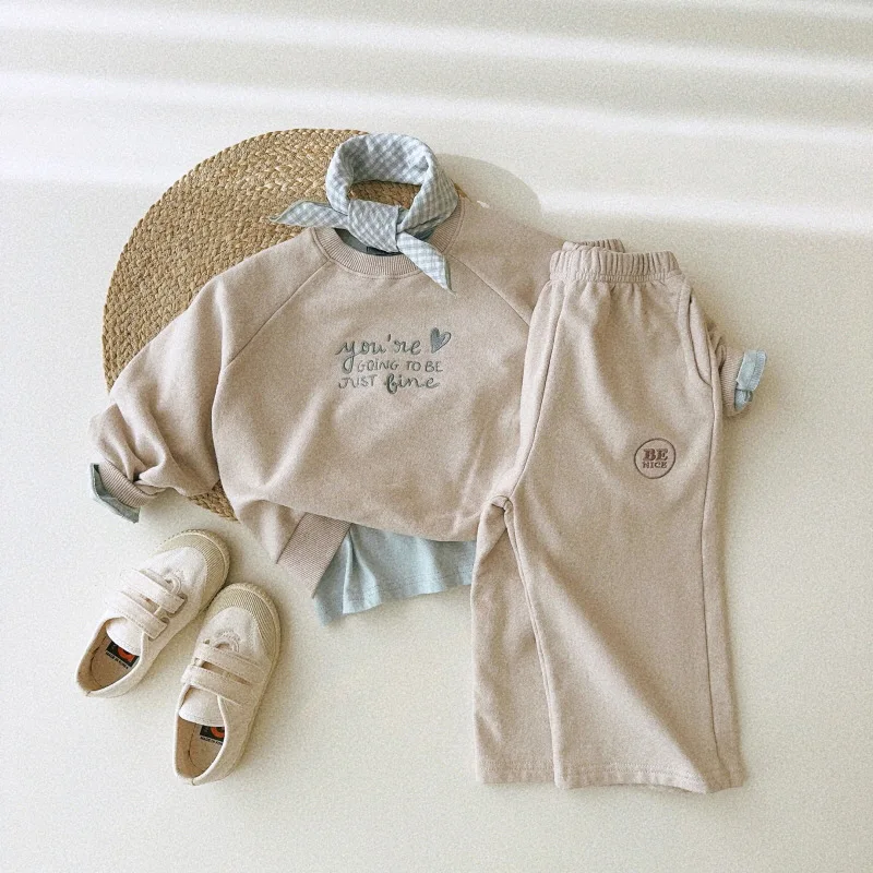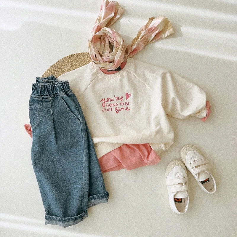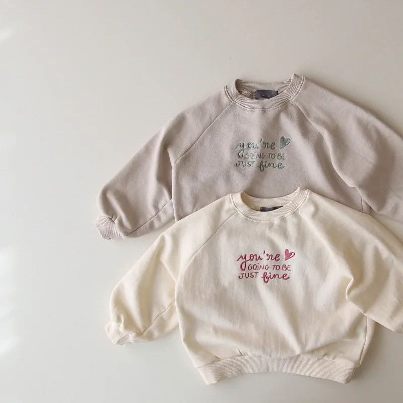 キッズトップス ハートレターロゴ刺繍長袖スウェットシャツトレーナー 2カラー【mh0006846】