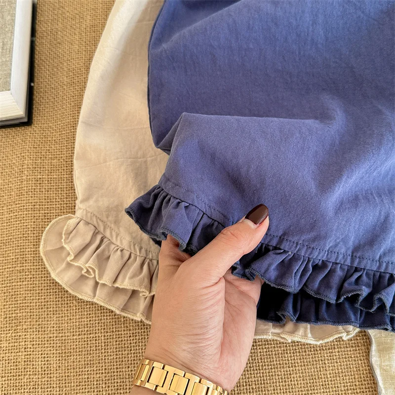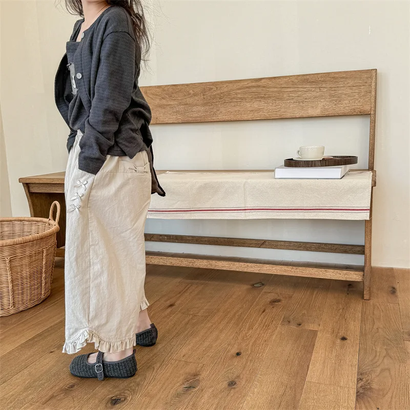 裾のフリルとワイドルーズシルエットが魅力的なクロップドパンツは、キッズのカジュアルコーディネートにぴったりのアイテムです。柔らかなコットン素材を使用し、快適な着心地を提供します。レトロなデザインにフリルとポケットがアクセントとなり、動きやすさとファッション性を両立。ワイドレッグのクロップドパンツが、リラックスしたスタイルを演出し、さまざまなシーンで活躍します。2つのカラー展開で、シンプルながらも個性を引き立てる一着です。ベビーからキッズまで、幅広い年齢層に対応するアイテムです。